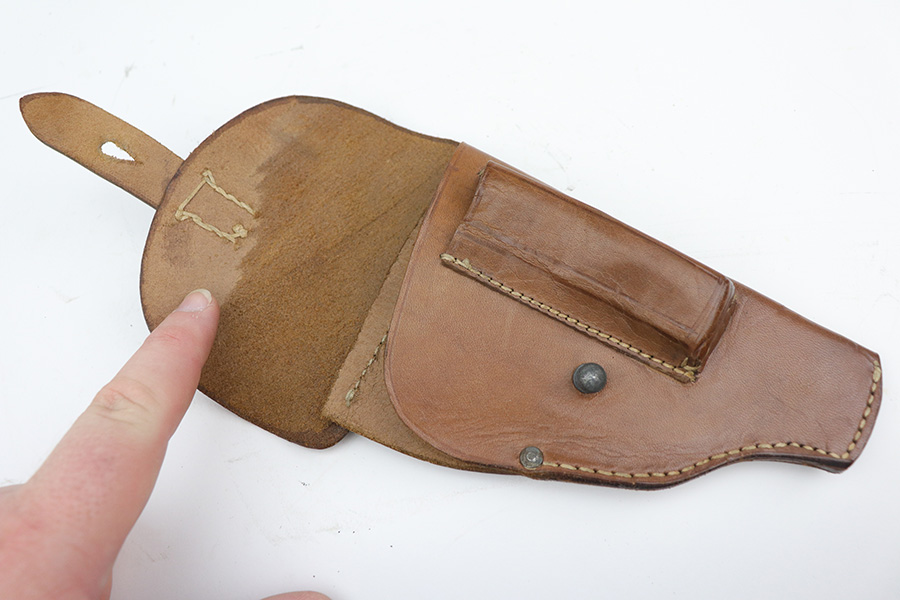 8/27/21 – This brown holster is in excellent condition and is for either a Sauer 1913 or a Mauser Model 1910. The stitching is in pristine condition and the leather is in great condition.