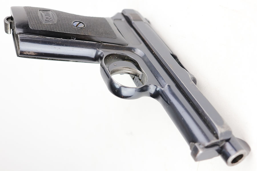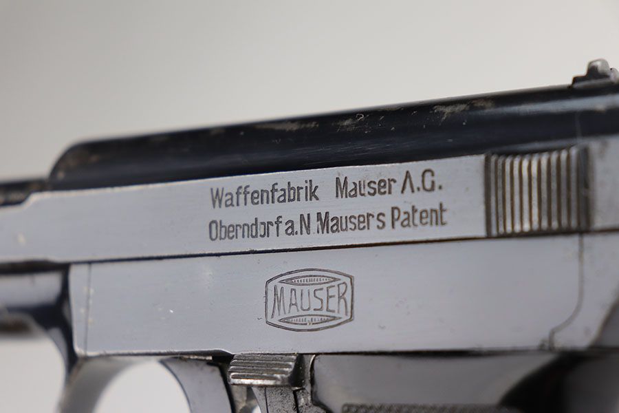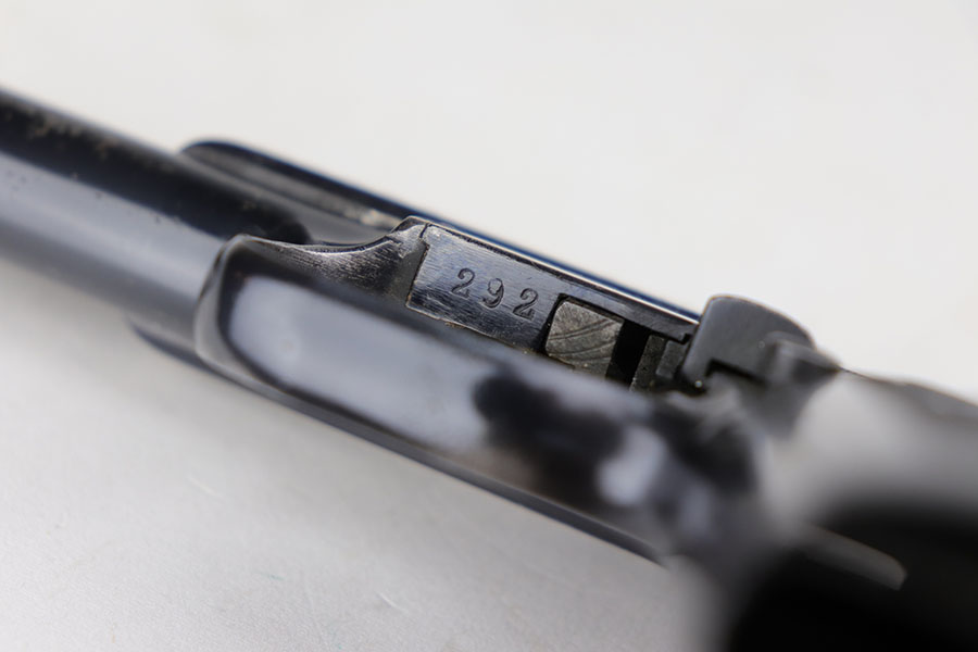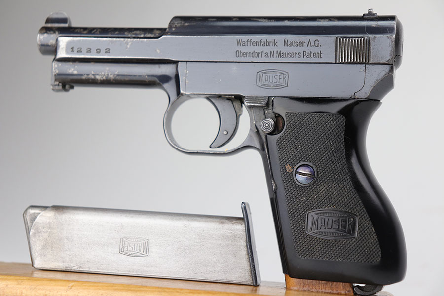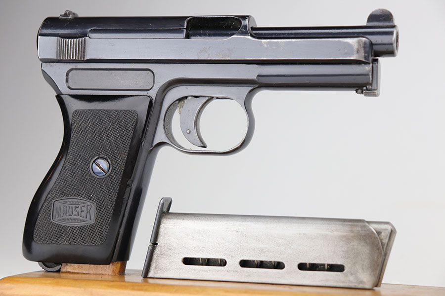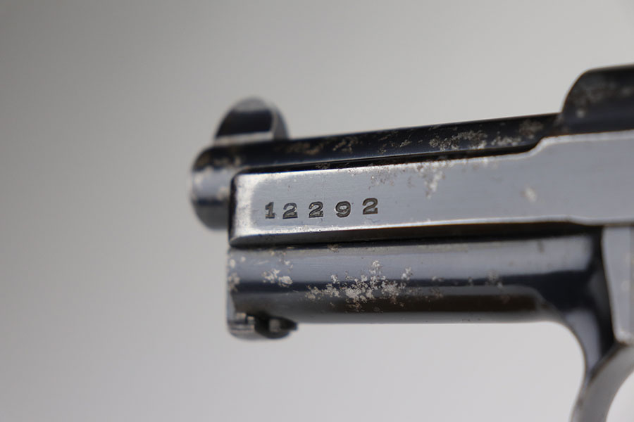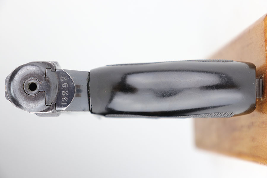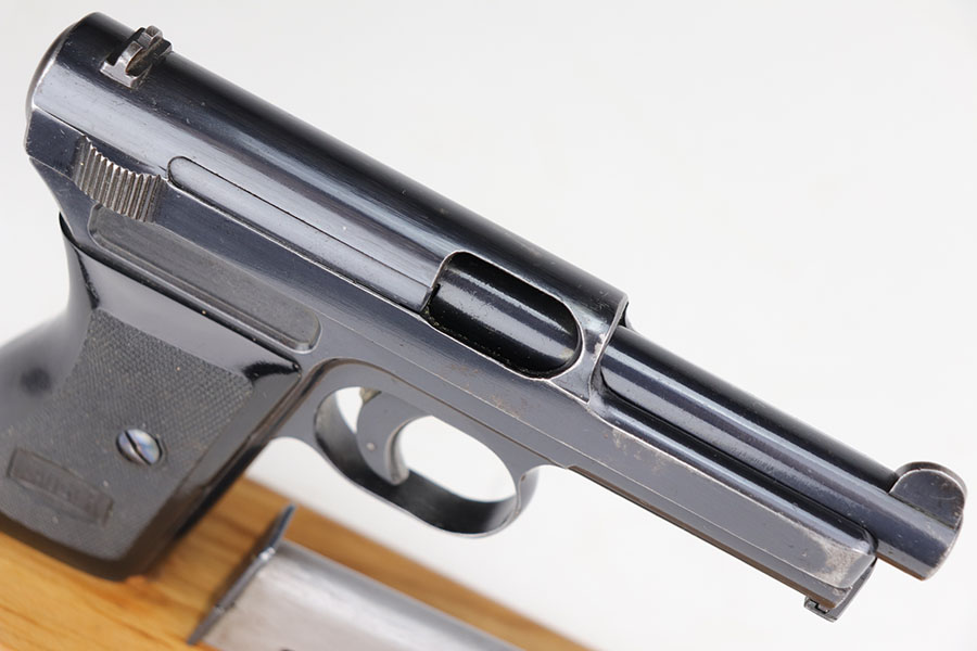 2/3/21 – This is a nice example of a transitional Mauser Model 1914/34, characterized by the hump in the grip. Chambered in 7.65mm. This one is all matching and has retained roughly 85% of its original finish. There is wear around the muzzle, on the front strap, and splotchy discoloration along the slide. It comes with a black bakelite grip and a period-correct magazine. The magazine is a little tough to get out. The bore is mint.
