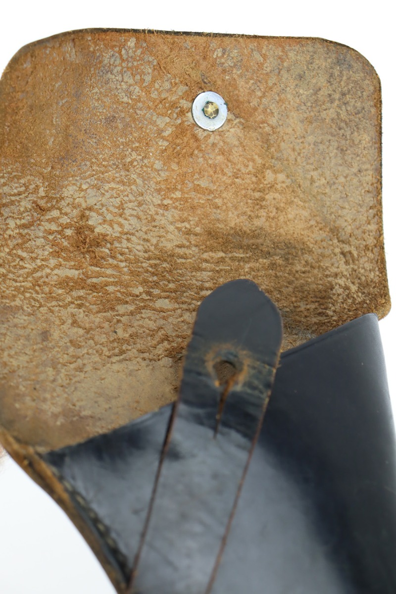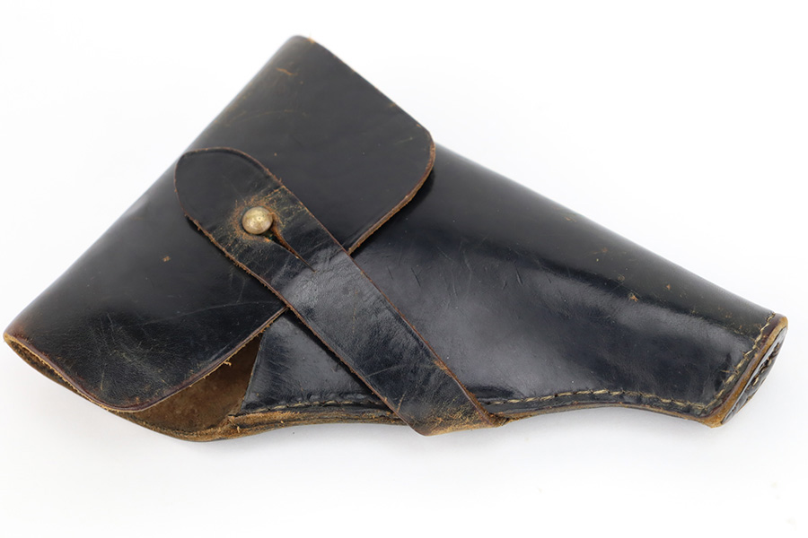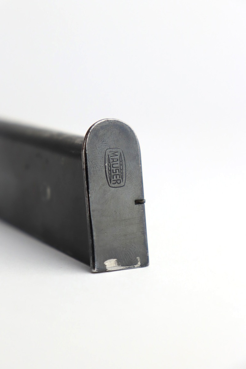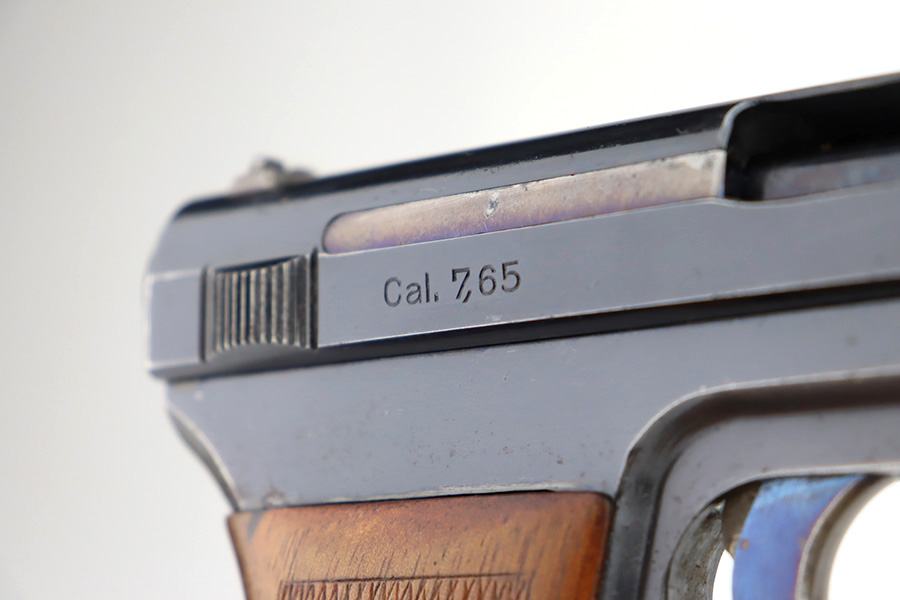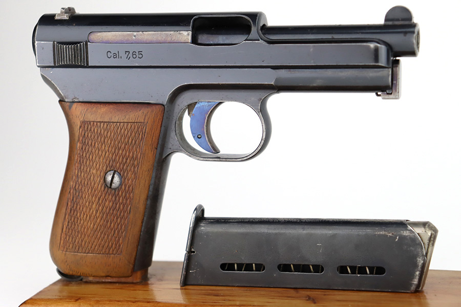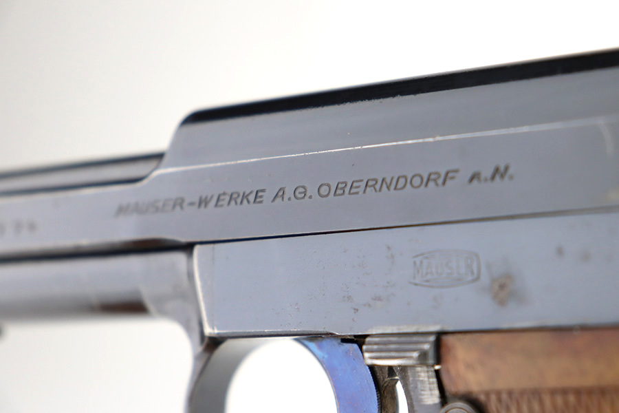 1/12/24 – This is a very nice example of a scarce, transitional Mauser Model 1914/34 from 1929-33. It is matching and “Double Crown U” proofed. Comes as a rig with a generic period-correct black leather holster and one proper magazine. The original high polish finish rates somewhere between 85-90%. The majority of the wear is on the front strap, so the profile views are excellent. Fitted with a minty period-correct wood grip. Near-mint bore.