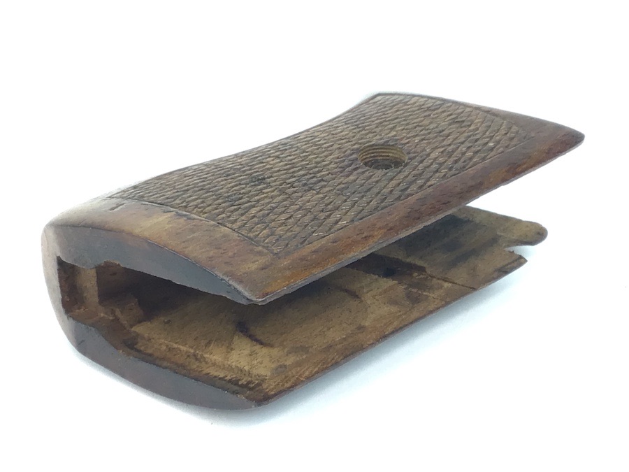 5/3/22 – This is an original WW2 production Mauser model 1934 grip. The wood grip is in excellent, original condition. No stamps or markings. No cracks. Fine checkering.