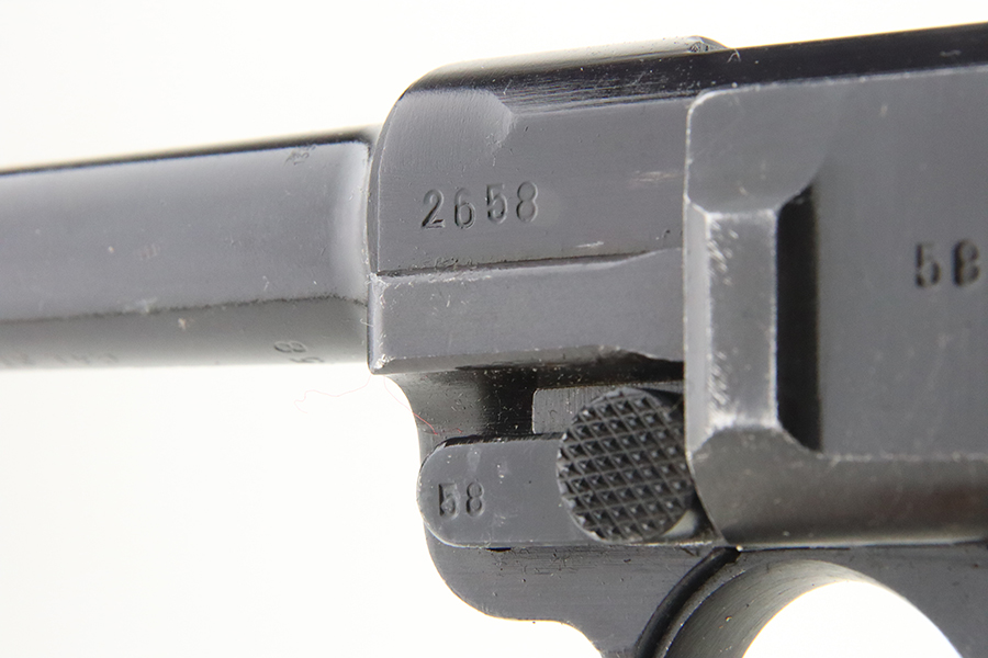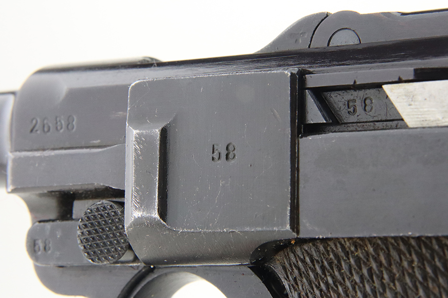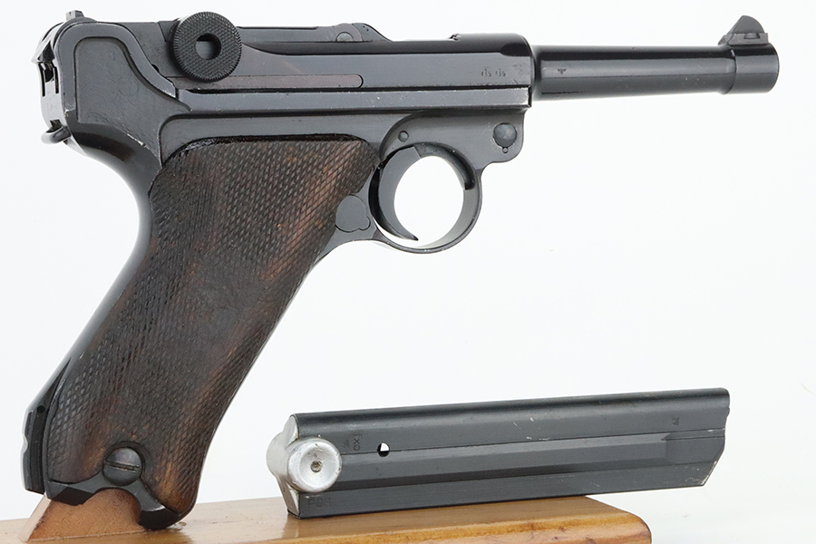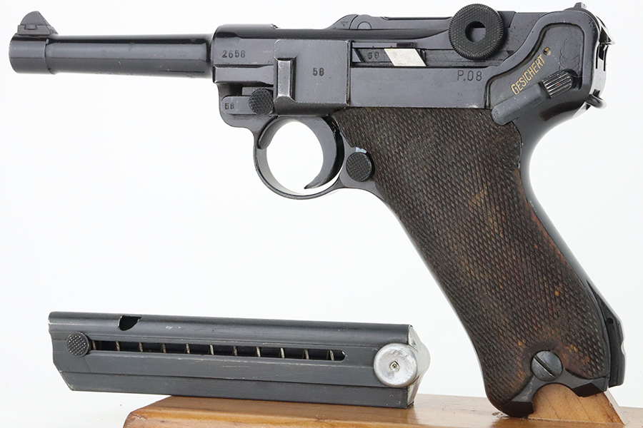 05/16/2024 – For sale is a P.08 Luger made at the Mauser factory in 1942. This handgun has been refinished and is in an overall 99% condition. The handgun is mostly matching except the safety & magazine are not numbered and the grips are not stamped or mismatched. The bore is slightly dark but shines with a light through it. The barrel is import marked on the underside.