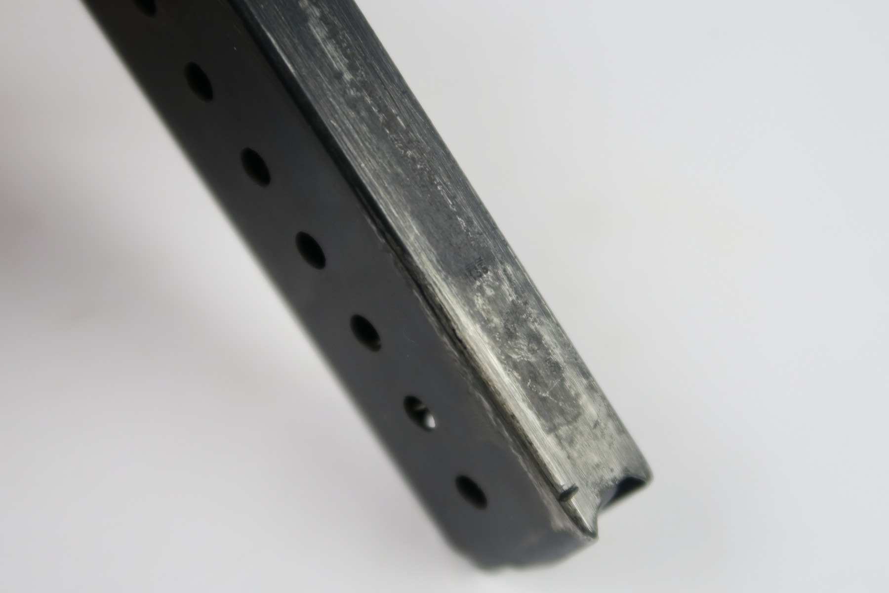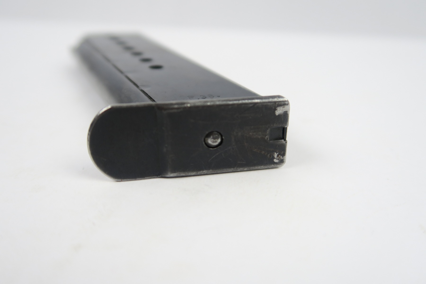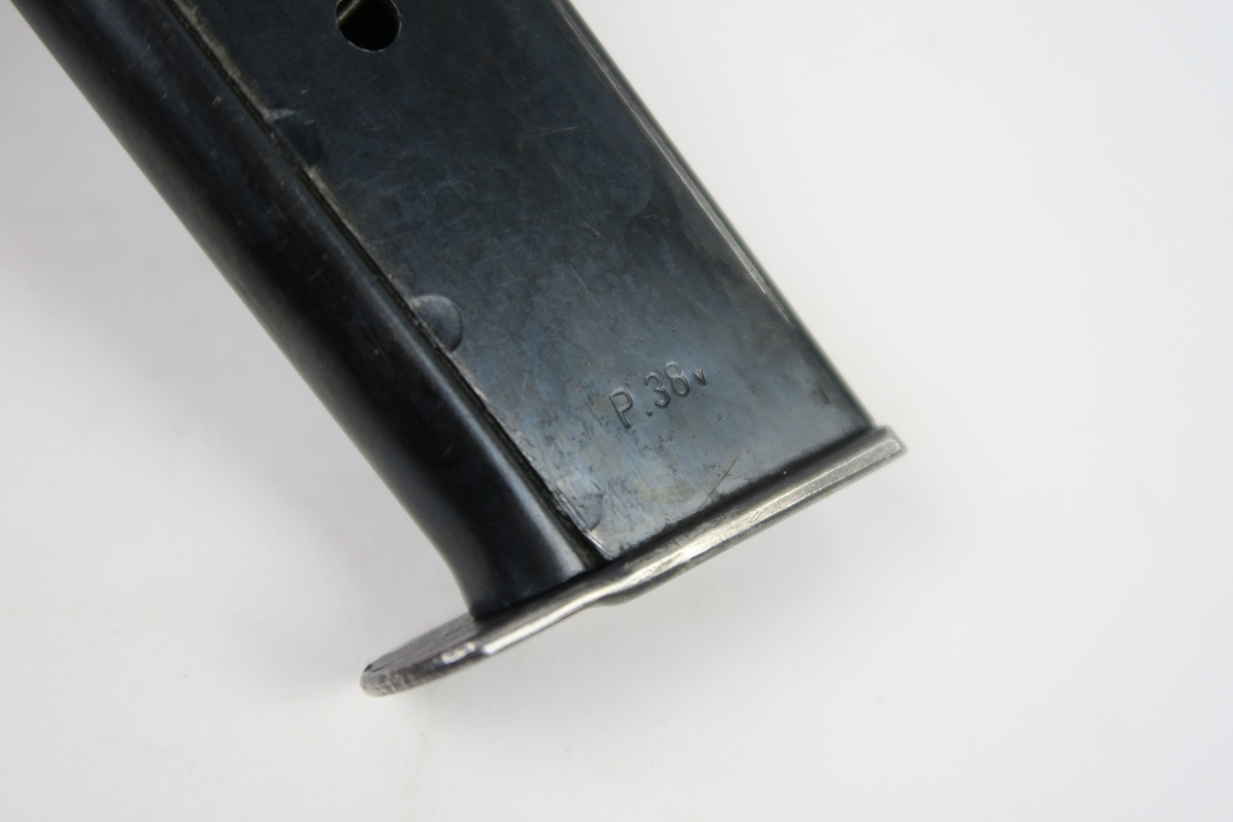 2/10/18 – This is an original Mauser P.38 magazine from WW2. The magazine is stamped with an eagle/135 military proof on the spine and P.38v on the frame. The spring is strong and fully functional. The magazine has some light wear but overall is in great condition. Guaranteed original.