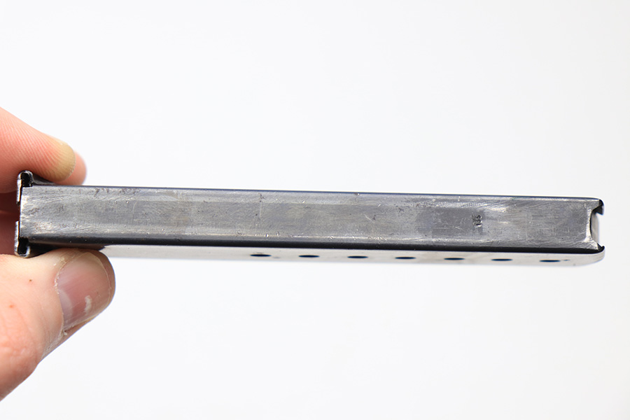 2/15/22 – This is an original Mauser P.38 magazine from WW2. Excellent condition with very nice bluing throughout and only very minimal wear. The spring is strong and fully functional. The spine is eagle 135 proof stamped and the left side of the tube is P.38v stamped.