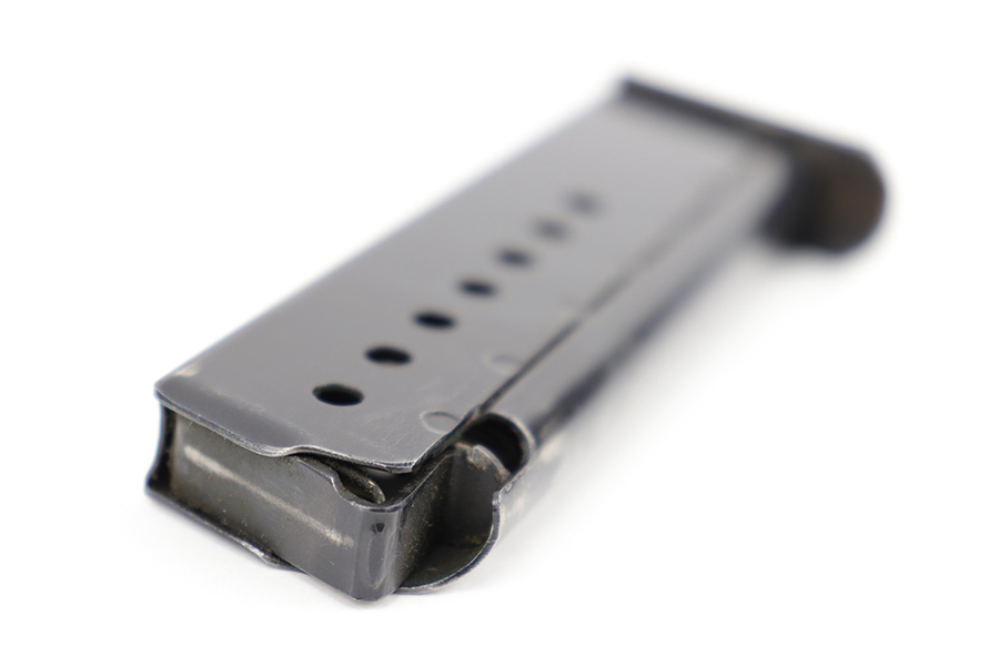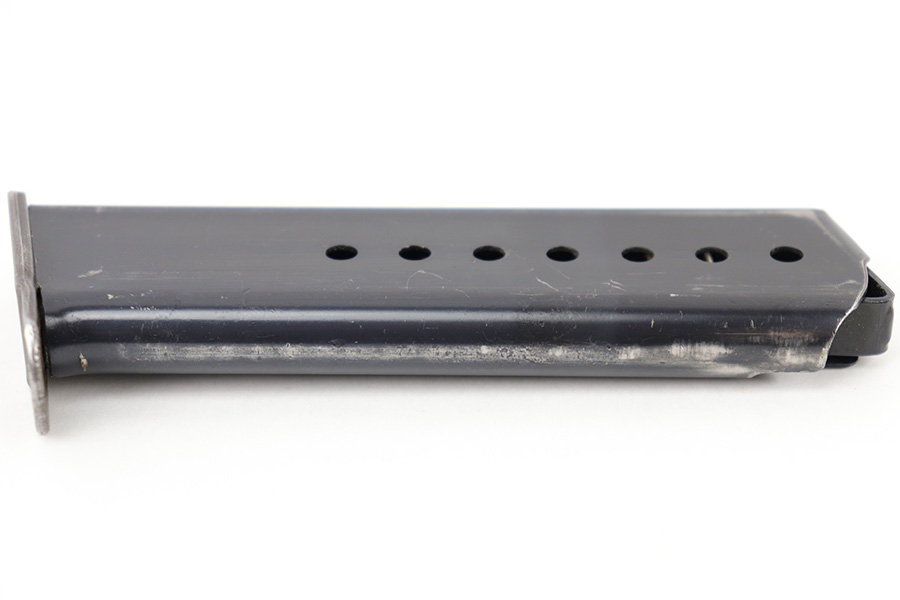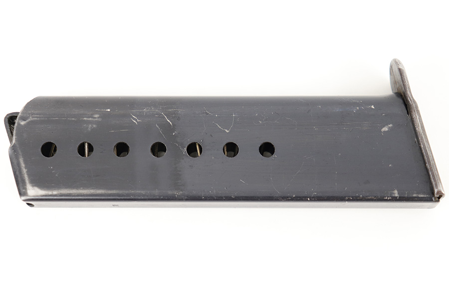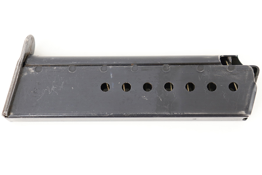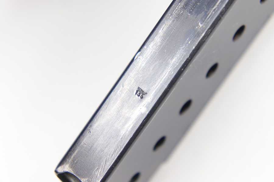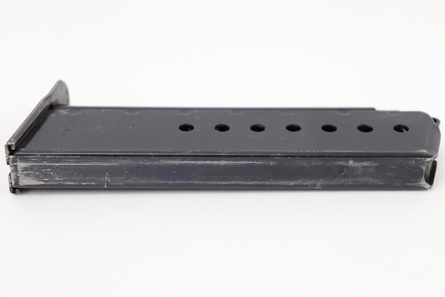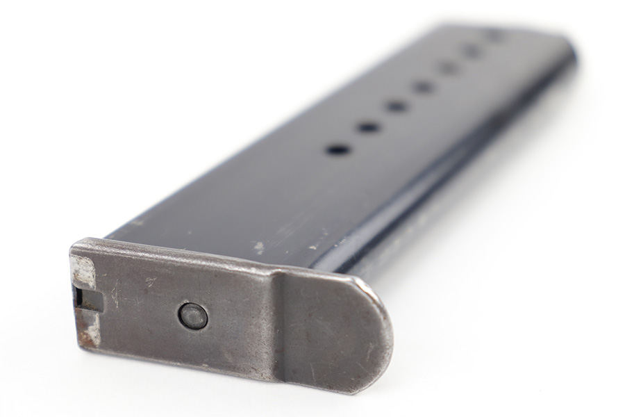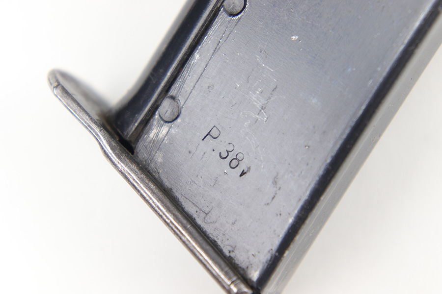 5/22/23 – This is an original WW2 wartime production Mauser P.38 magazine. The magazine is in near-excellent condition with a blued tube and base. The magazine has some mild finish loss but no rust or pitting and a fully functional spring. Stamped P.38v on the left side, and eagle/135 military proof stamped on the spine.