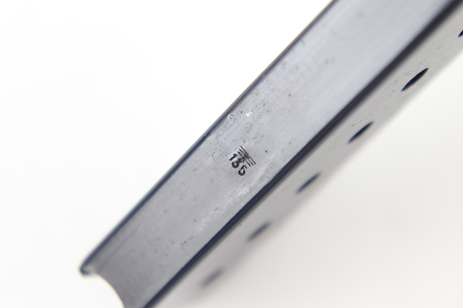 5/26/23 – This is an excellent condition WW2 production Mauser P.38 magazine. The magazine is stamped P.38v on the left side of the tube, and eagle/135 proof stamped on the spine. Minimal finish loss and a fully functional spring.
