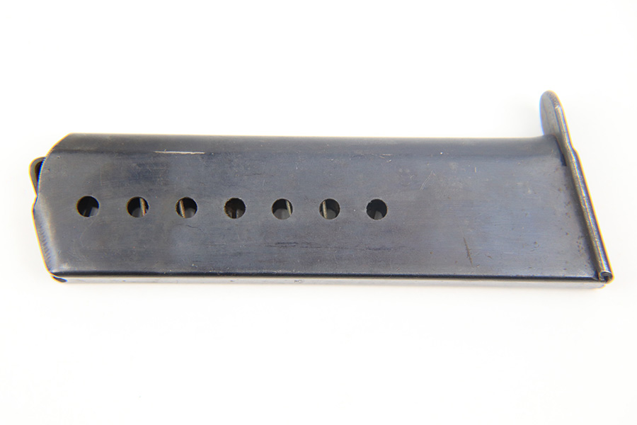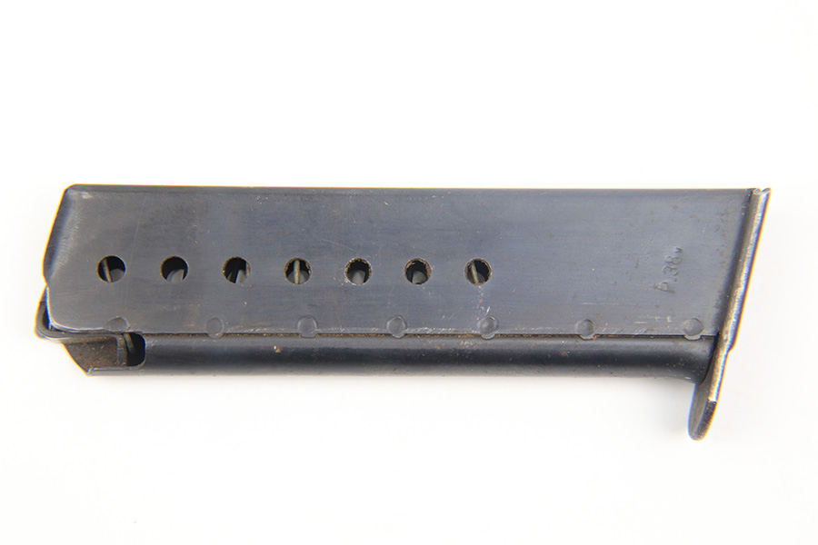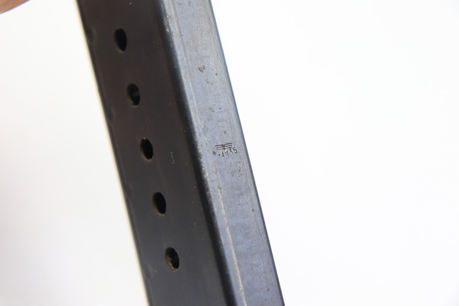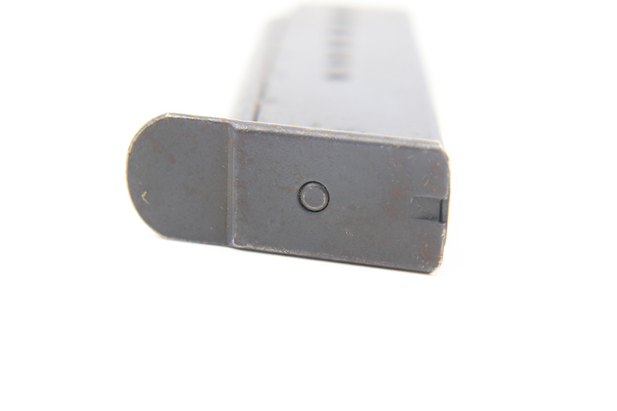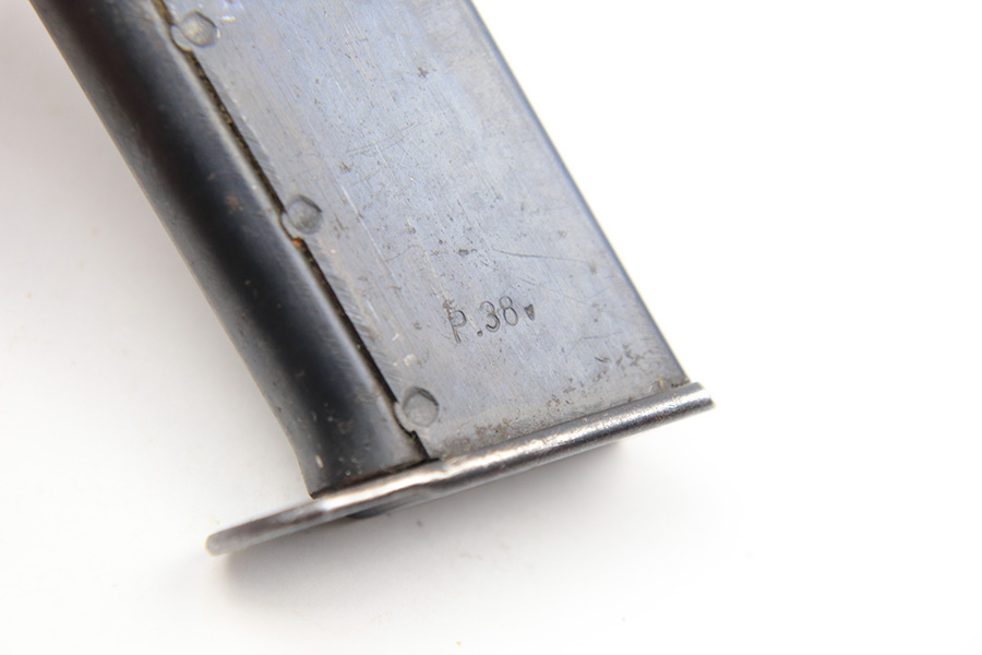 1/28/22 – This is an original Mauser P.38 magazine from WW2. The magazine is waffen WaA135 proof stamped on the spine as shown. The left side of the tube is P.38v stamped. Great bluing throughout with some mild surface patina mixed in. The spring is strong and fully functional.