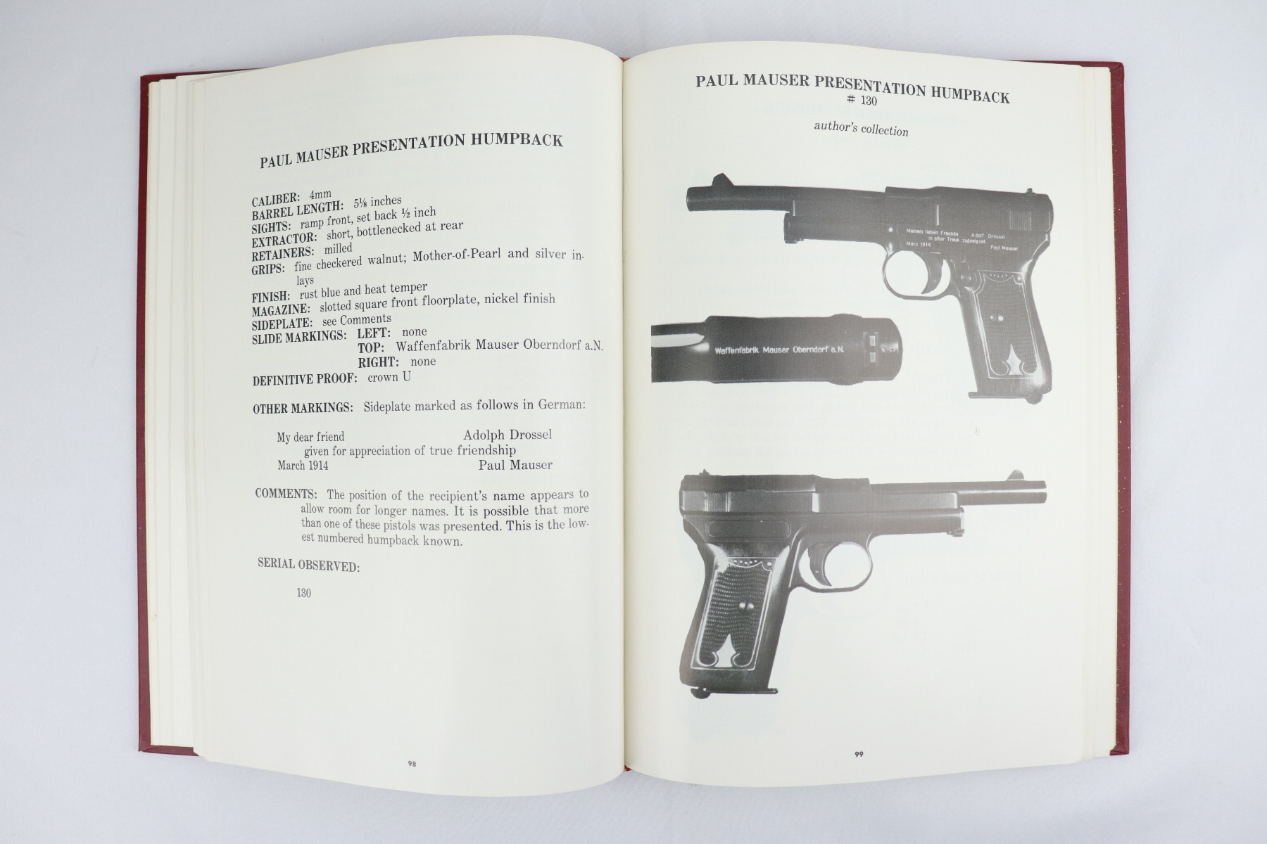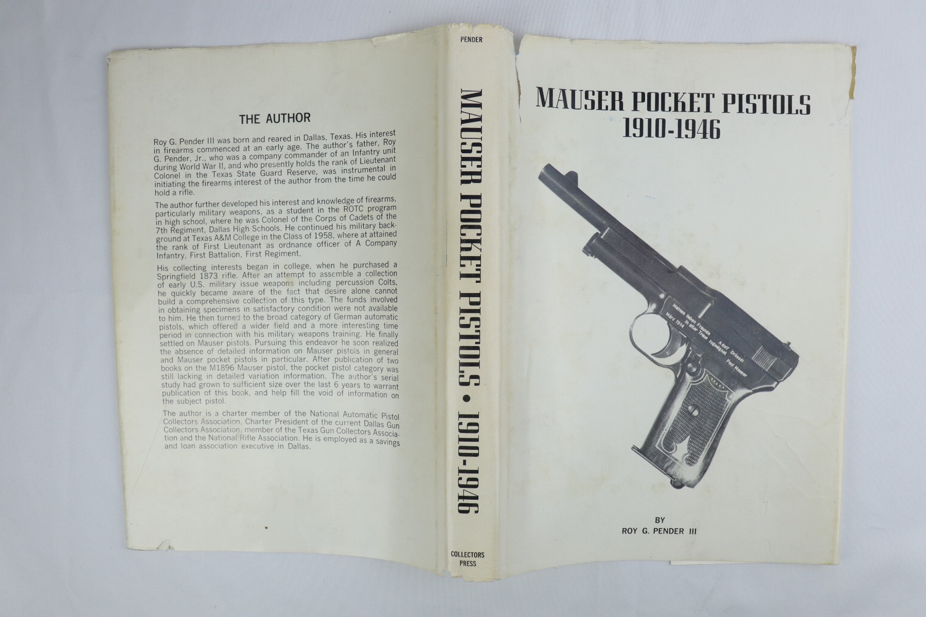 8/12/19 – This is a copy of “Mauser Pocket Pistols 1910-1946” by Roy G. Pender III. This book is a comprehensive, detailed study of the many variations of the Mauser pocket pistol. Each variation is specifically identified with informative specifications pages and left and right side photographs of the pistols. Excellent condition hardcover. The dust cover is in fair condition with some tearing along the top edge and minor scuffing throughout.