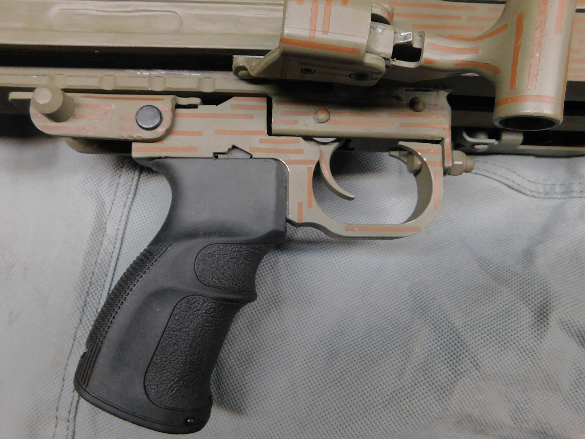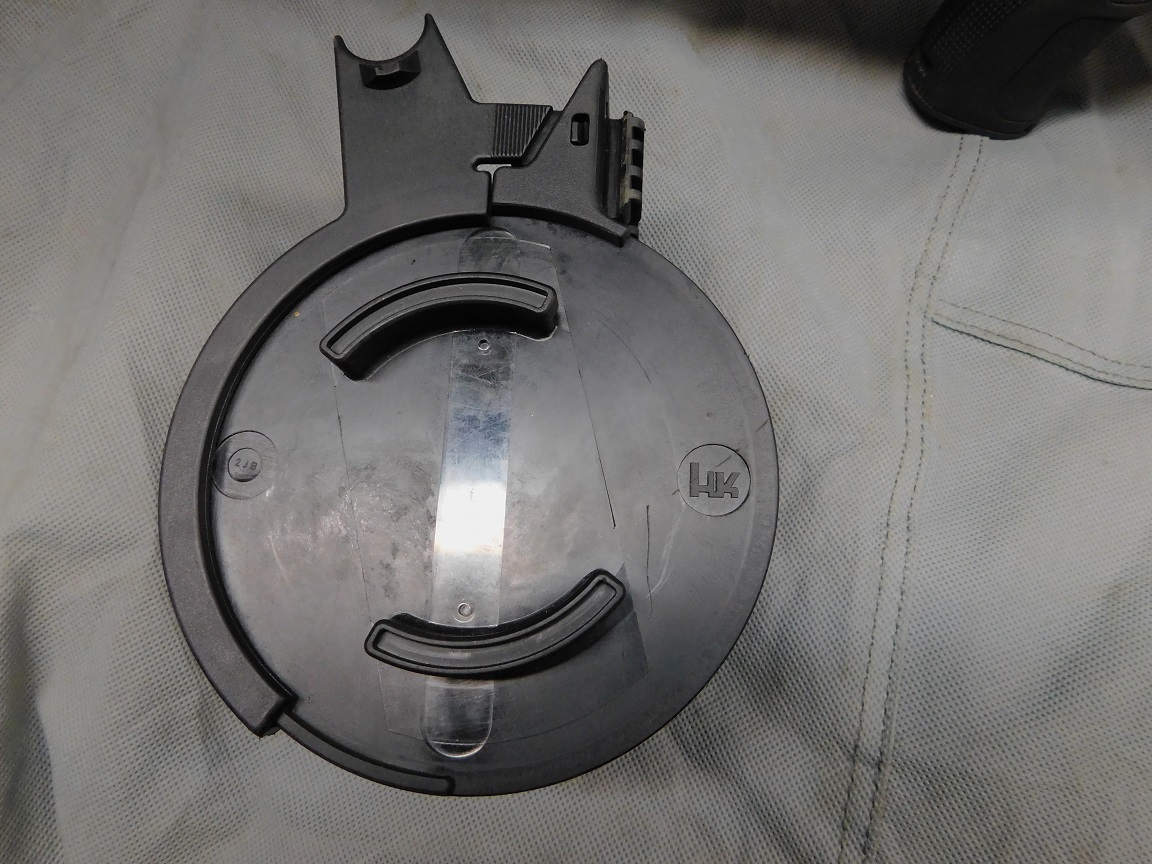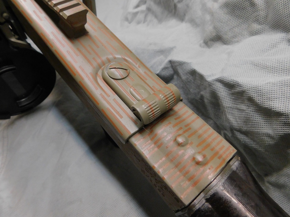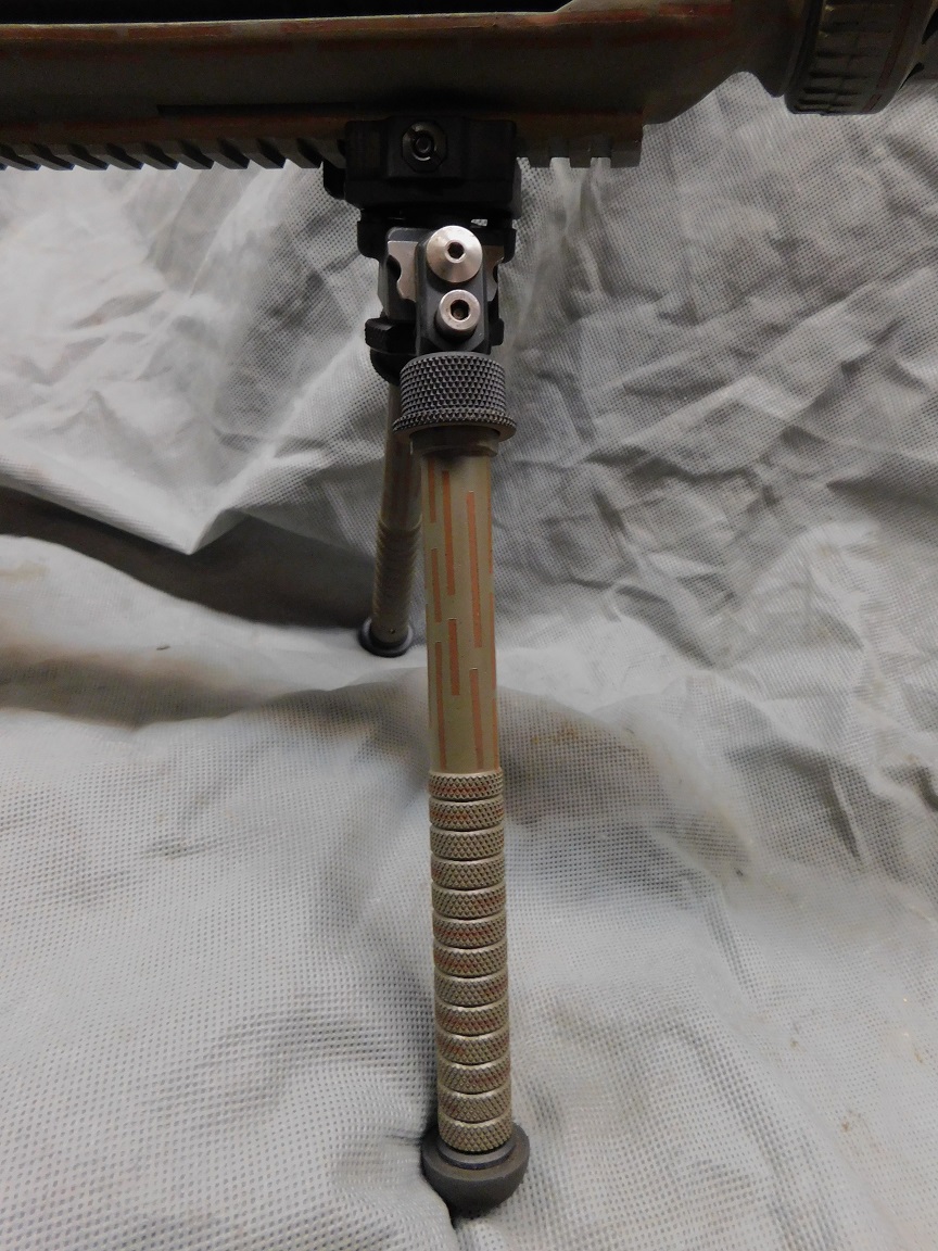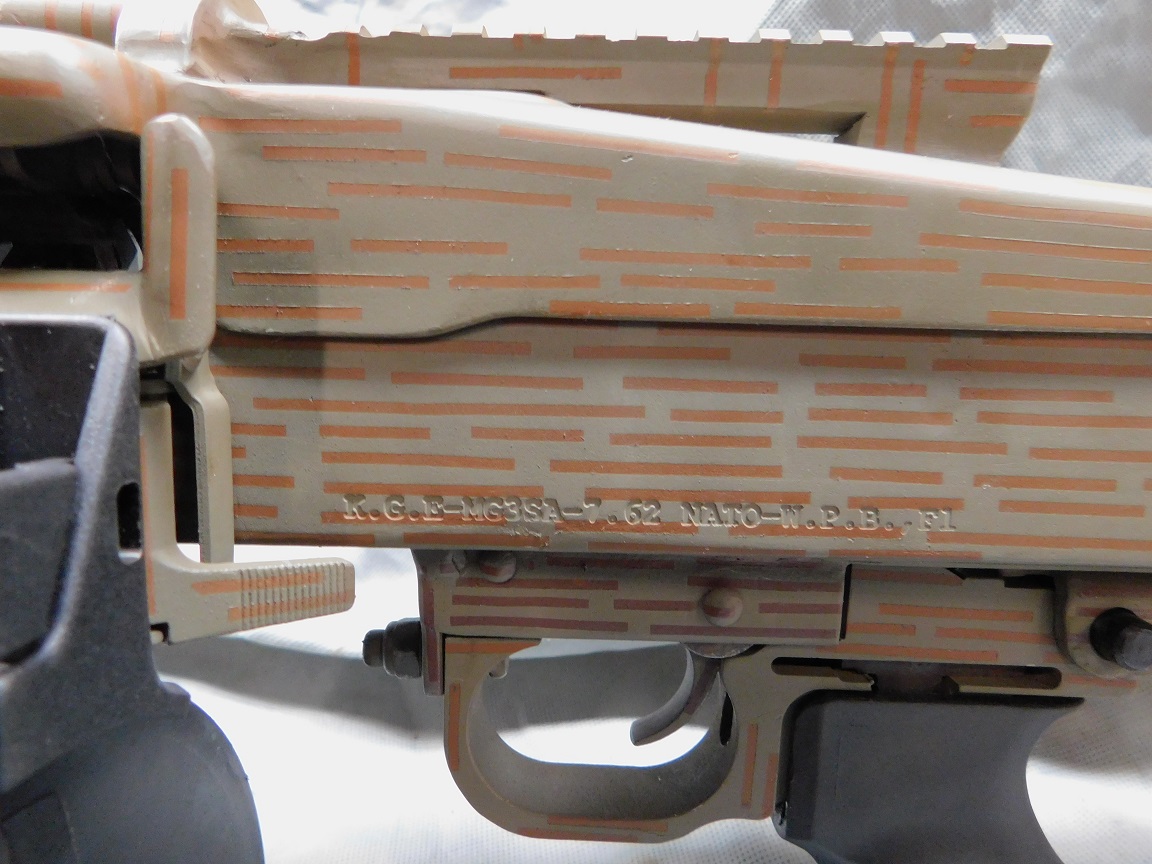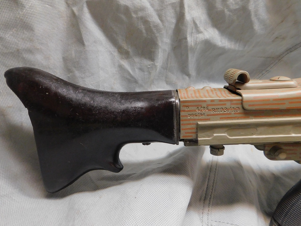 9/18/17 – One of a kind, hand-built modernized semi automatic MG3. This MG3 will stop any busy range on a crowded day. This rifle is constructed from an original de milled German army MG3 kit. It is a hand built and assembled, one of a kind prototype rifle. It is highly custom in every regard, and is the only rifle to exist in this specific configuration. The barrel and shroud have been shortened to 16 inches, and the sight and optics system have been upgraded to modern standards. The vast space of rails offered on the top and bottom and side of the shroud, in additon to the top cover ensure room to mount any optical configuration available. The receiver and rails are custom milled in the USA. The barrel is USA made and 100 percent custom. The charging handle has been improved for ease of operation and durability. A carry handle has been added. The original German army MG3 parts used include the repaired demilled shroud, barrel gate, barrel bushing, top cover, feed tray, flash suppressor, flash suppressor lock, charging handle (modified), recuperator (modified), rear locking cams, stock, drum magazine and links, original barrel carrier and ammunition box. The barrel is a custom in house turned Green Mountain Barrel Co blank in .308w, cut to 16 inches and permanently affixed to an original MG3 trunnion. The blank was a 1:12 twist 4 right hand grooved chrome moly steel. After turning the barrel was stress relieved and duracoated with high heat barrel paint. The OAL barrel length and shroud are 6.6 inches shorter than the original MG3 design. Troy folding steel tritium day night iron sights are included. Please note slight cosmetic wear on rifle from transport and multiple test firings. The rifle is finished in Duracoat camoflauge series, specifically East German Camo.