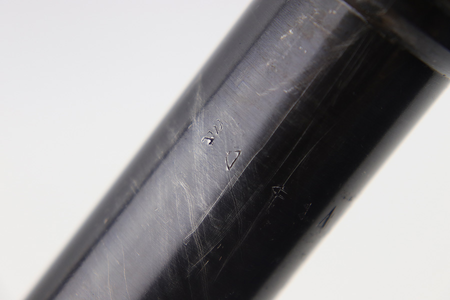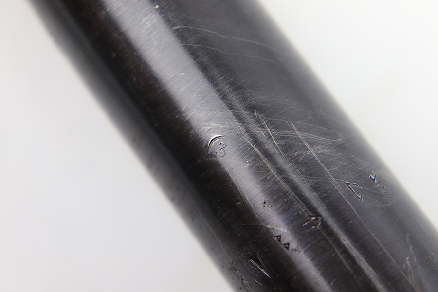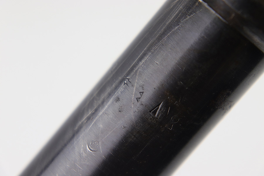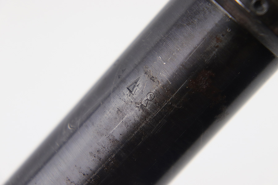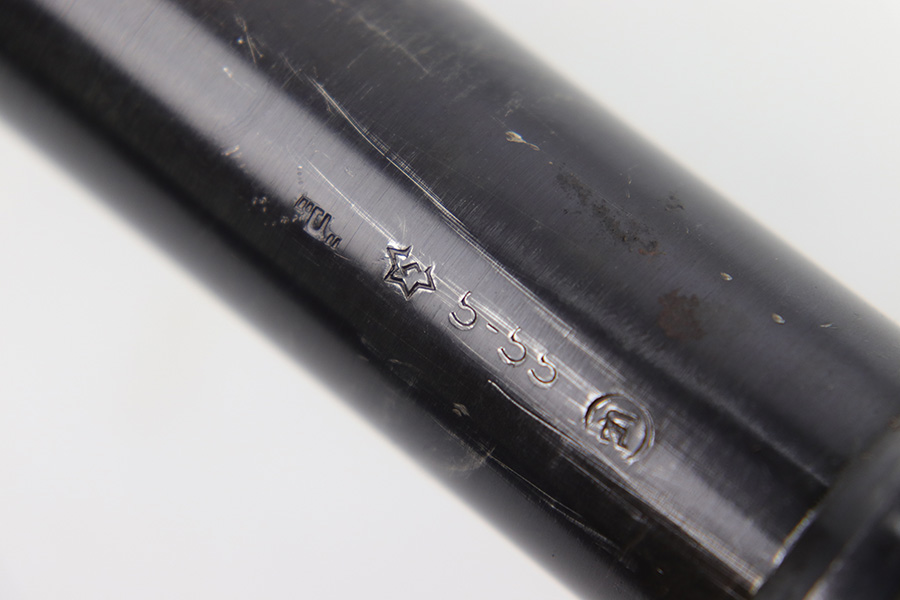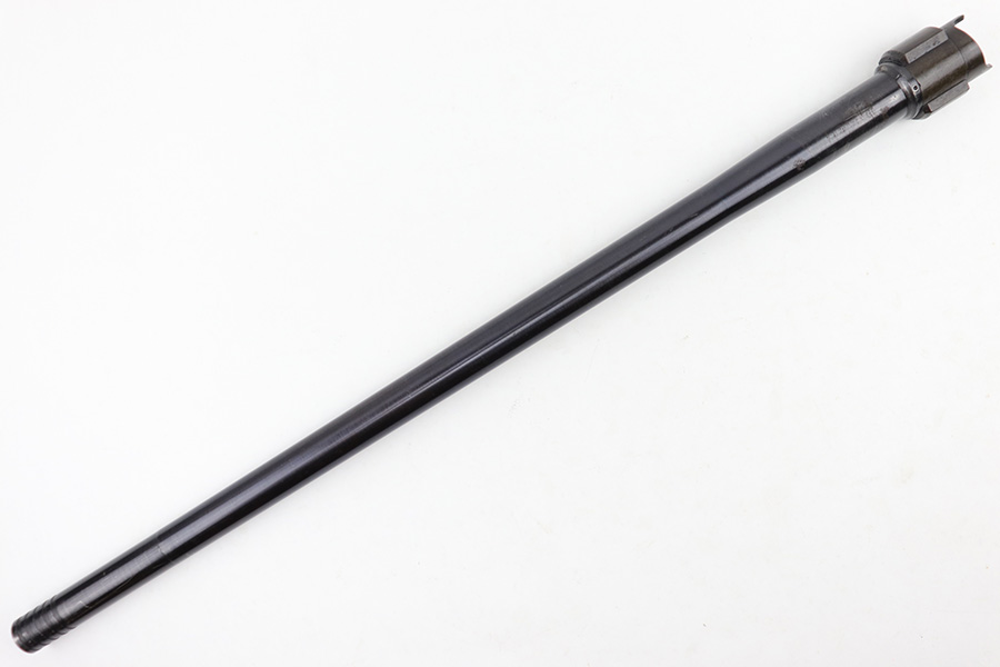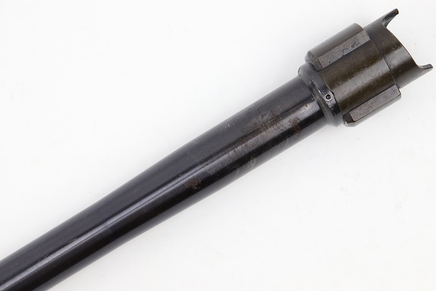 4/19/23 – This is a replacement barrel for a MG 34 German machine gun. The barrel is in excellent condition with a nice blued exterior with minimal surface wear. There’s some spotty patina and finish loss, mostly near the base of the barrel near where the proof stamps and markings are located. The bore is excellent as well with strong rifling throughout and some mild signs of previous use, 9/10 overall. The exterior is stamped “5-55” along with other small proof stamps, as shown. Overall length is about 62cm (including the attachment piece, as shown).
