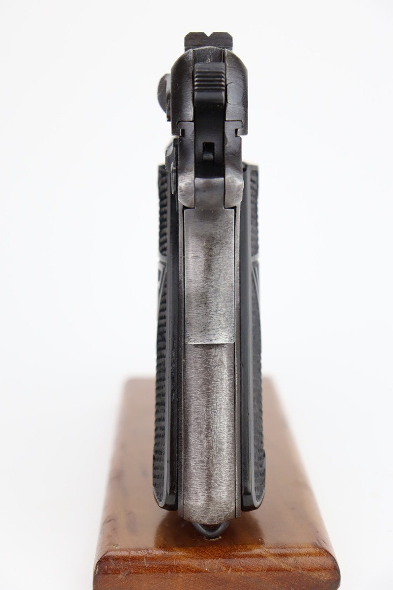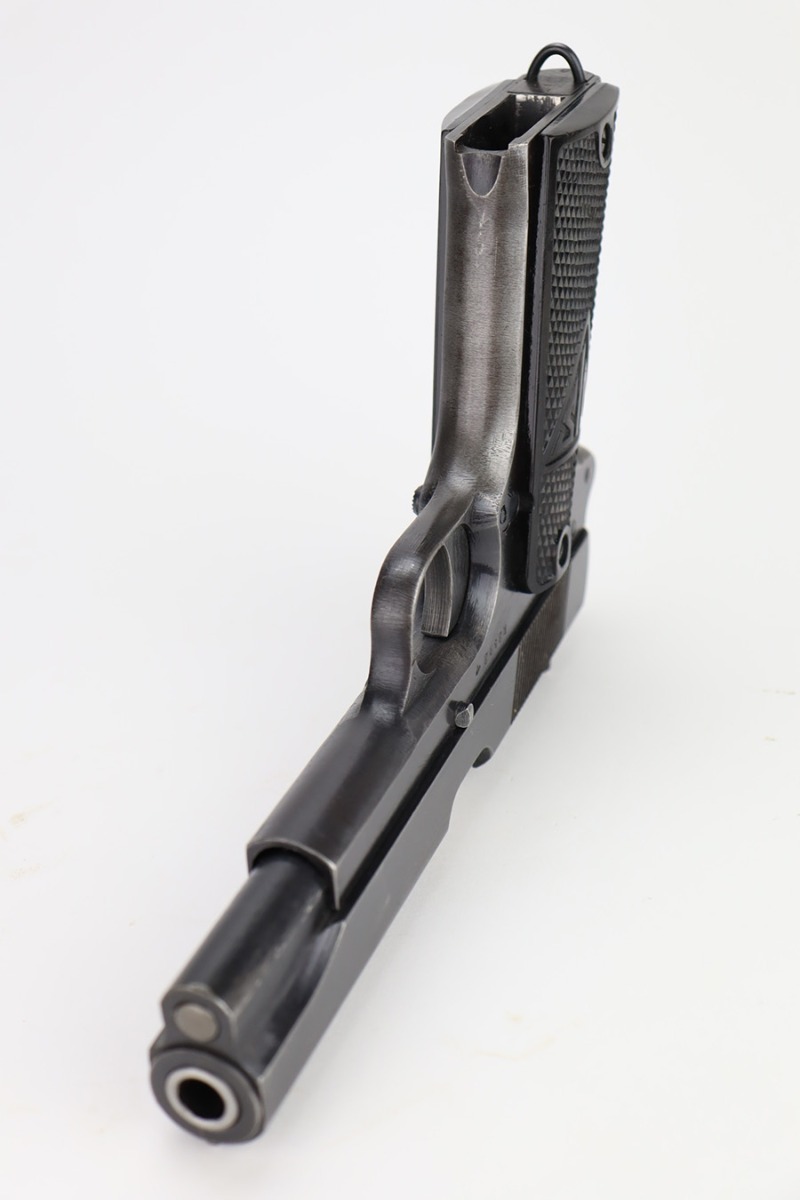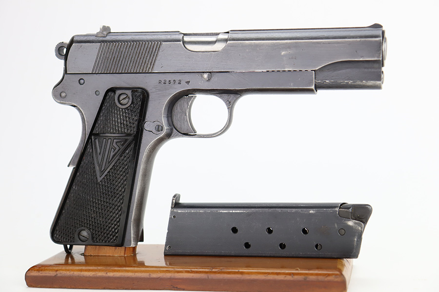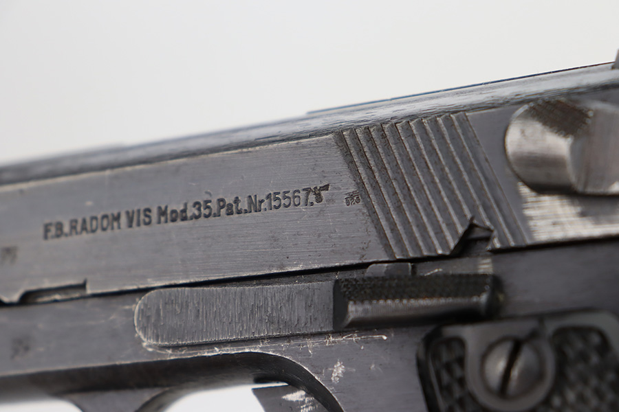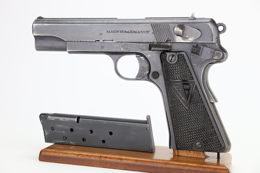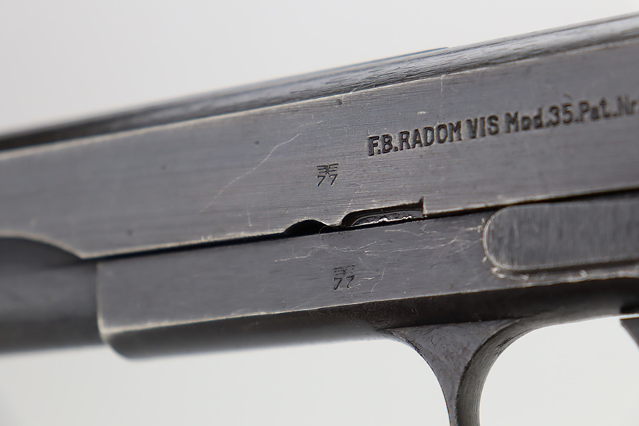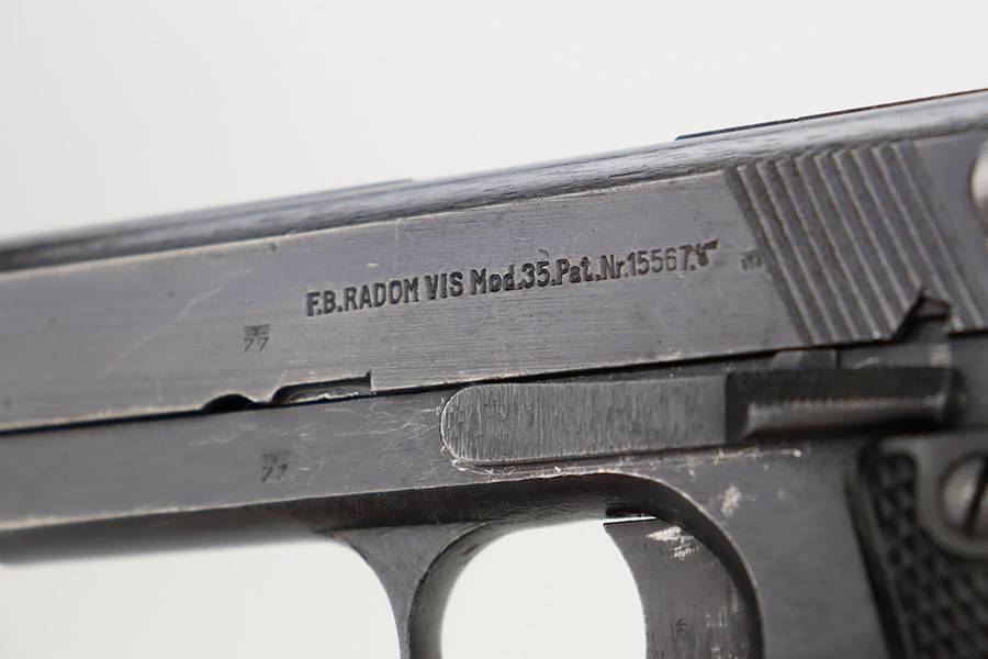 11/30/23 – This is an all matching German occupation era Radom. In the R Block – likely 1943. Still has the 3 levers but not slotted. Comes with a Waffen proofed magazine. Original finish rates about 90% with most of the thinning of the finish on the straps. All matching numbers. Comes in 9mm, and has an excellent bore.