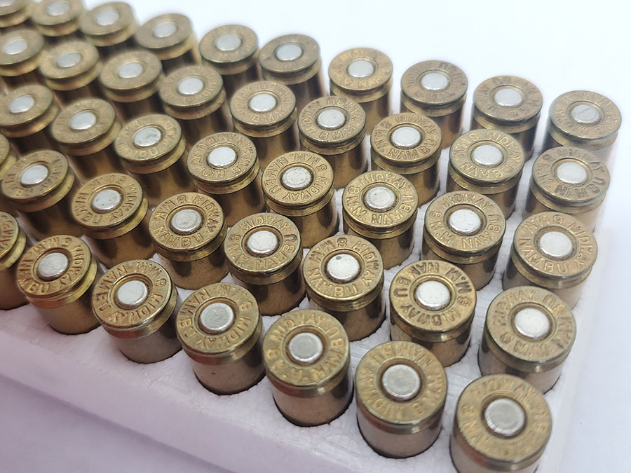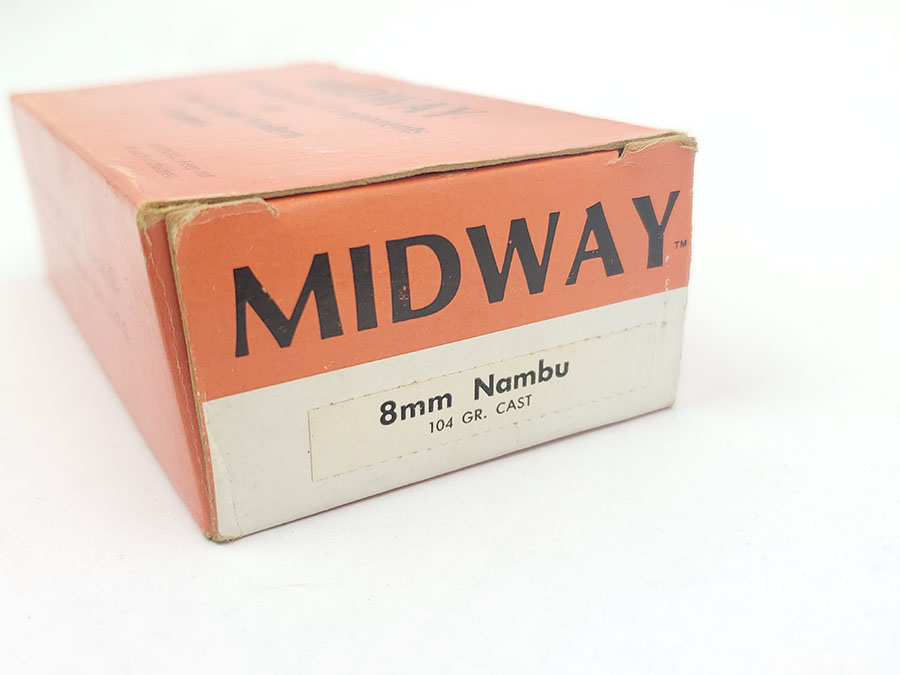 4/21/22 – This is a box of 50 8mm Nambu pistol rounds for collectible WW2 era Nambu pistols. The rounds are all excellent, unfired, and made for shooting by Midway USA. 104 grain. This is hard-to-find ammunition for collectible firearms.