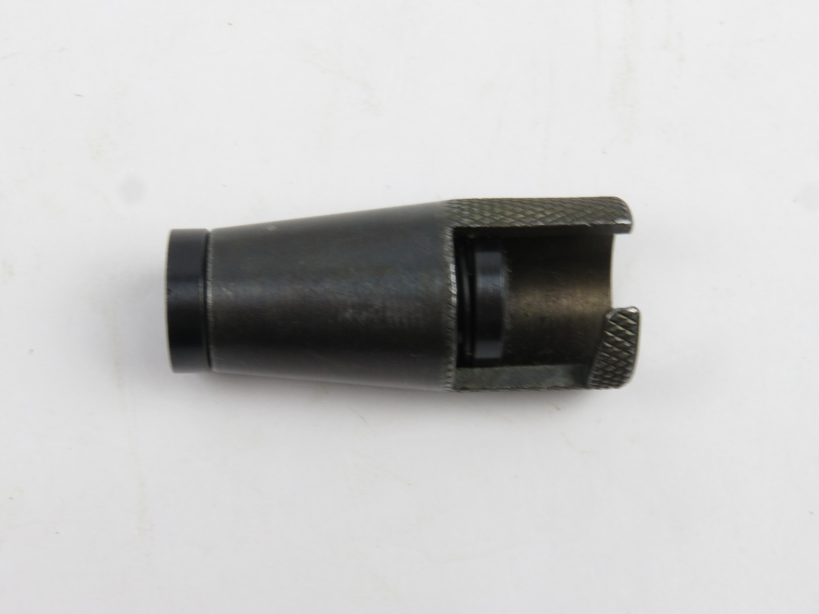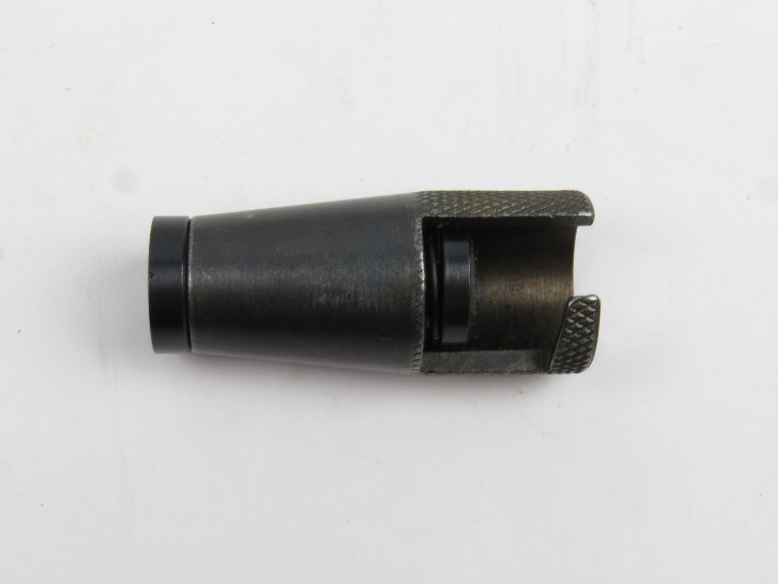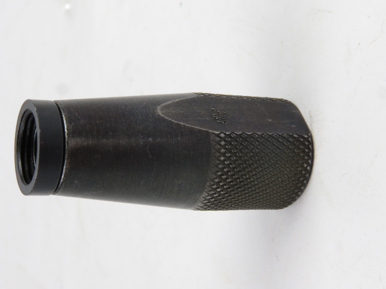 12/15/17 – This is an original WW2 production Luger muzzle cap. These muzzle caps are fairly uncommon. This muzzle cap attaches to the end of a Luger pistol and is in excellent condition. There is a droop winged eagle WaA107 proof stamp. No other markings. Guaranteed original and authentic.