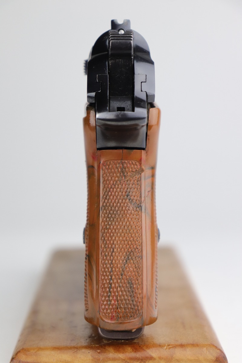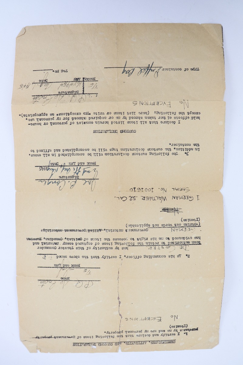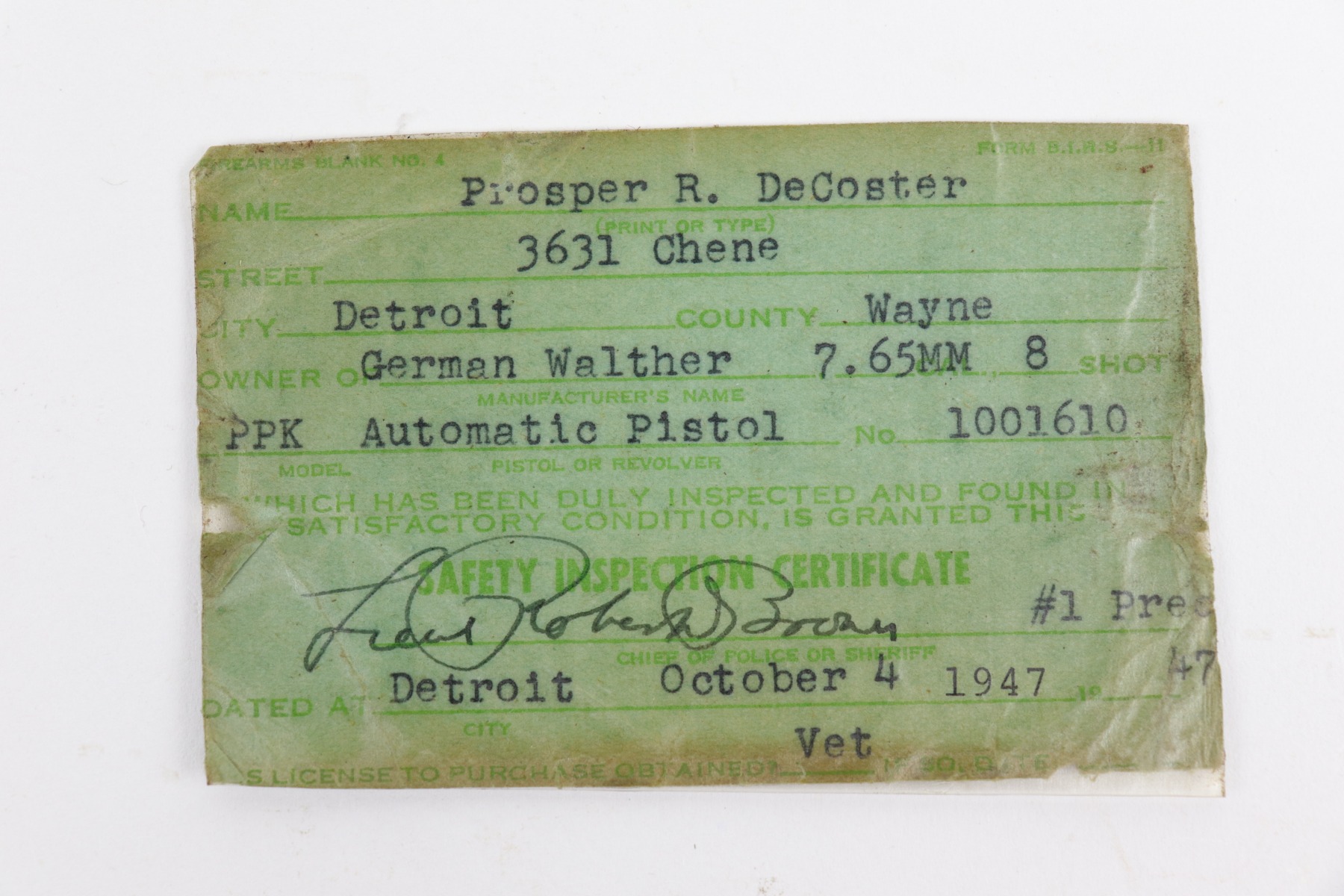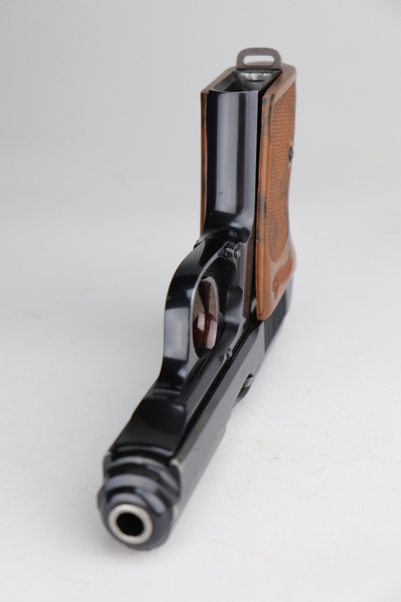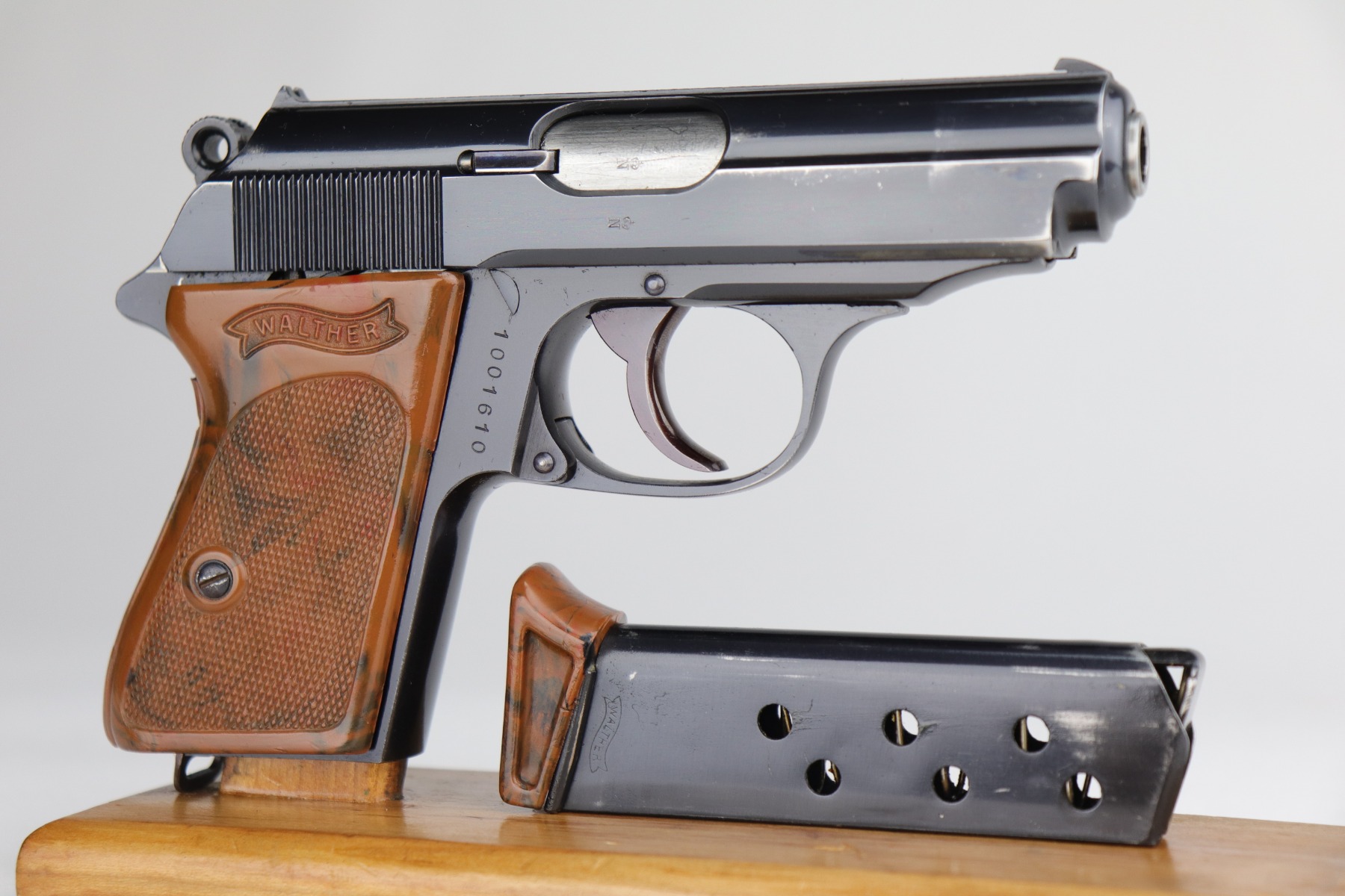 10/30/20 – This is an excellent example of a “Million Series” Walther PPK manufactured in 1938. It comes with the original capture paperwork with the name of the veteran who brought it back. The gun is all matching and has the proper “Crown N” proofs. It is in excellent condition, retaining about 97-98% of its original bluing. The fire blue on the safety lever is mostly in tact. There is minor wear around the muzzle and a few spots of wear on the right side of the slide. A few very minor dings here and there. It comes with a minty brown grip and a brown finger extension magazine. The bore is minty – shiny with strong rifling.