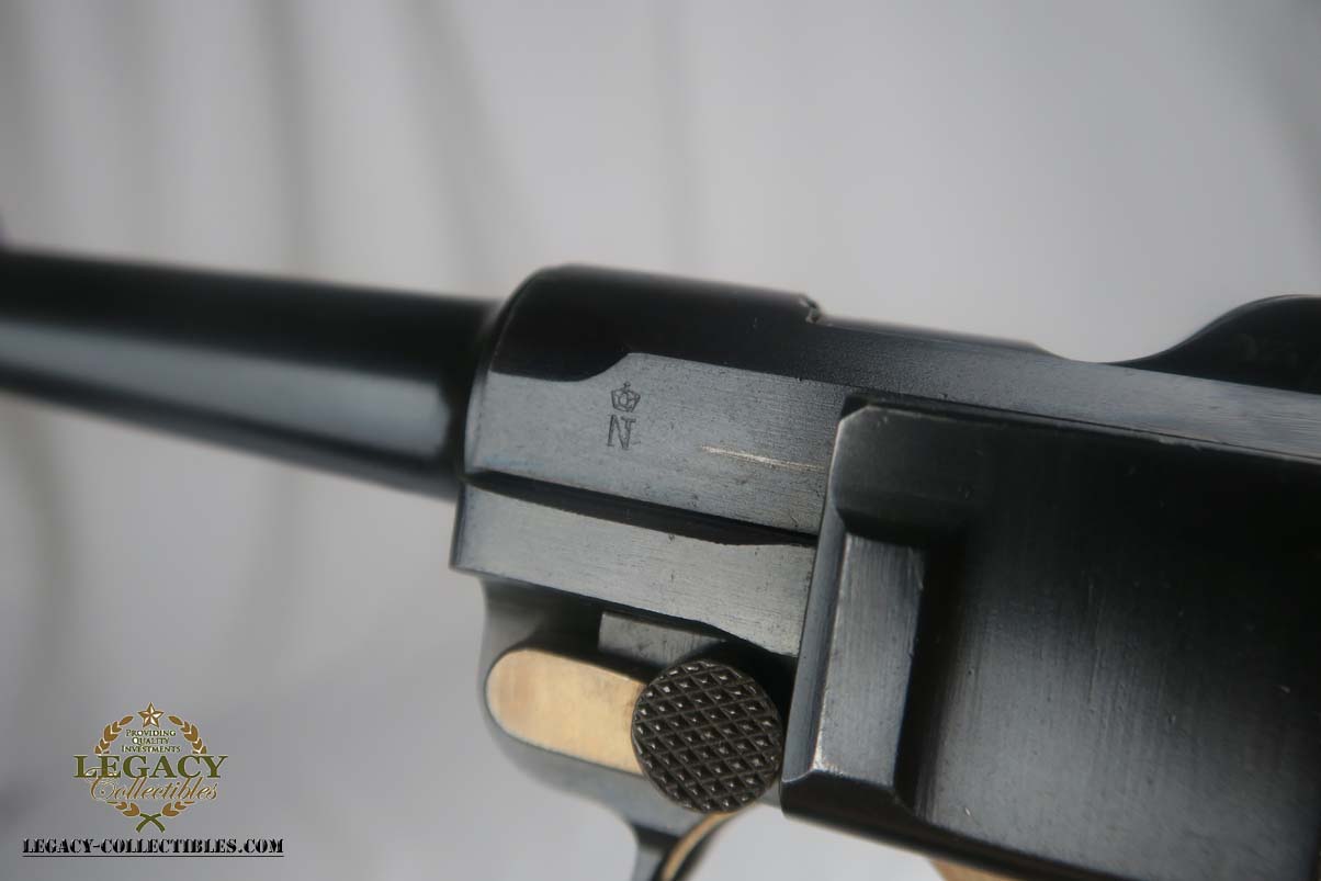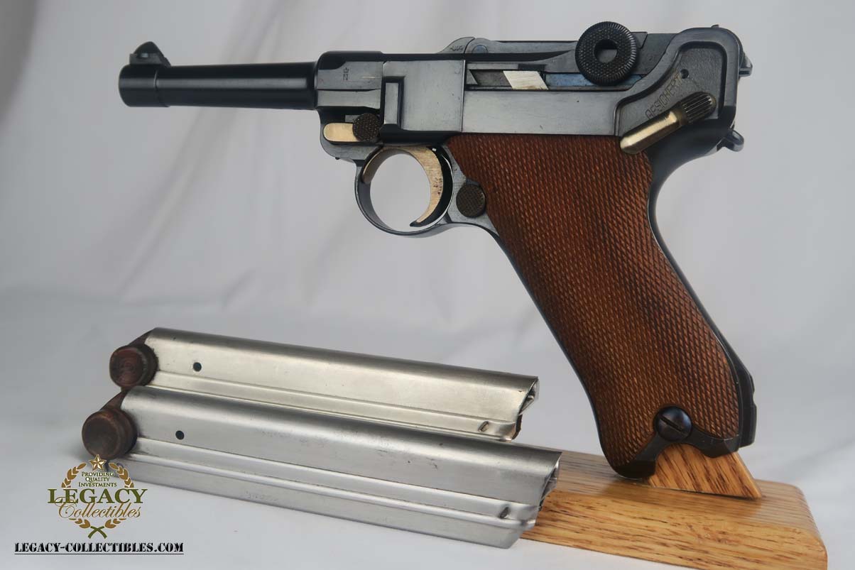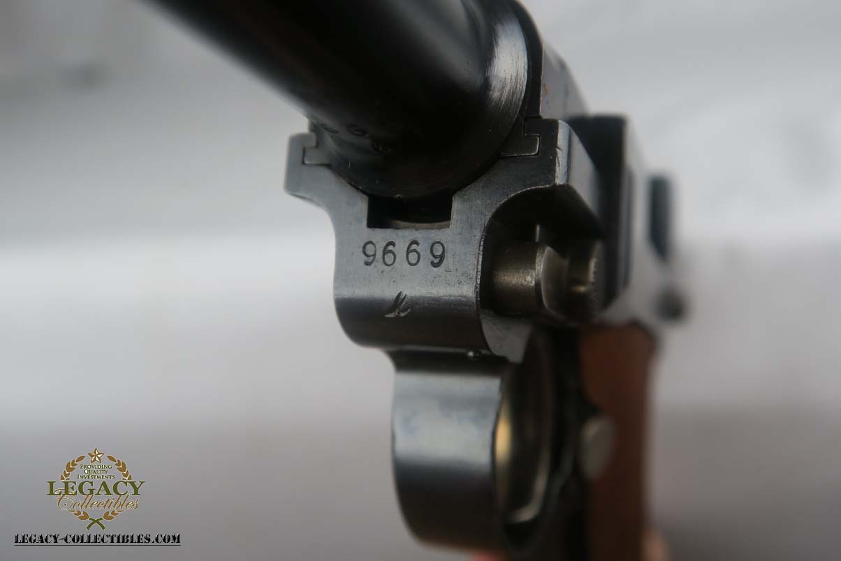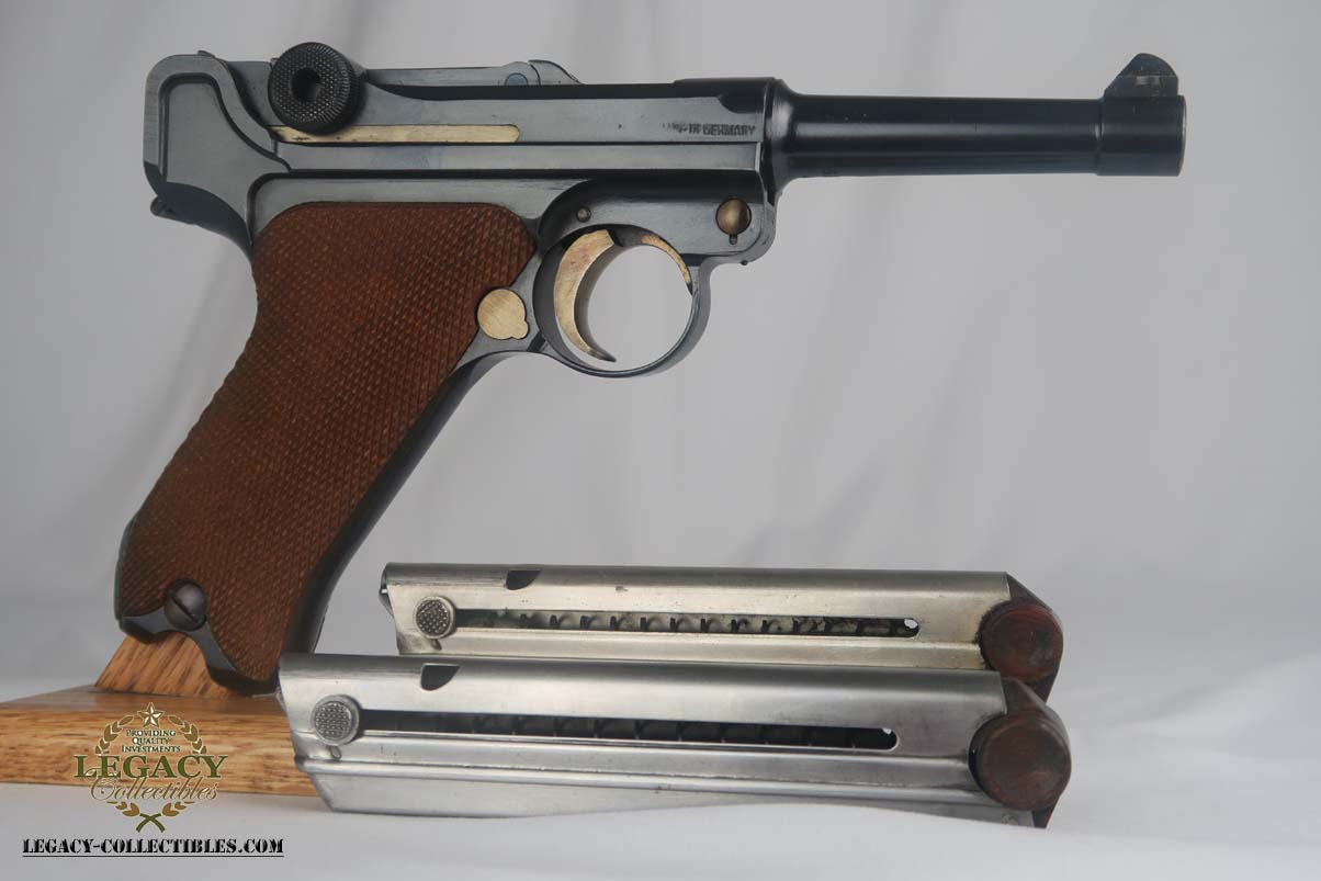 9/4/18 – This is a mint 1920 commercial DWM luger in the original box. It comes with a spare magazine which is period correct, as well as the WWI era manual and instructions for use page. The box is not serialized to the pistol, but commercial luger boxes generally weren’t. The finish of the pistol negligible wear, and the pistol is all original and correct. It is marked “MADE IN GERMANY” on the right side of the receiver. Minty bore, as well.