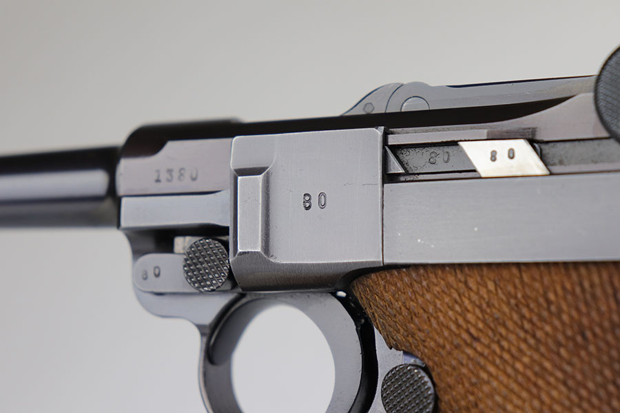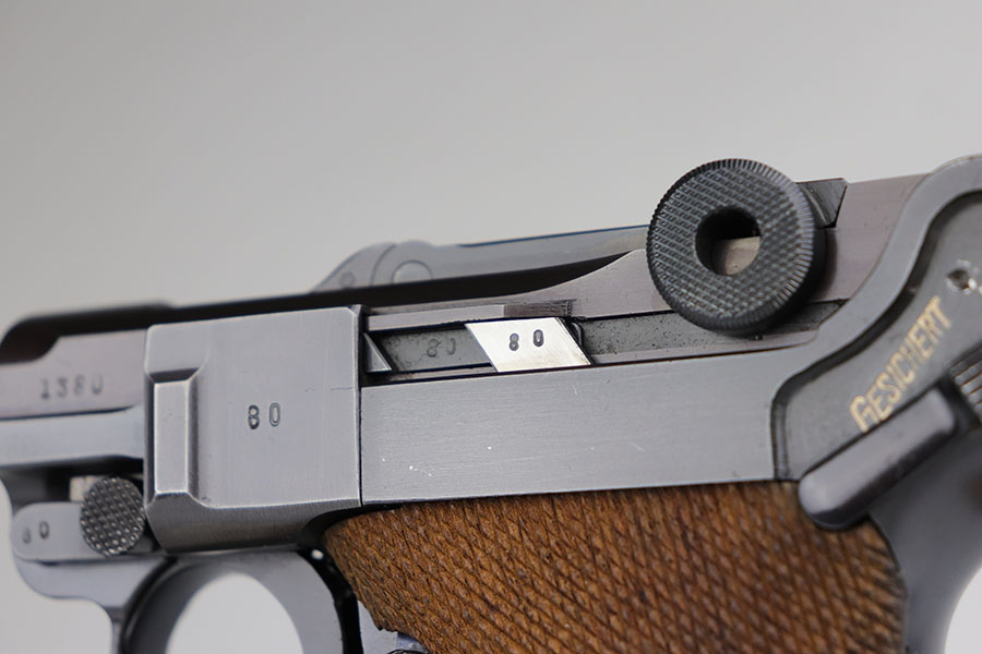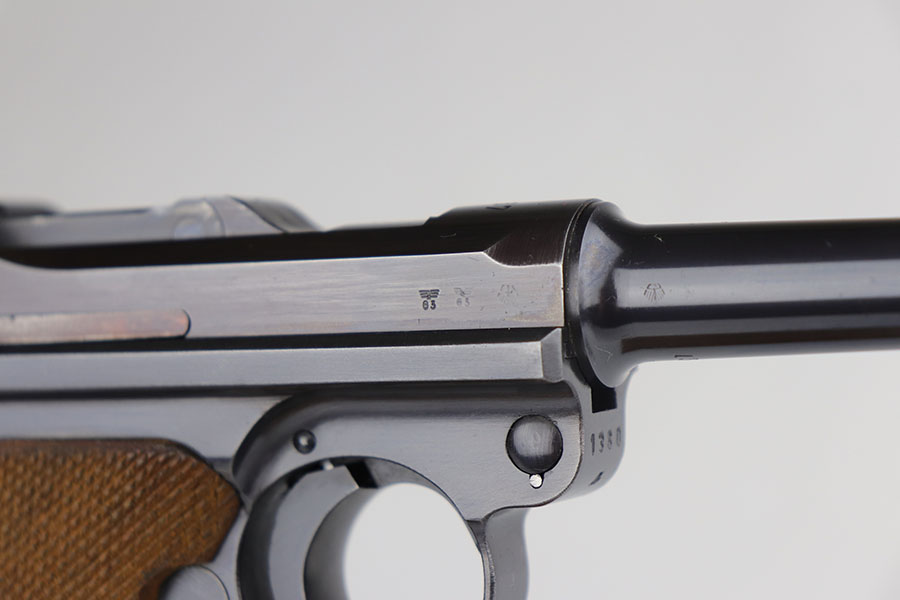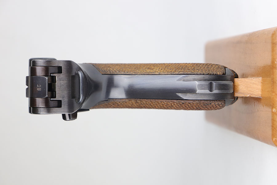 6/30/20 – This is a mint 1937 Mauser Luger with original, matching magazine and grips. It’s a second variation example with blued small parts. Original blue rates at 99% with little to no wear to speak of. Grips are in the same condition. Bore is shiny with strong rifling and just a hint of frost. Nice plum color to receiver.