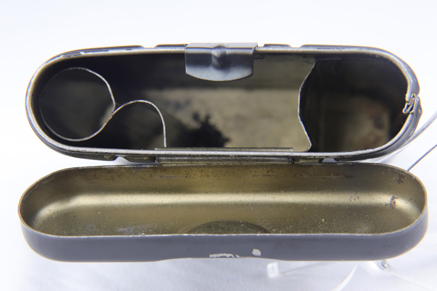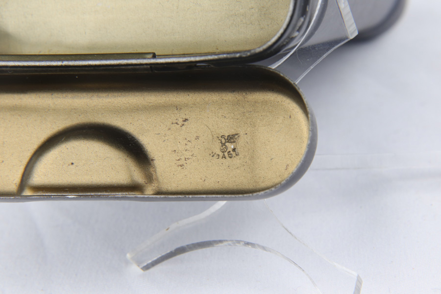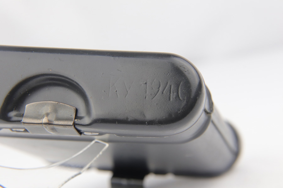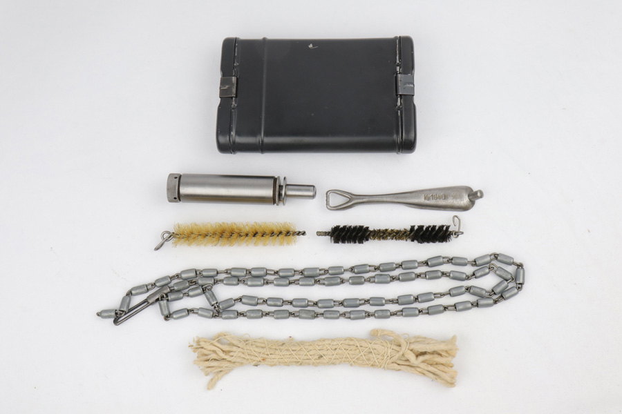 2/14/19 – This is an original, mint condition K98 cleaning kit. Nicest we’ve ever seen! Beautiful original paint is almost completely in tact with just a very minor amount of paint loss on the edges. One “lid” is stamped “Ky 1940” and waffen eagle stamped on the interior. Everything shown in photos is included. Beautiful interior parts. All original and authentic.