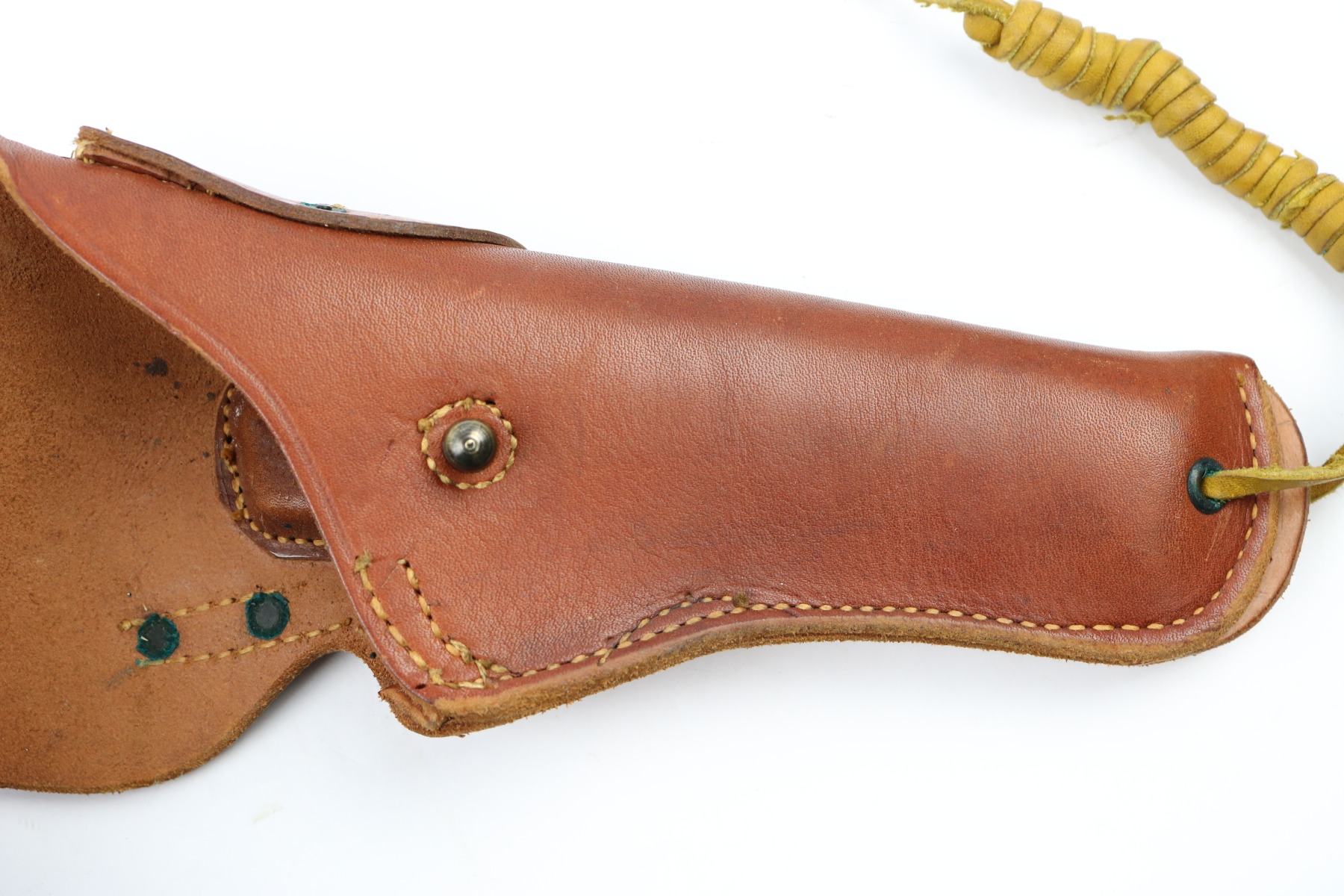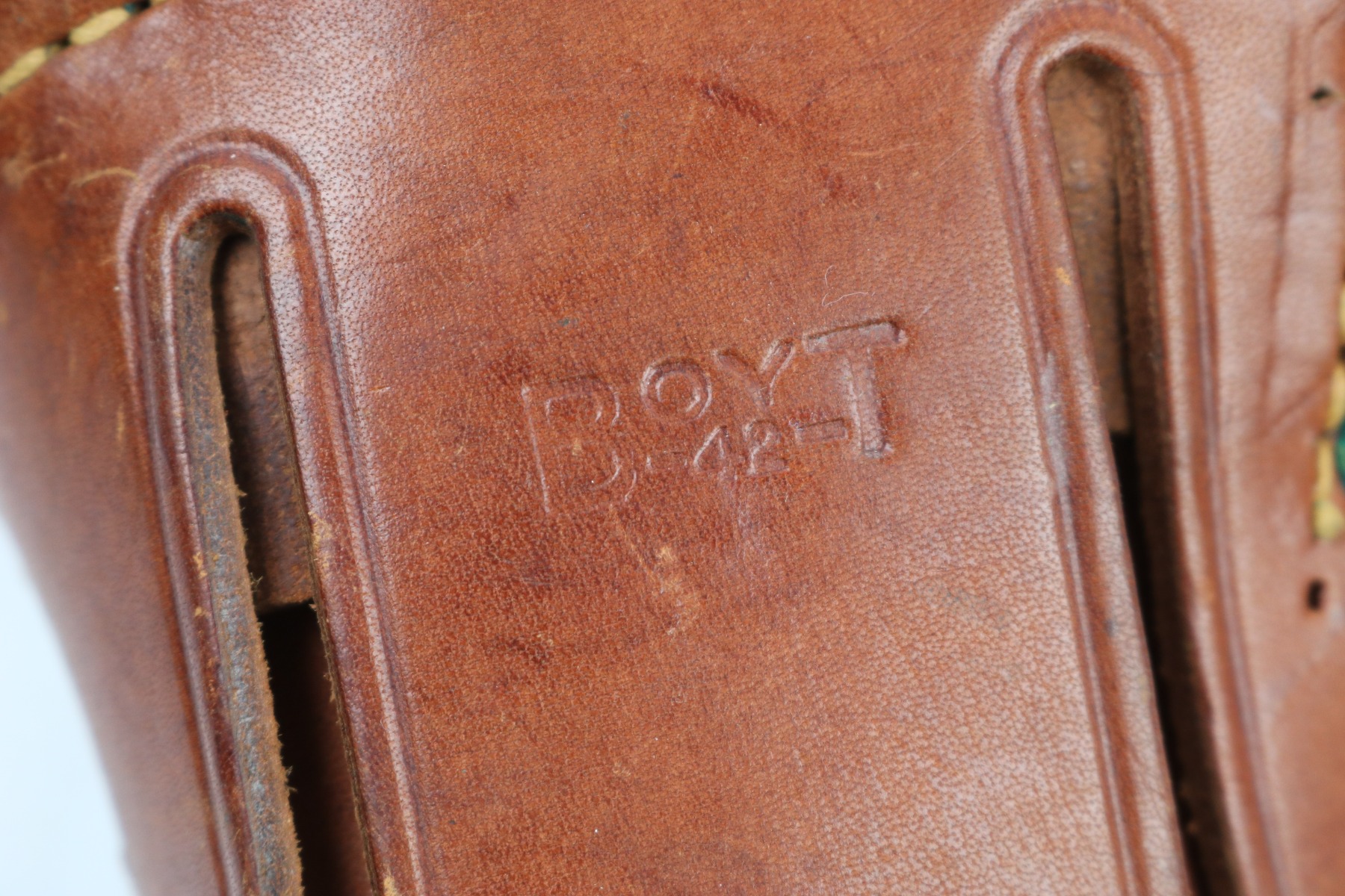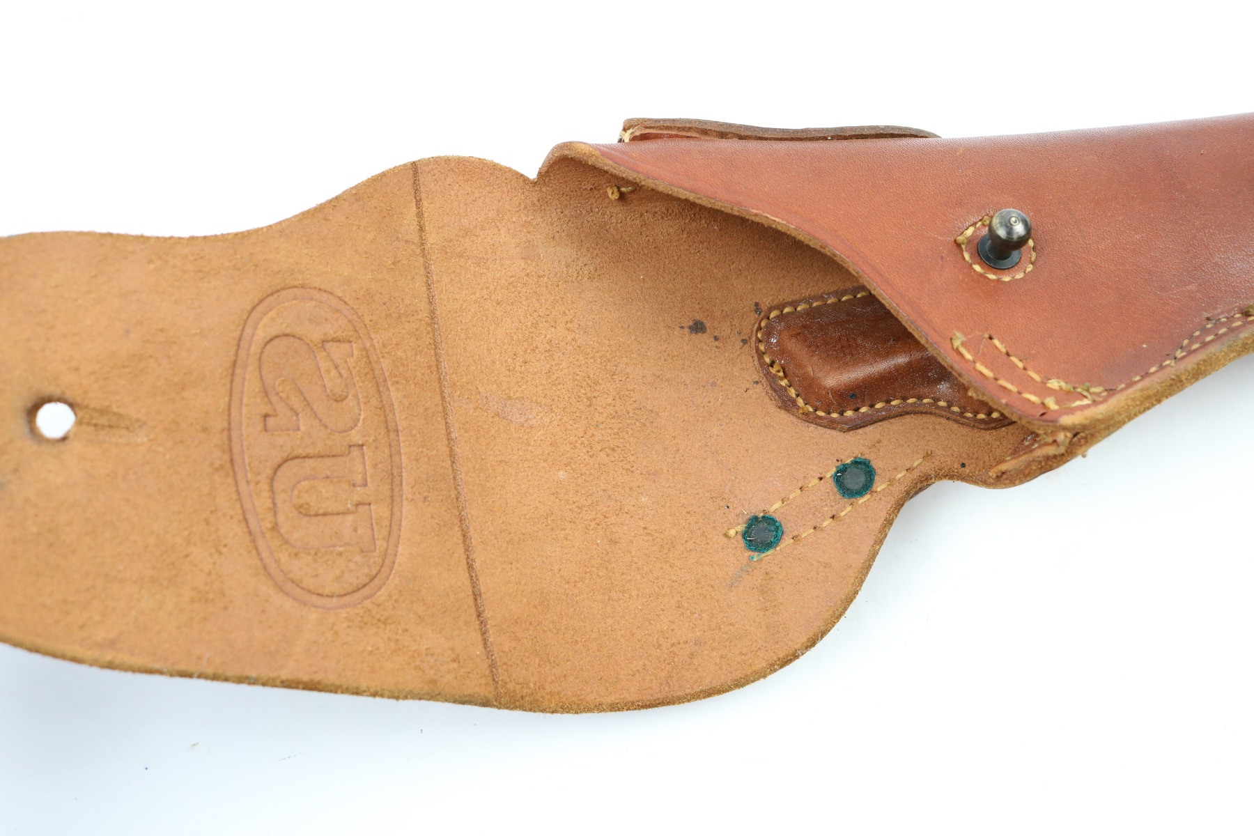 6/21/18 – This is a minty 1942 dated 1911a1 Colt holster. The holster is in beautiful condition with all original leather and stitching. Dated and maker stamped on the back leather. The 1942 dated 1911A1 holsters are hard to find, and this one is in impossible-to-upgrade condition.