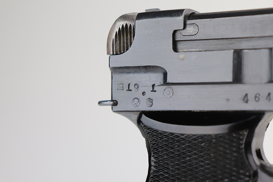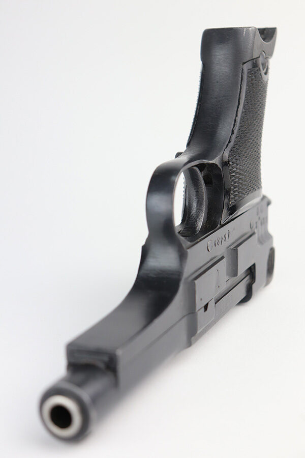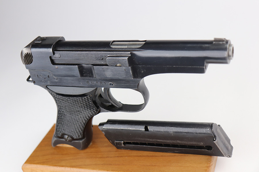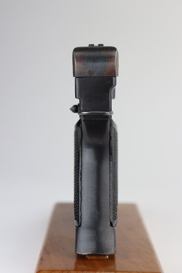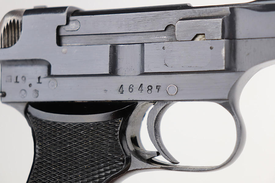 6/15/21 – This is a mint example of a Nambu Type 94 issued to the Japanese military in January of 1944. The gun is all matching and comes with one matching magazine. It has retained about 99% of its original finish. There is just a hint of wear around the muzzle and on some of the high edges. Comes with excellent black bakelite grips. The bore is near-mint.