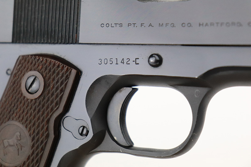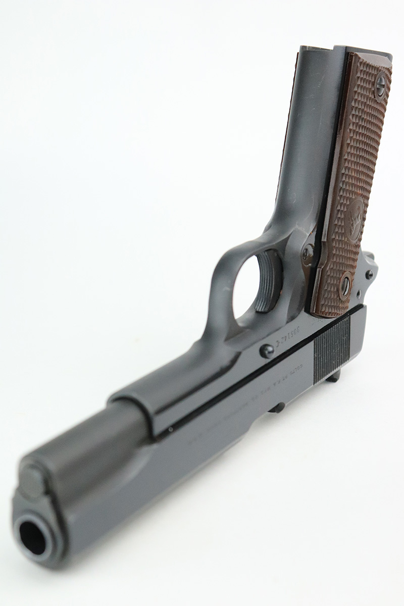 9/22/22 – This is a mint example of a Colt Government Model 1911A1 manufactured in 1966. It is all correct and has retained virtually all of its original finish. There are just a few tiny handling marks here and there. Comes with excellent brown plastic grips and one proper magazine. The bore is mint. Very smooth action.