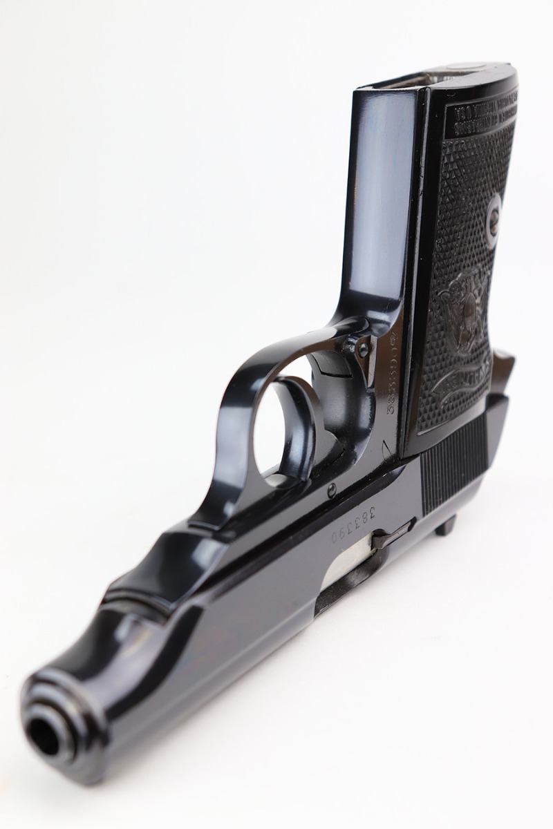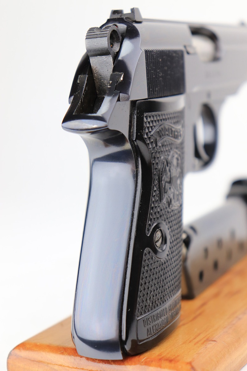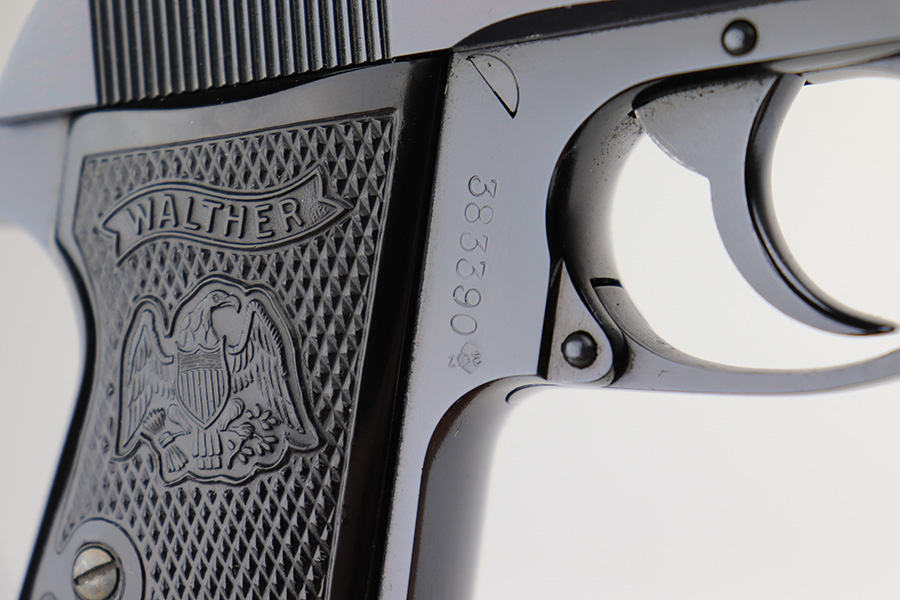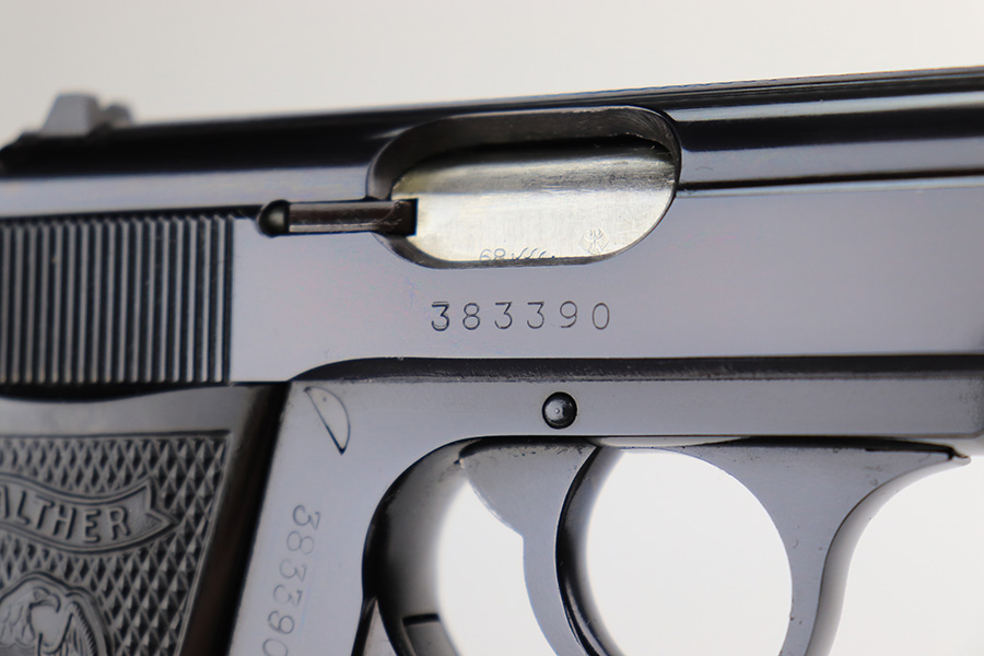 3/24/22 – This is a gorgeous, mint example of a Watlher PP manufactured in 1968 and chambered in 7.65mm. It is all matching, has the proper West German proofs throughout, and has no import marks. It has retained virtually all of its original high polish finish with no obvious signs of wear. Comes with one standard Walther grip on the left side and one Walther/Interarms eagle grip on the right side. Also comes with one proper finger extension magazine. The bore is near-mint with just a hint of frosting in the grooves.
