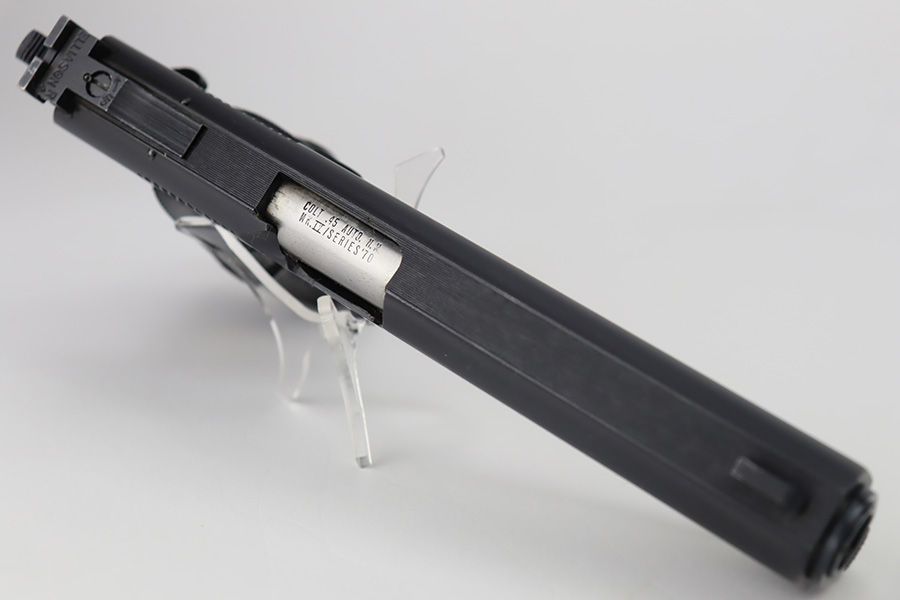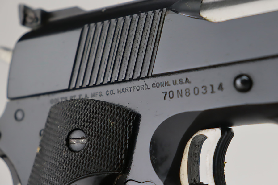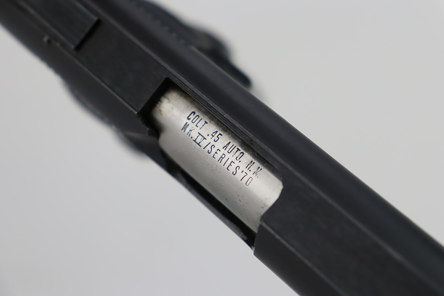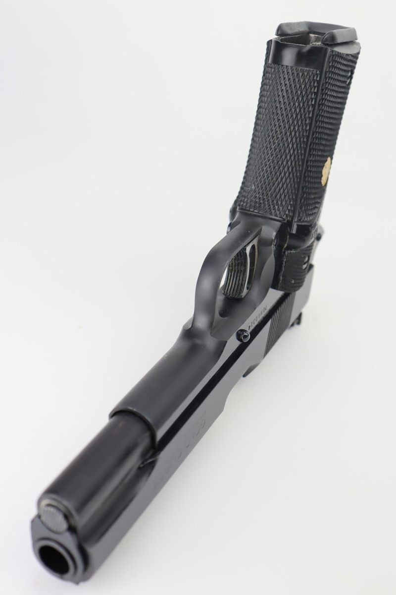 10/20/23 – This is a mint example of a Colt Mk IV Gold Cup National Match, manufactured in 1979 and chambered in .45 ACP. It has retained nearly all of its original finish with just a hint of wear around the muzzle. Fitted with black rubber Pachmayr grips and comes with one proper magazine. Near-mint bore.