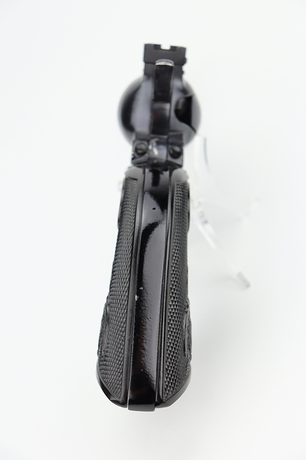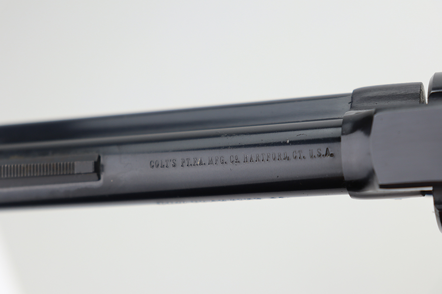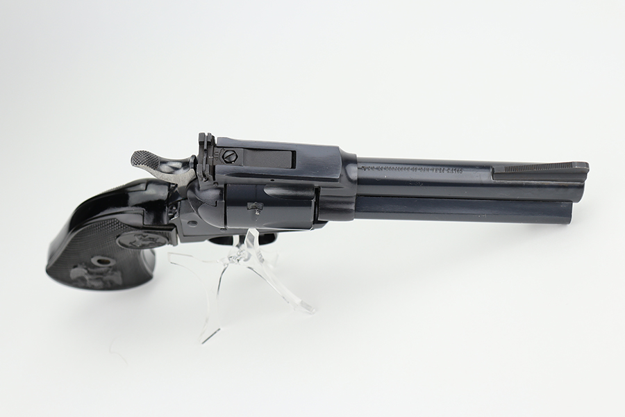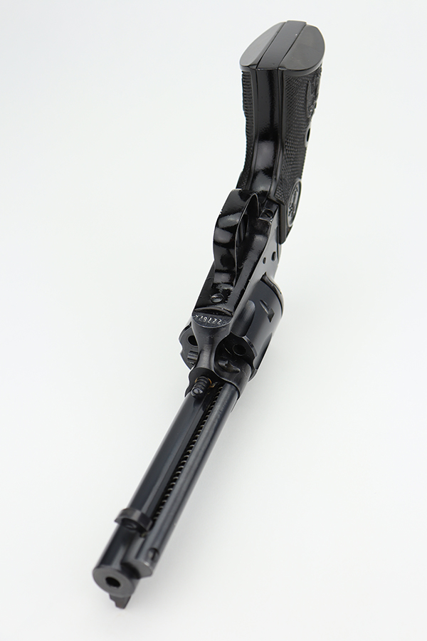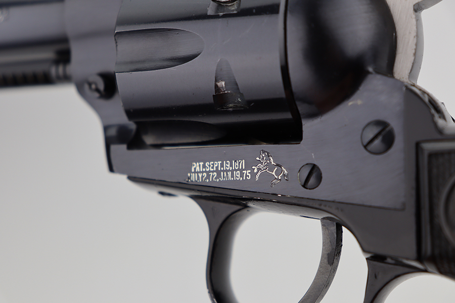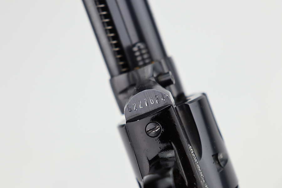 6/20/24 – This is a mint example of a Colt New Frontier Revolver, manufactured in 1986 and chambered in .22 LR. It has retained virtually all of its original finish, just a few tiny surface scratches here and there. Fitted with American Eagle black plastic grips. Mint bore. Smooth action.