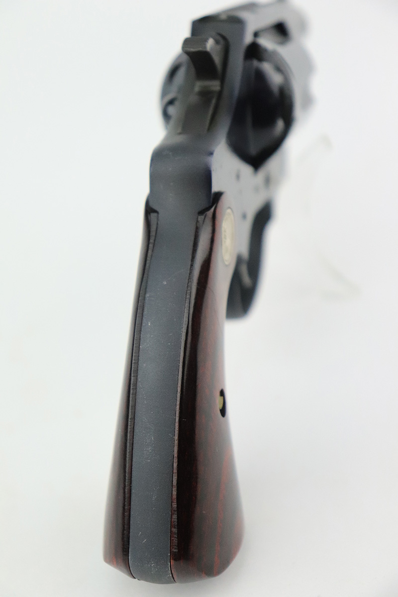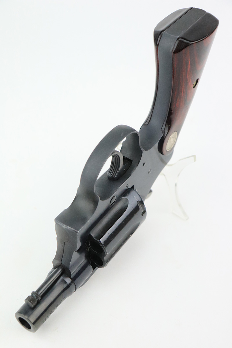 10/4/22 – This is a mint example of a 2″ Colt Cobra revolver, manufactured in 1953. It is chambered in .38 Special and has a lightweight aluminum frame. The gun is in mint condition with almost no sign of wear or use. There is just a very faint roll mark on the cylinder. Comes with excellent cherry red wood grips. Mint bore. The cylinder is tight, and the action is smooth.