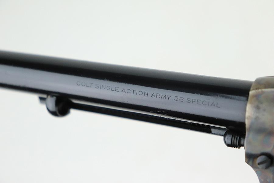 6/13/22 – This is a like-new 2nd Generation Colt Single Action Army Revolver manufactured in the 1956. 7.5″ barrel, chambered in .38 Special. It is all matching and has virtually no signs of wear – just a very light roll mark on the cylinder. Beautiful case-hardening on the frame. Comes with excellent black hard rubber Colt grips. Mint bore. The cylinder is tight and the action is smooth.