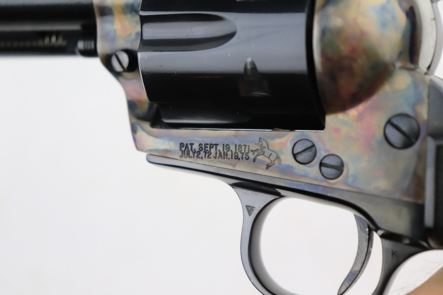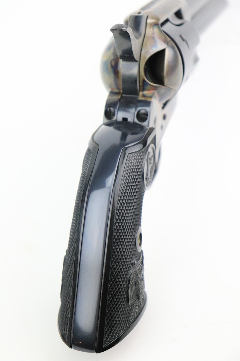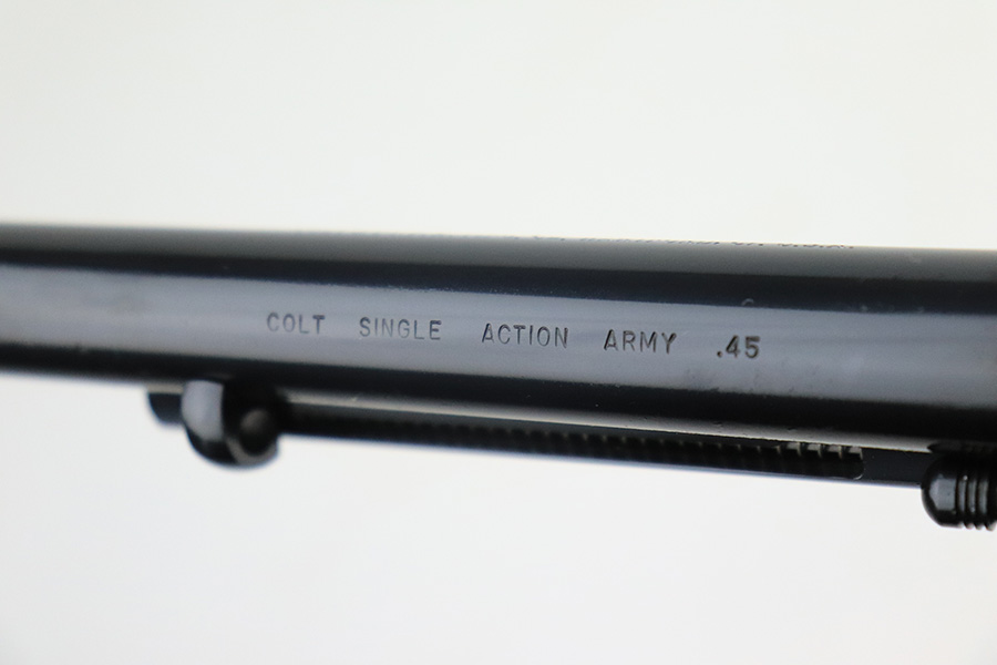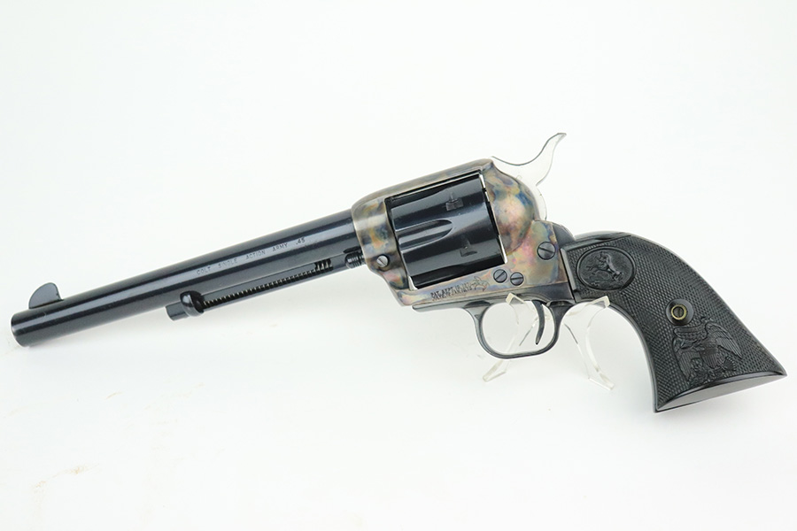 7/5/22 – This is a like-new 3rd Generation Colt Single Action Army Revolver manufactured in the 1970’s. 7.5″ barrel, chambered in .45 Caliber. It is all matching and has virtually no signs of wear – just a hint of wear around the muzzle and barely even a roll mark on the cylinder. Beautiful case-hardening on the frame. Some very light oxidation on the right side of the hammer. Comes with excellent black hard rubber Colt Eagle grips. Mint bore. The cylinder is tight and the action is smooth.