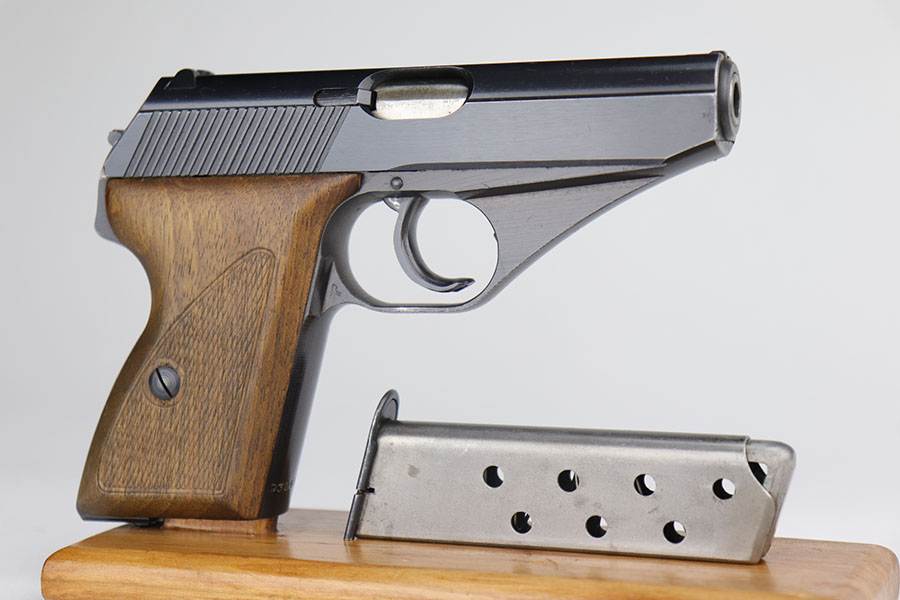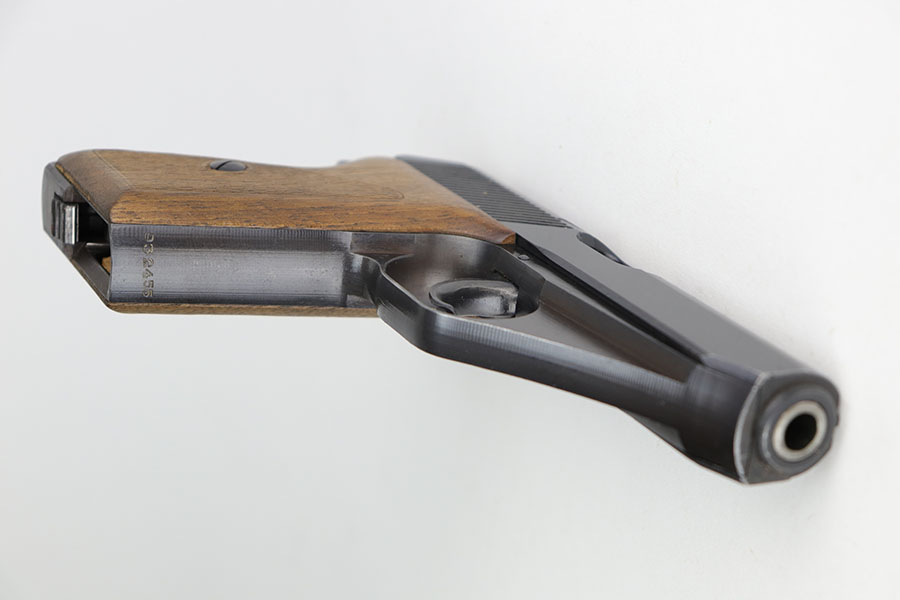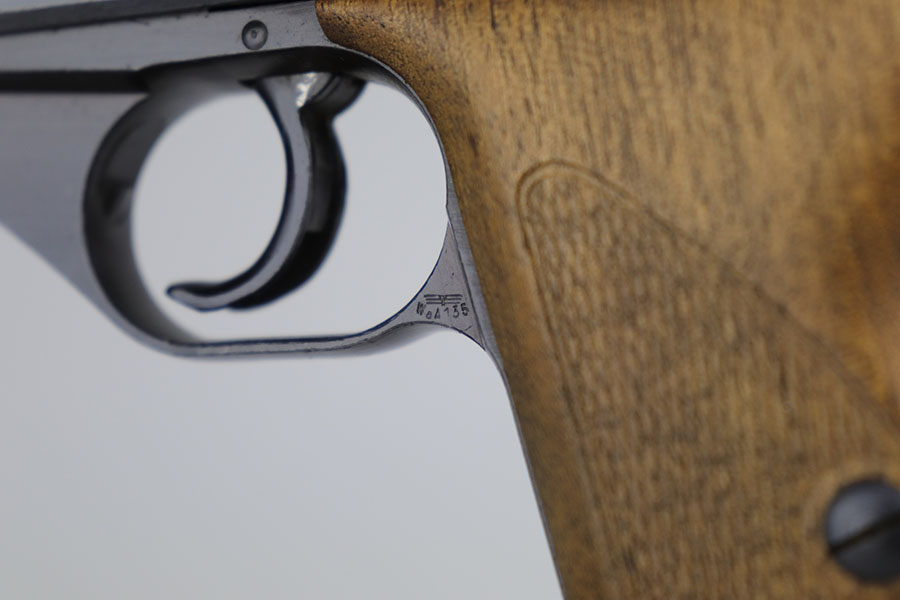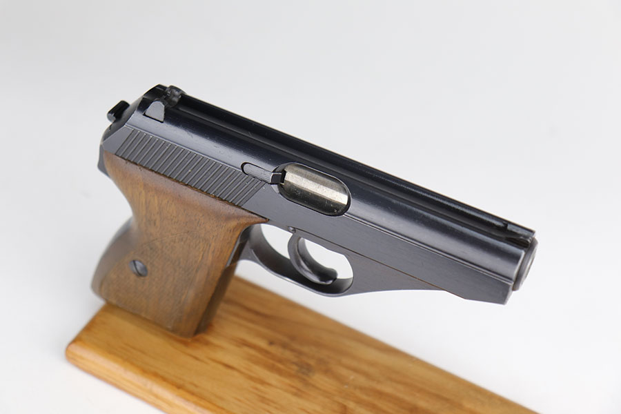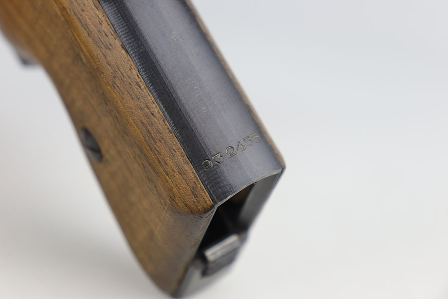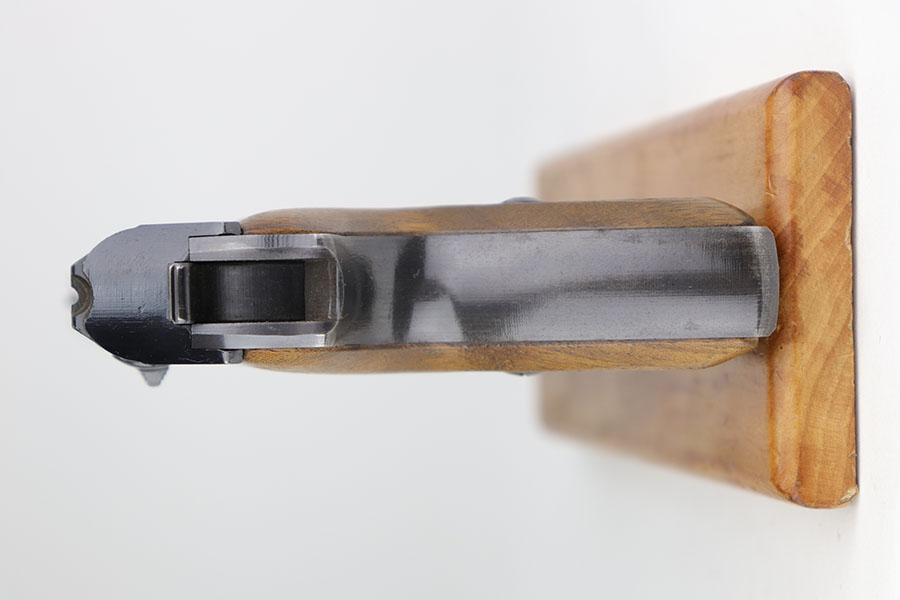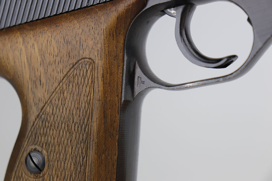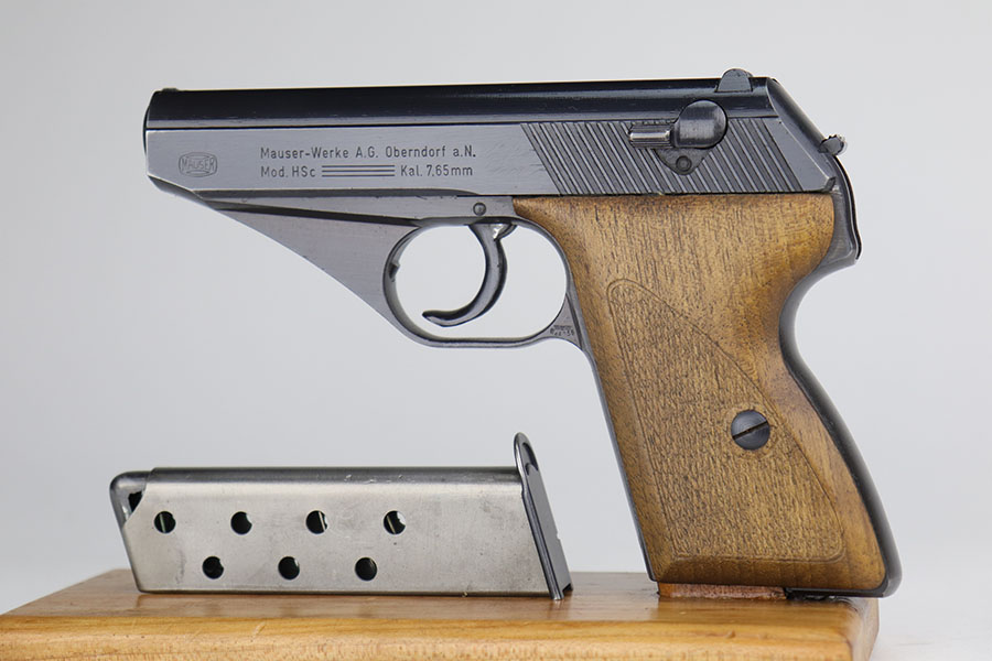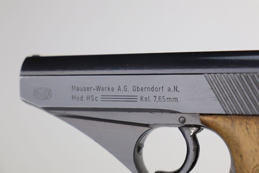 12/16/20 – This is a mint Nazi Mauser HSc from late in World War II. It has 99+% of the original, military blue remaining. Tiny hints of muzzle wear, and a single area of minor thinning on bottom of back strap. Frame is WaA135 proofed. Excellent grips with no chips. Half-moon magazine.