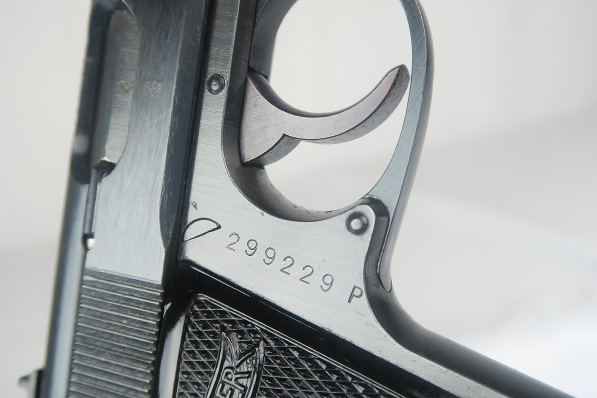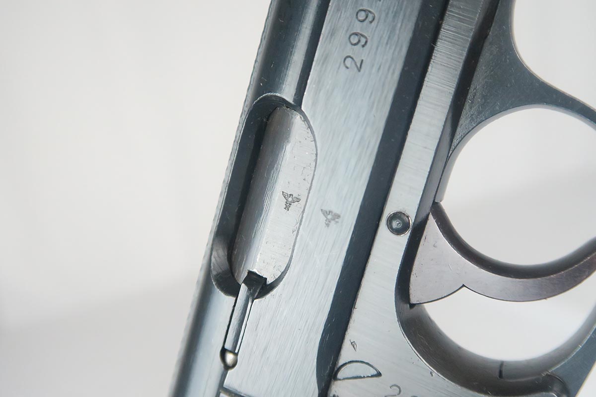 2/1/18 – This is a minty Walther PP that was issued to the Nazi army in 1944.  It has 99% of its original military finish remaining, with only minor edge wear.  WaA359 proofs are sharp on the slide and frame.  Minty bore, grips and magazine.