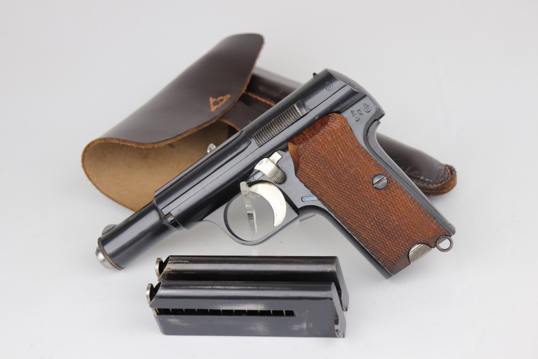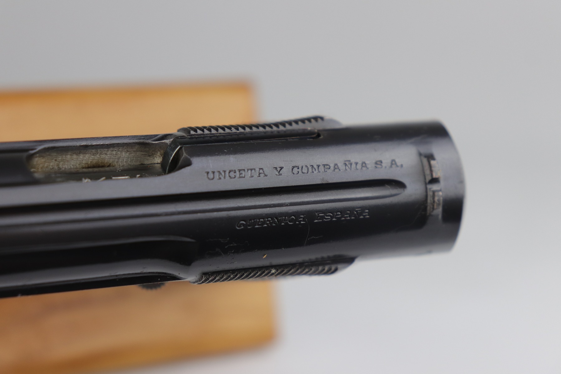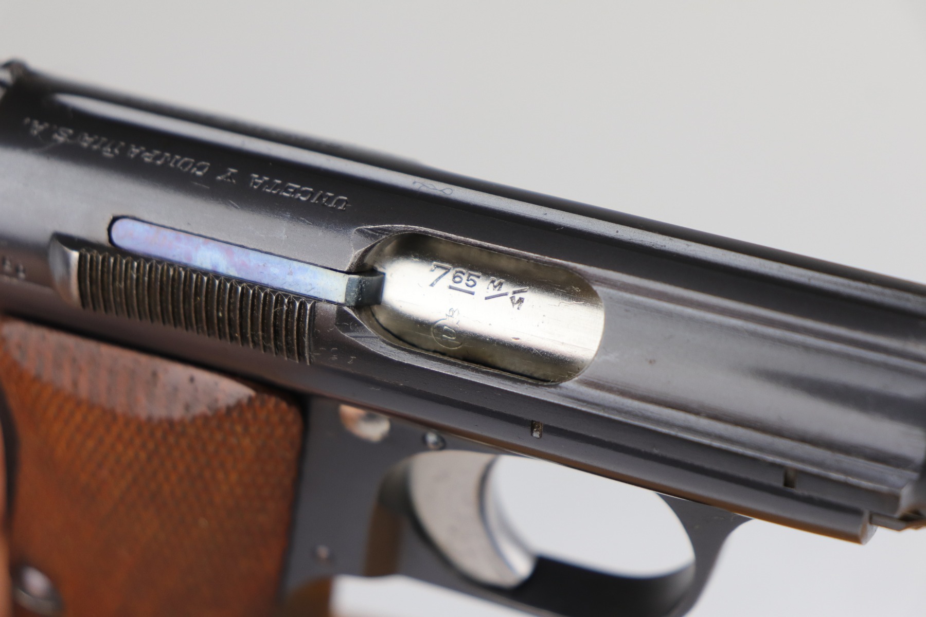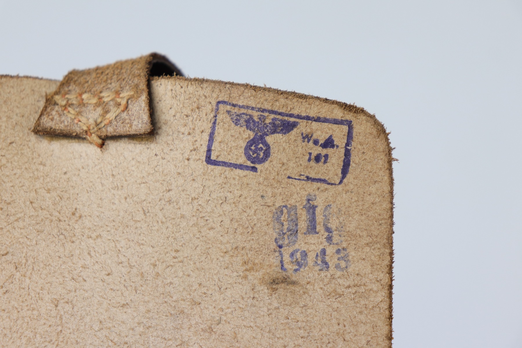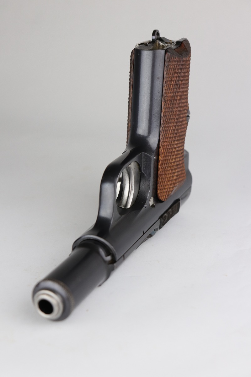 7/9/20 – This is an Astra 30 rig in superb condition. This particular example was delivered on February 24 of 1944 as a part of the 2nd Nazi military contract, chambered in 7.65mm. This variation is not waffen proofed. The gun is in mint condition – no signs of finish loss. The grips are mint. The rig comes with two excellent period-correct magazines and a holster. The holster is in minty condition and has waffen proof and 1943 ink stamps. The bore is excellent.