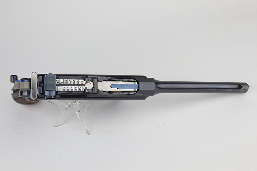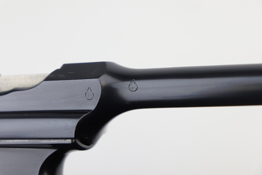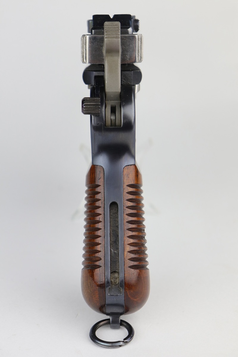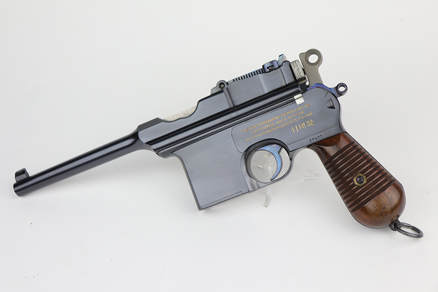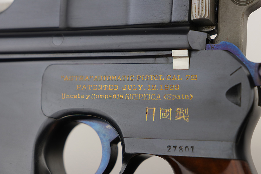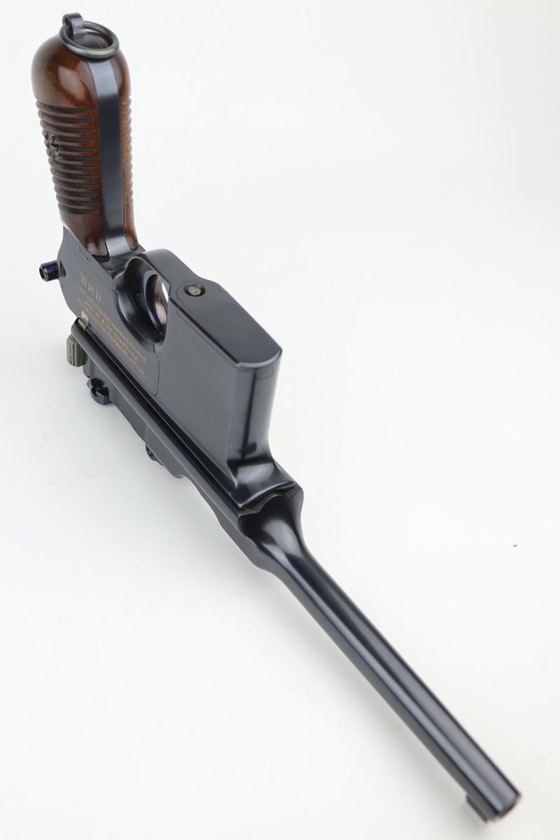 9/28/21 – This is the finest example you’ll see of a scarce Astra 900 that was exported to China as part of a small contract order. They were ordered for the Chinese warlord market but this one appears to have gone unissued and unused. The bluing is immaculate, as is the bore. Matching numbers throughout, including the grips. Date code on frame indicates this was made in 1933. Comes with two double clip pouches that includes 10 stripper clips. The pouches also have Chinese markings.