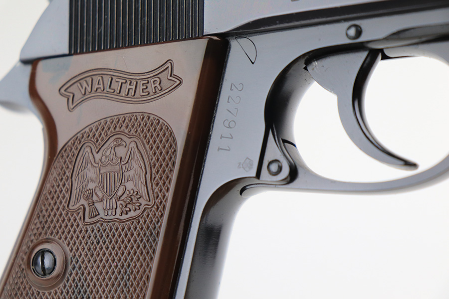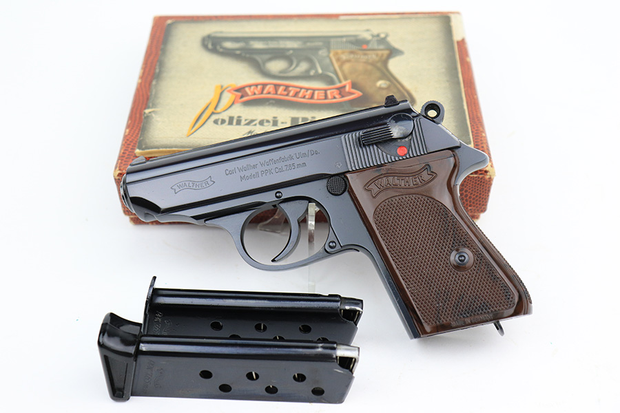 5/20/22 – This is a beautiful example of a Walther PPK manufactured in 1968 and chambered in 7.65mm. The gun is all matching and has the proper West German proofs. It comes with a period-correct non-matching box, owners manual, a finger extension magazine, and a flat-bottom magazine. The gun is in like-new condition with no obvious signs of wear. Comes with brown Interarms grips. Stone-mint bore.