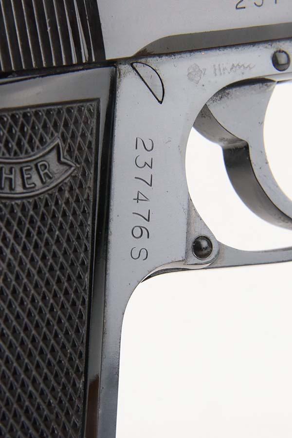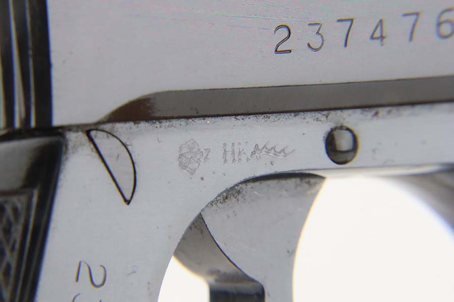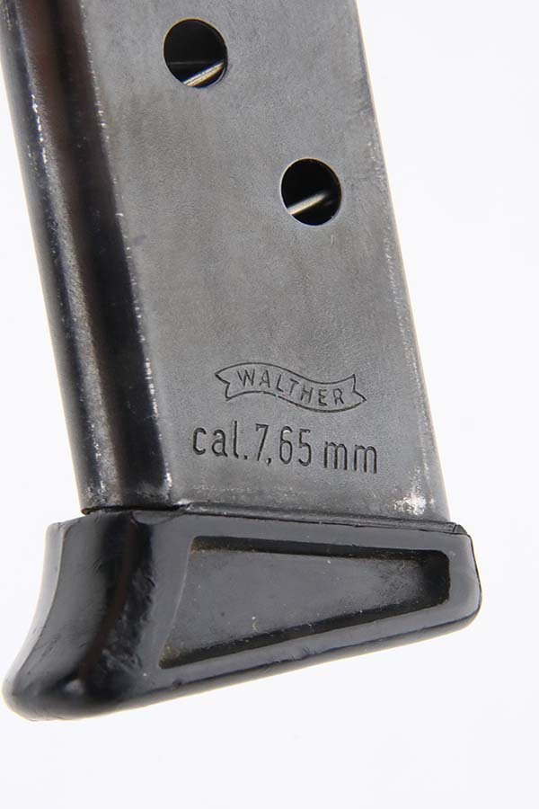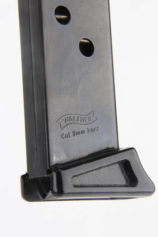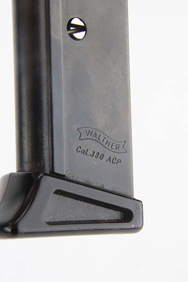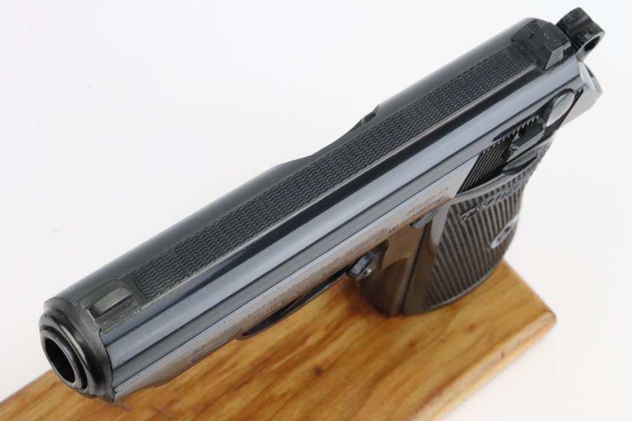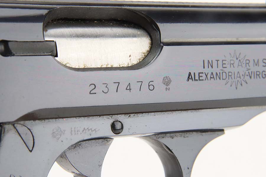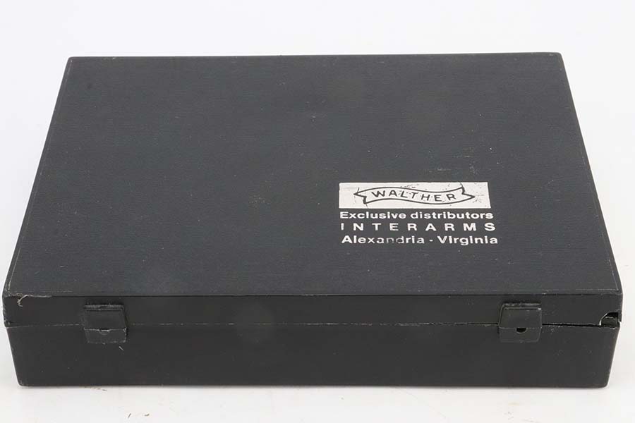 3/7/24 – This is a like-new example of a Walther PPK/S, manufactured in 1979 and chambered in 9mm kurz or .380 ACP. All matching with an Interarms marking on the right side of the slide. It comes with a proper box (not numbered), a finger extension magazine, and a flat-bottom magazine. The gun is mint with no signs of wear or use. Fitted with excellent black plastic grips. Mint bore.