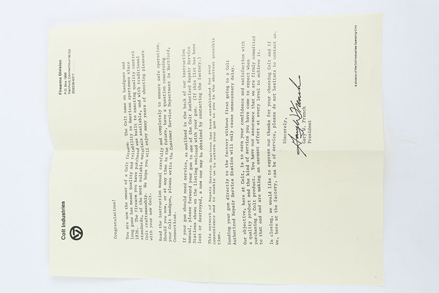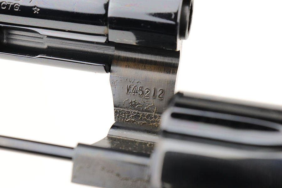 1/8/21 – This is a mint Colt Python in its original, matching numbered box. Made in 1979, it has a four inch barrel and looks virtually unfired. This one doesn’t even have a roll mark. Minty grips and bore. Comes with the box, Styrofoam insert and original manual. FFL required.