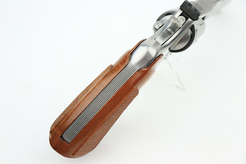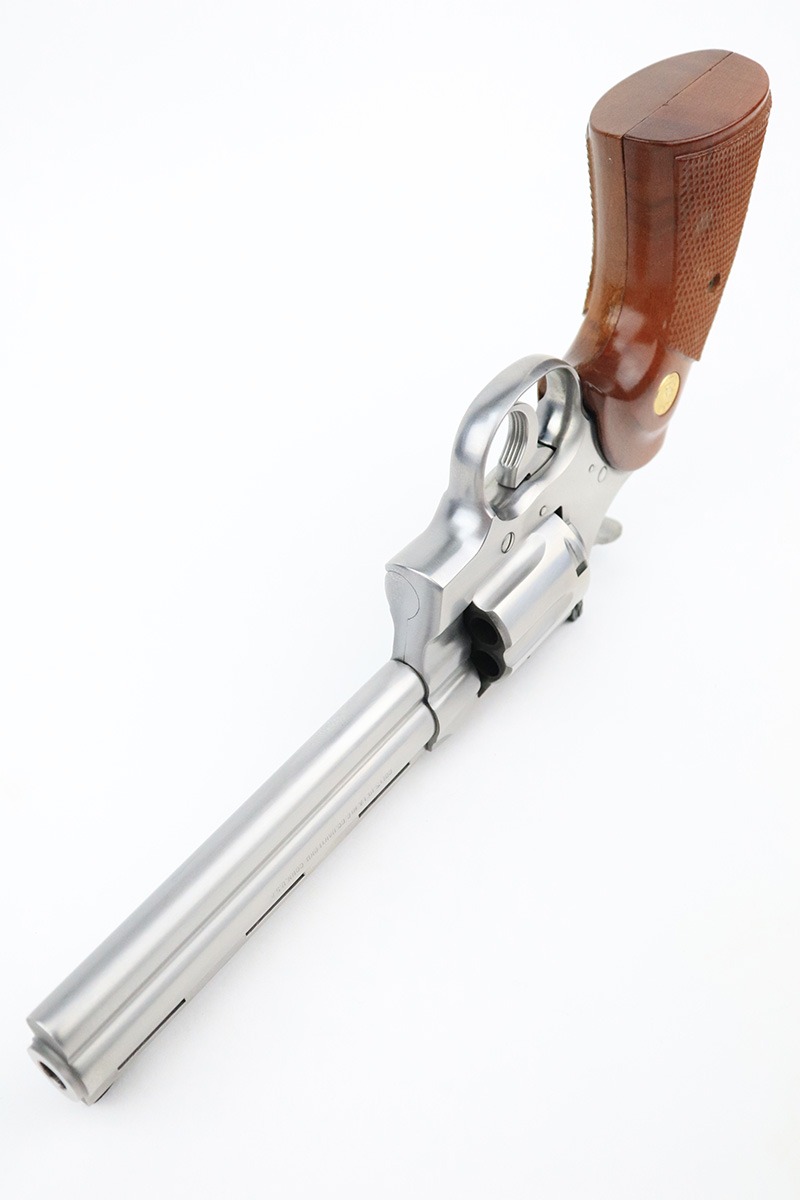 9/21/22 – This is a mint example of a Colt Python Revolver, manufactured in 1982 and chambered in .357 Magnum. This one has a 6″ barrel and has the more desirable stainless finish. The gun comes with a Colt factory hard case (not numbered) and an owners manual. The gun is in mint condition, showing very little sign of wear or use except for a very light roll mark on the cylinder. Comes with beautiful hand-checkered wood grips. The bore is like-new. The cylinder is tight, and the action is incredibly smooth.