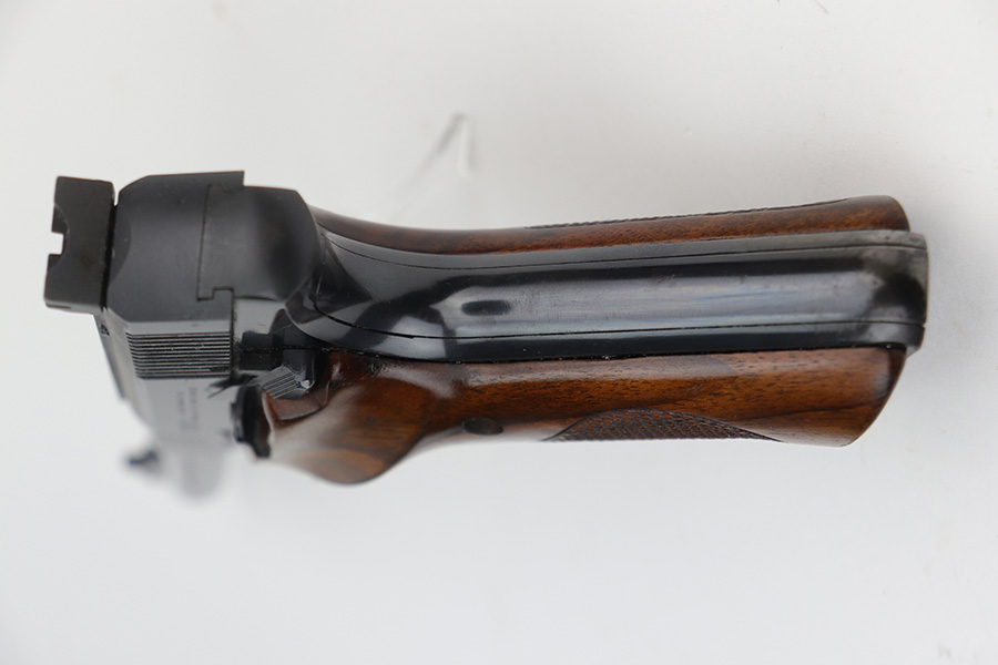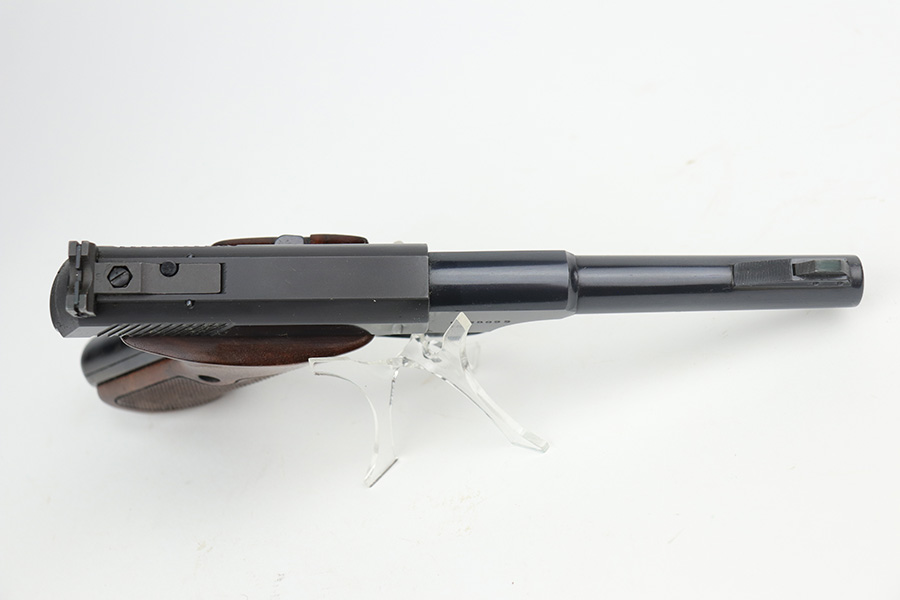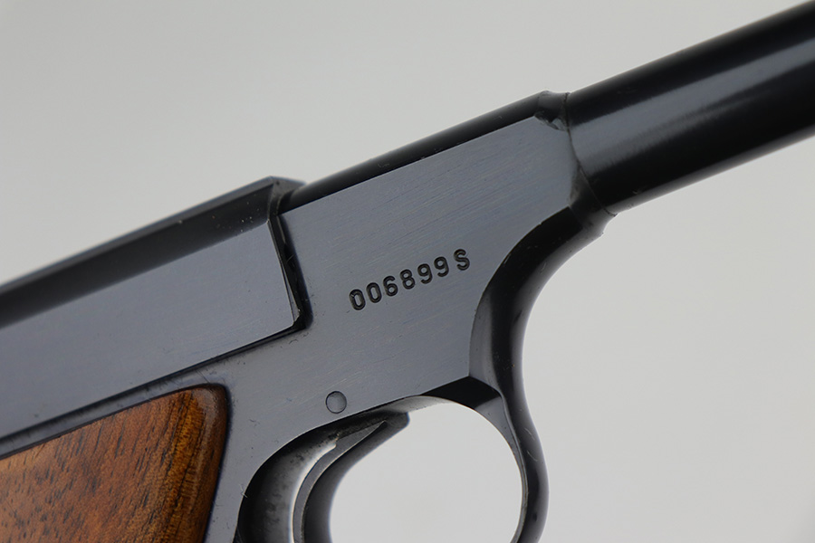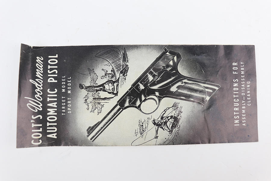10/28/21 – This is a mint Colt Woodsman Sport from 1969 in an original box. The box appears to match the gun on the last serial or two, but it’s too faint to make out for certain. It’s a 4.5in barrel, third series example. It’s in mint condition, no signs of use or wear. Mint bore and grips. Comes with original manual.