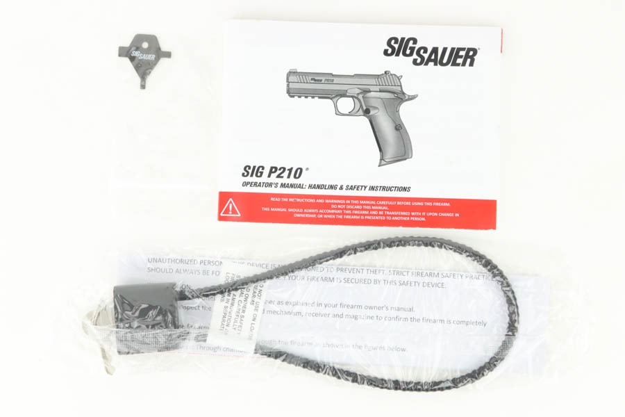 11/15/24 – This is a mint example of the desirable SIG Sauer P210 Target in the original box. The pistol has no finish loss with a mint bore and grips. Pistol has factory wooden target style grips that are in excellent condition with no cracks or chips. Listing includes the Sig Sauer case, original factory manuals, and 2 additional magazines, making 3 magazines total. FFL required.