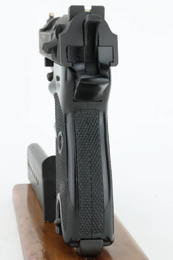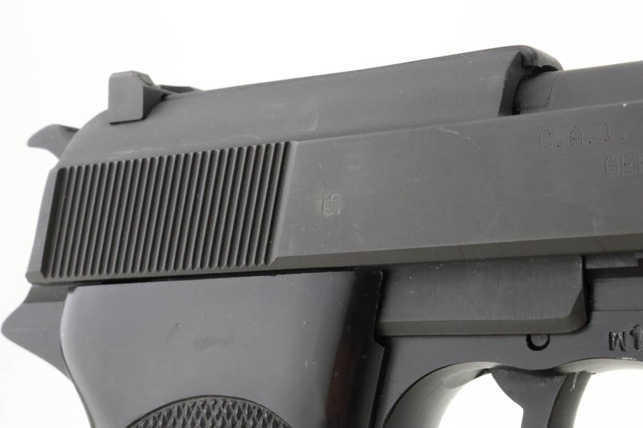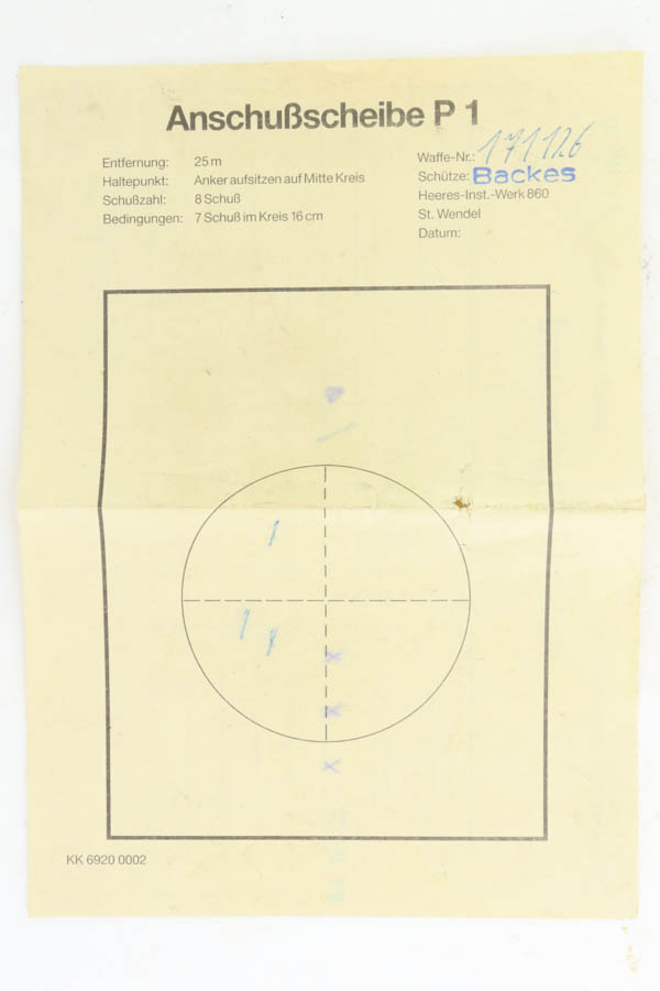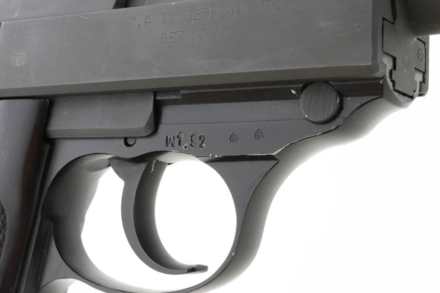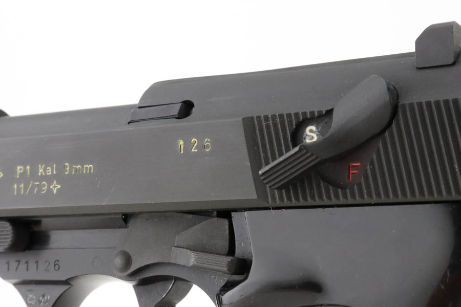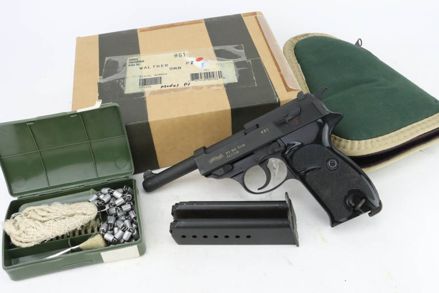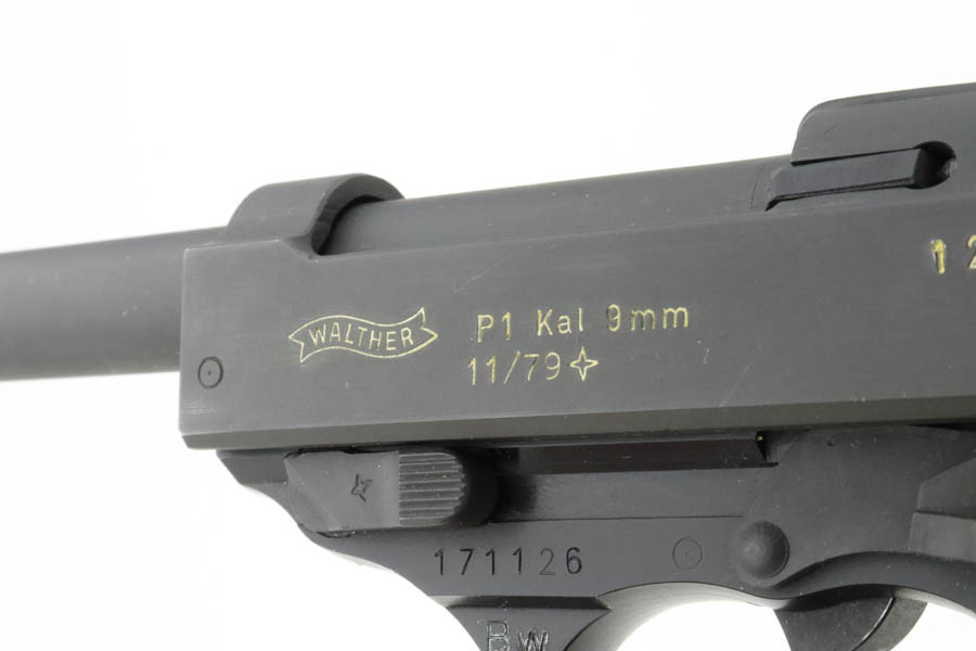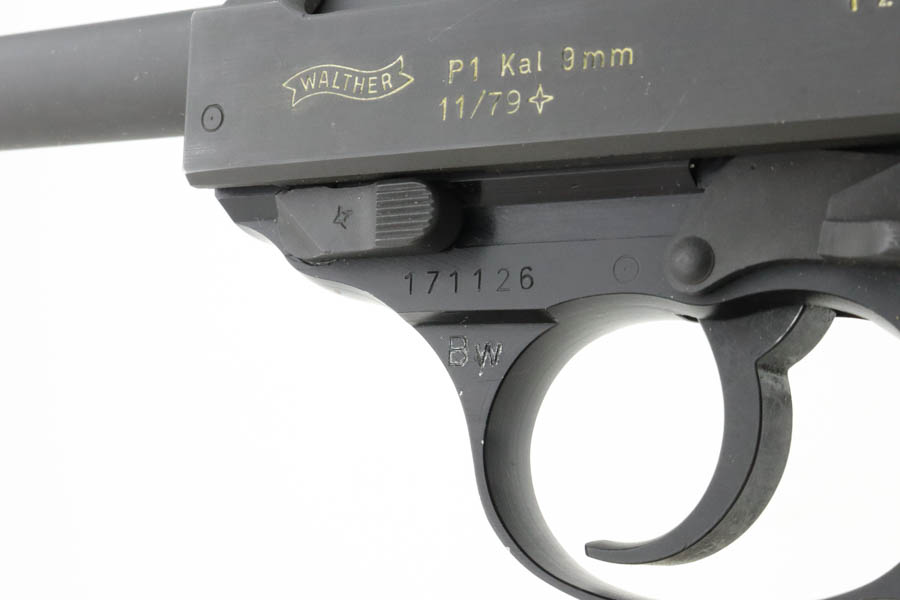 7/19/24 – This is a mint example of a Walther P1 manufactured in November of 1979. It is all matching and has the proper West German proofs throughout. There is also a “BW” marking on the left side of the frame, indicating this was issued to the Bundeswehr or West German military. Import mark on the right side of the slide. It has virtually all of its finish with just some very light surface scuffs here and there. Excellent black plastic grips. Comes with its matching-numbered shipping box, matching-numbered test target, two magazines, soft case, and cleaning kit. Minty bore. De-cocker is functional.
