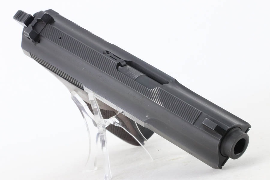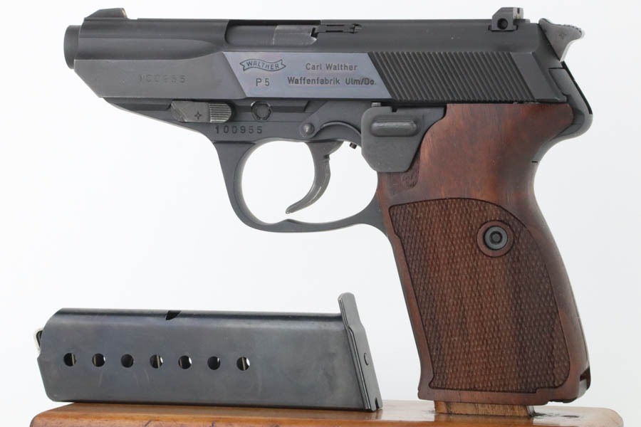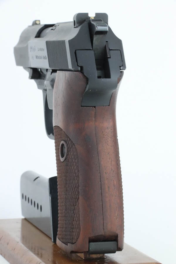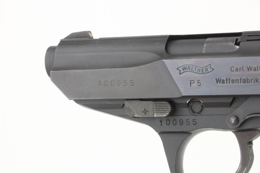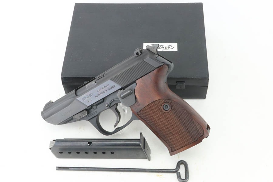 11/1/24 – This is a mint example of a Walther P5 manufactured in 1992. All matching with the proper proofs, but there is an import mark on the right side of the slide. The gun comes in a period-correct box (no label), owners manual, one magazine, and a cleaning rod. The gun itself is mint with no signs of wear. Excellent wood grips. Mint bore.