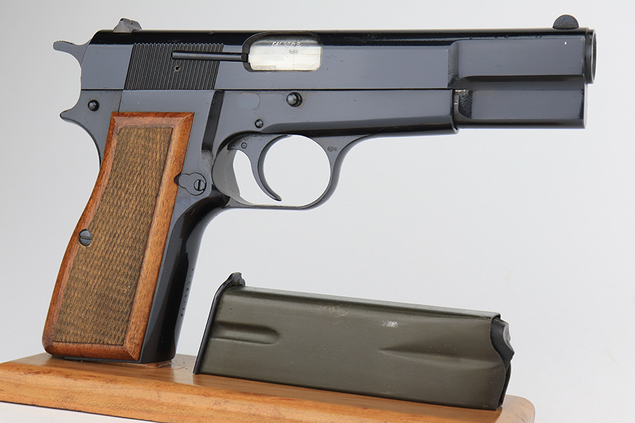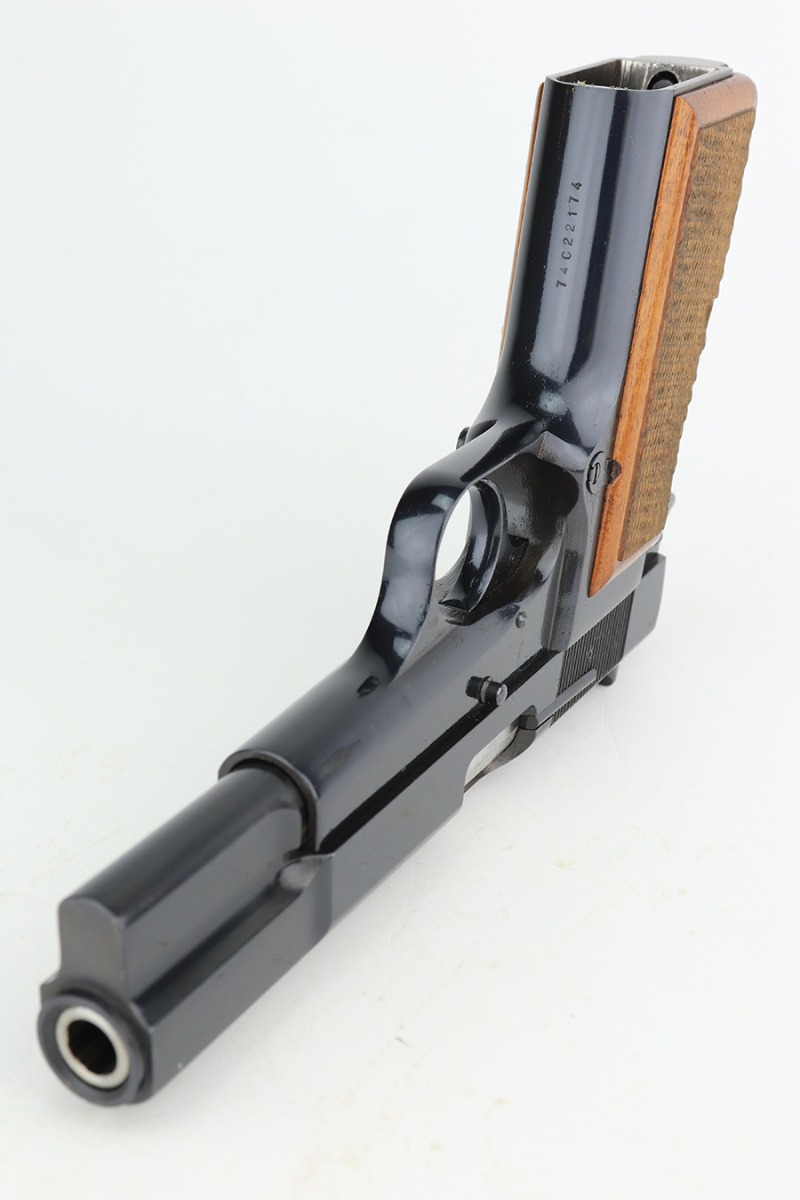2/1/23 – This is a minty Browning Hi Power C-Series from 1974. Comes with the original Browning pouch. The pistol has a minty bore, grips and hardly any finish loss. Just a minor scuff on the slide from takedown. FFL required.