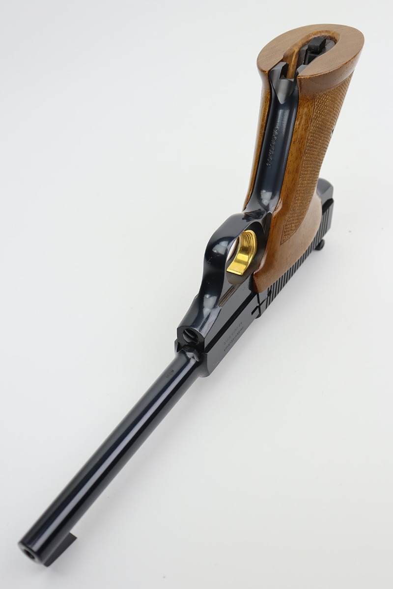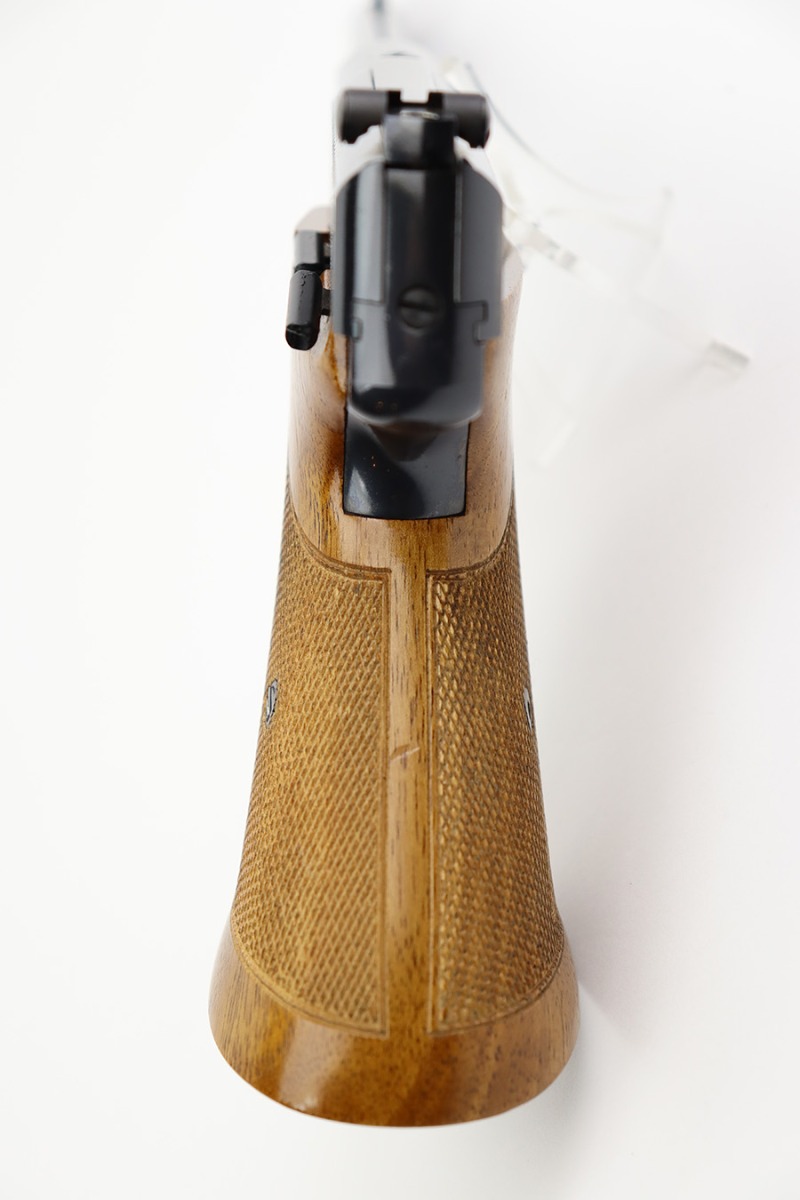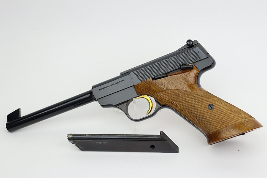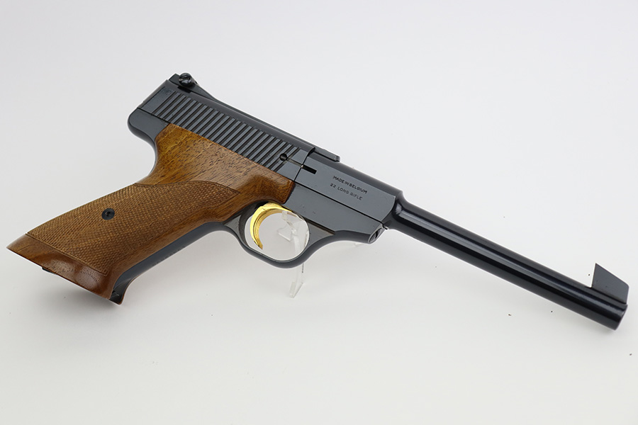 6/26/23 – This is a mint Browning Challenger from 1968. No wear to mention and can’t really be upgraded. Excellent one-piece wood grip with no damage. 6.5in barrel with mint bore. Comes with the original Browning leather case. C&R eligible.