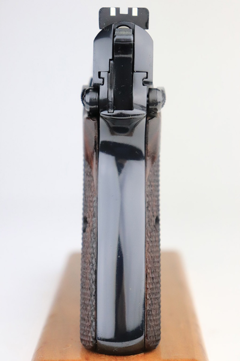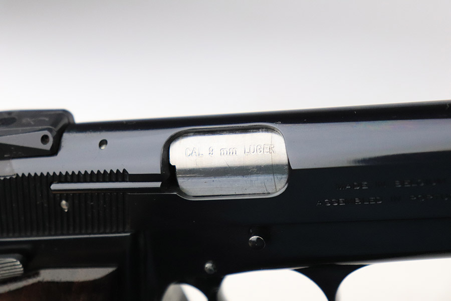 11/1/22 – This is a mint Browning Hi Power from 2015. Matching and original with virtually no wear to mention. Mint bore and minty wood grips. Excellent magazine. Adjustable rear sight. FFL required.