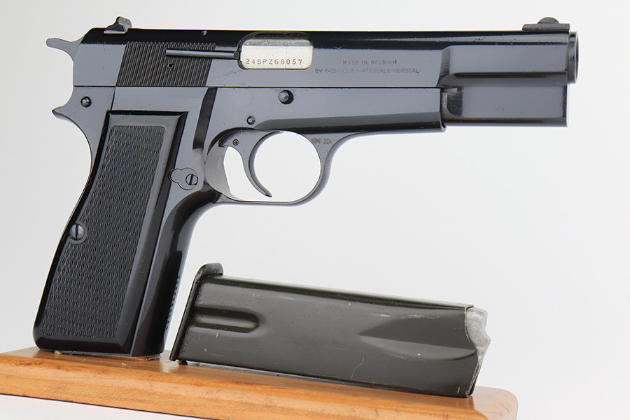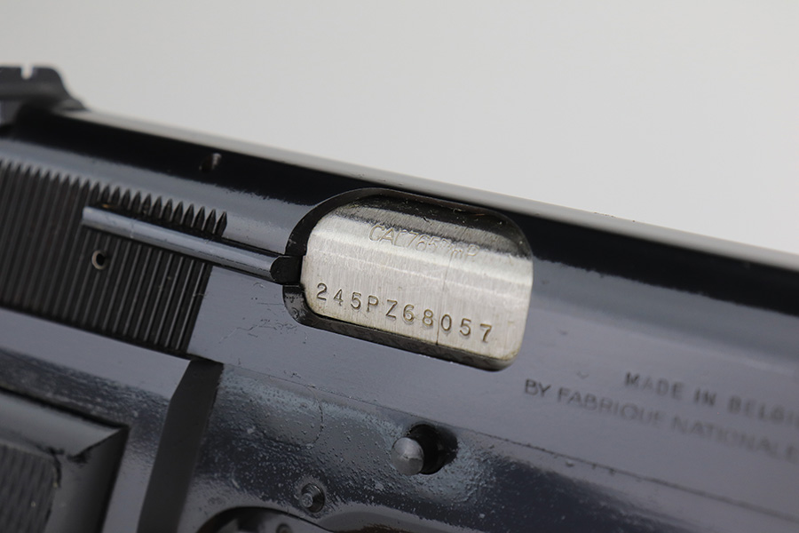 2/3/23 – This is a hard-to-find Browning Hi Power chambered in .30 Luger. It’s in mint condition and appears nearly unfired. Mint bore and terrific grips. Serial dates it to 1981. JI marked magazine.