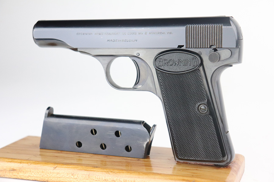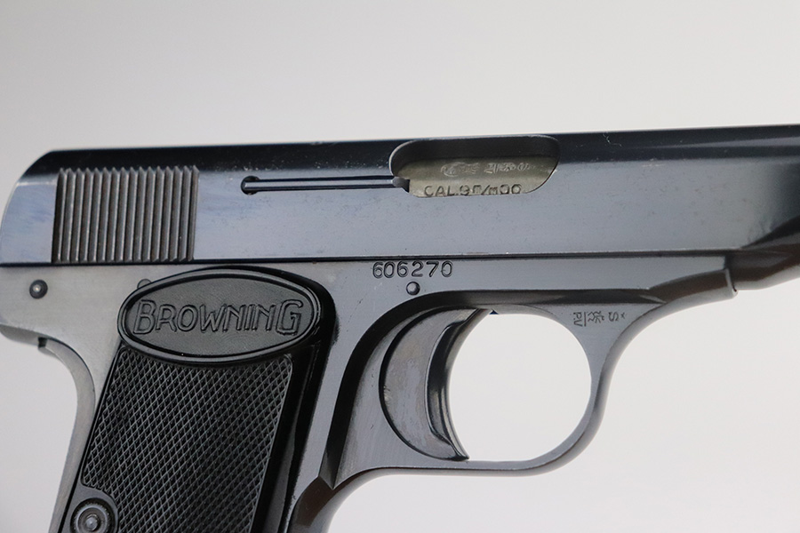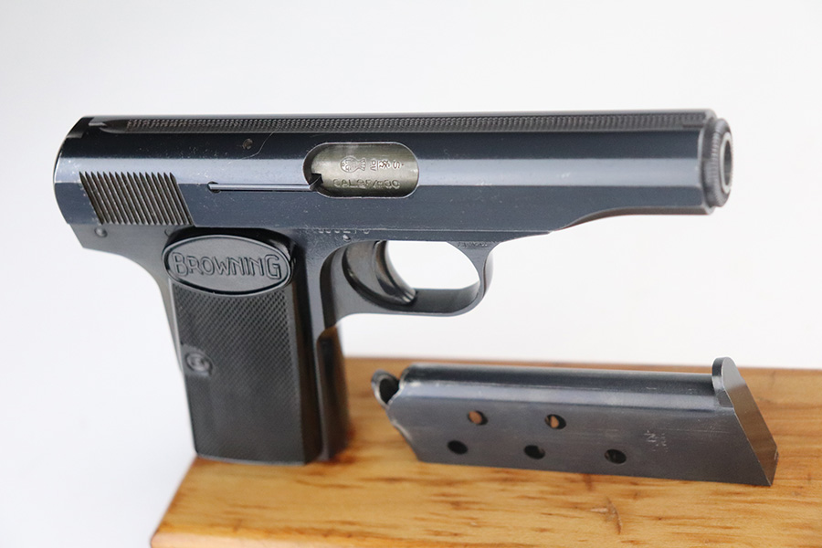 7/9/21 – This is a minty example of a Browning Model 1955, manufactured in 1968. This gun is essentially a remake of the model 1910. It is matching and has the proper Belgian proofs. Made in Belgium. Just a hint of high edge wear, and a single thin scratch along the top of the slide. Minty bore and grips. Just a fantastic example overall.