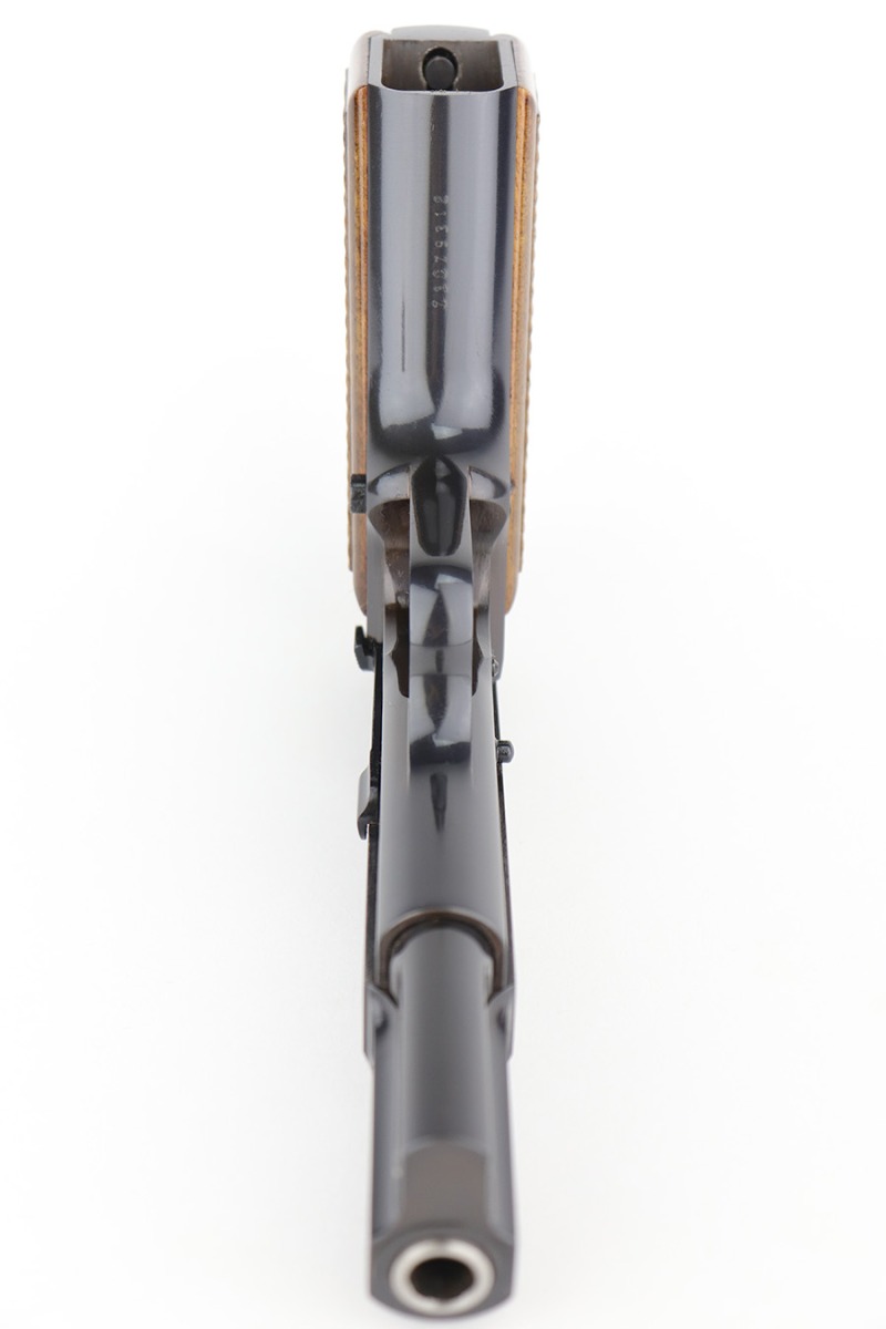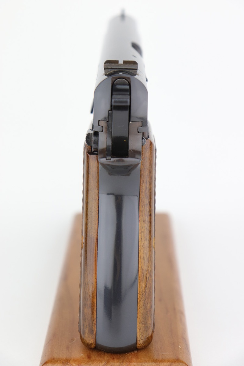 1/13/23 – This is a mint C-Series Browning Hi Power from 1973. Fixed sight variation that looks like it just left the factory. Mint bore and grips. Comes with the Browning pouch. C&R eligible.
