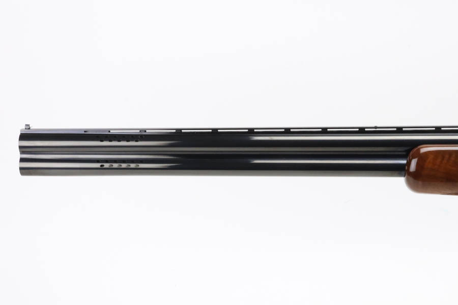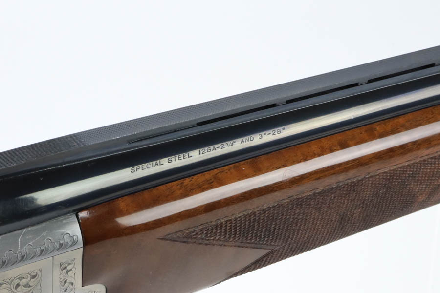 7/16/24 – This is an ANIB Browning Citori Lightning grade III 12 gauge shotgun, manufactured in 1990 and featuring 28″ ported barrels. Greyed steel receiver with gorgeous engraved scenes of Mallards and Pheasants. This example is in near-mint condition, with zero wear to note on the metal or wood, and a terrific, shiny bore. Features four invector chokes, including extra full, full, mod, and improved. The original browning recoil pad has been replaced with a Pachymar recoil pad for improved comfort. Comes with original Browning combination lock carrying case, owners manual, papers, choke wrench, and button change card required to modify the carrying case combination lock.