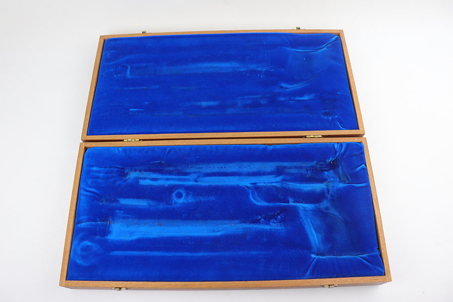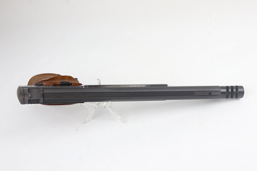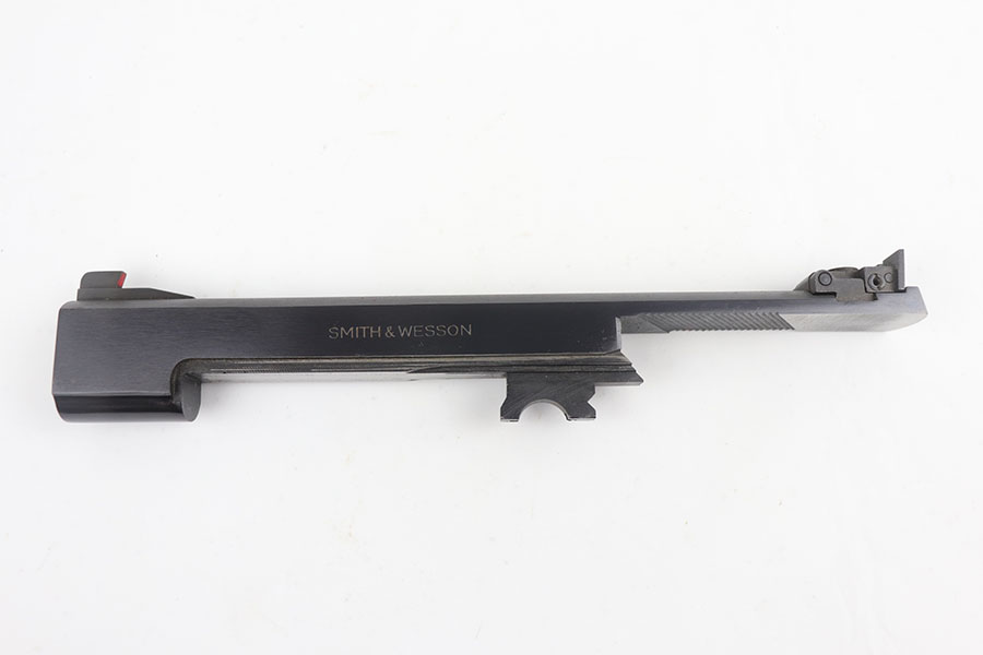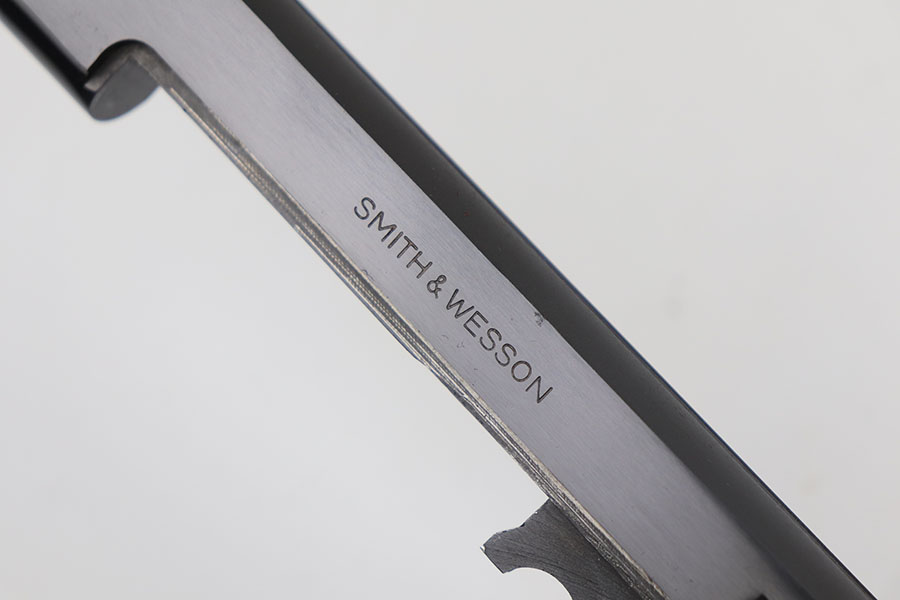 7/23/20 – This is a mint Smith & Wesson Model 41 that was made in the early 1970s and comes with Smith & Wesson display case. It includes a total of two slides, one with 7 inch barrel and the other 5.5 inches. All components are mint and original, including the bore. Beautiful target style grips with left side thumb rest. The current configuration also has a muzzle brake installed.