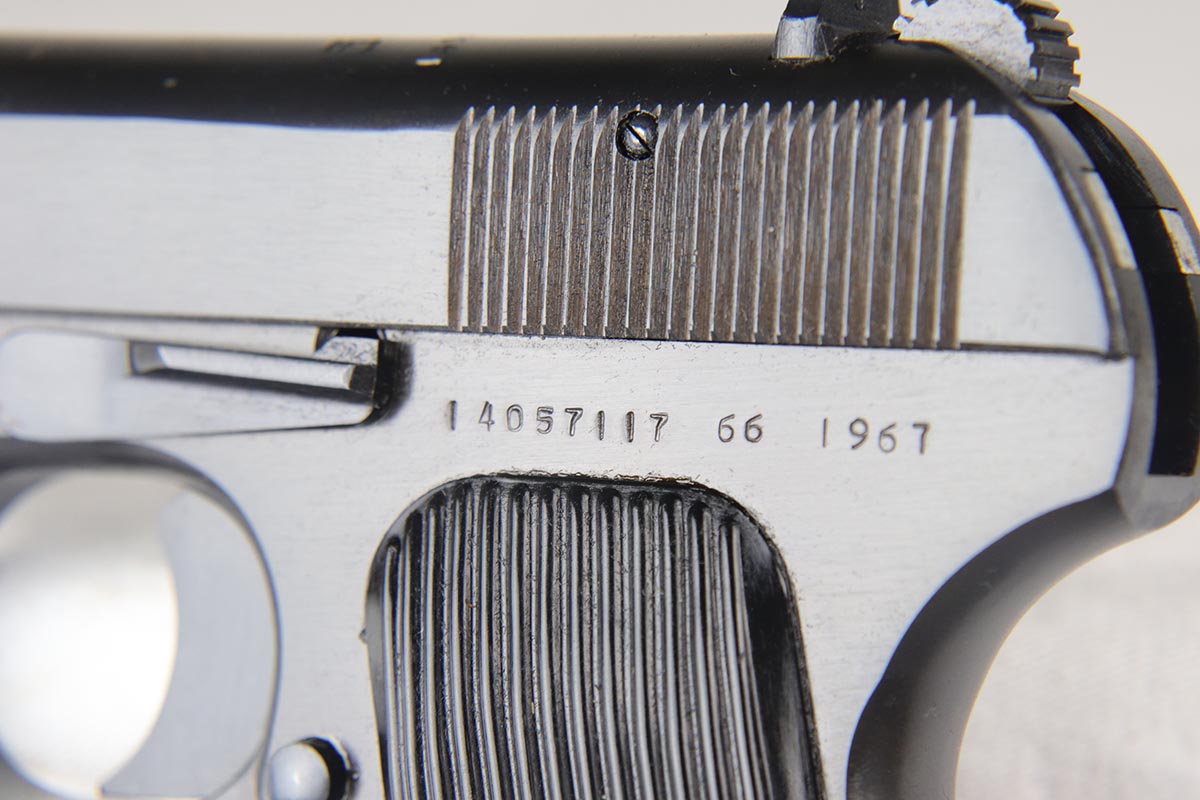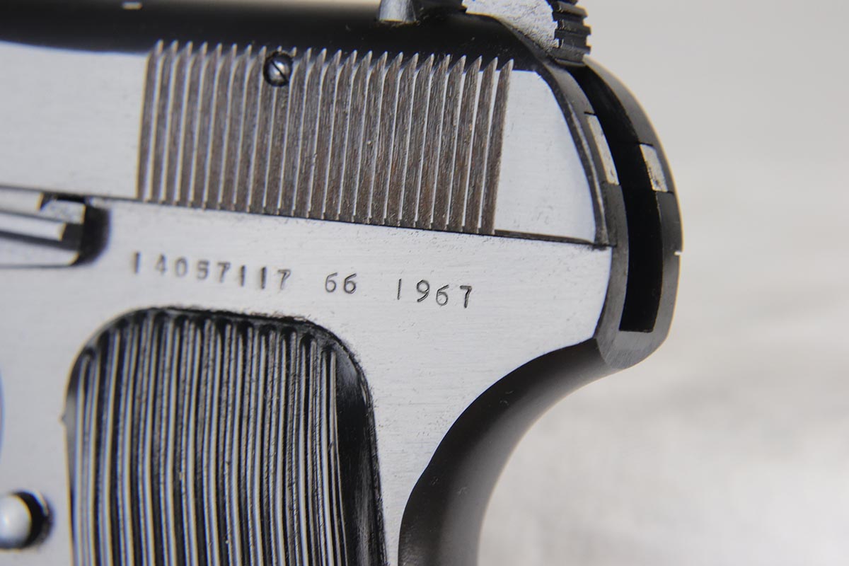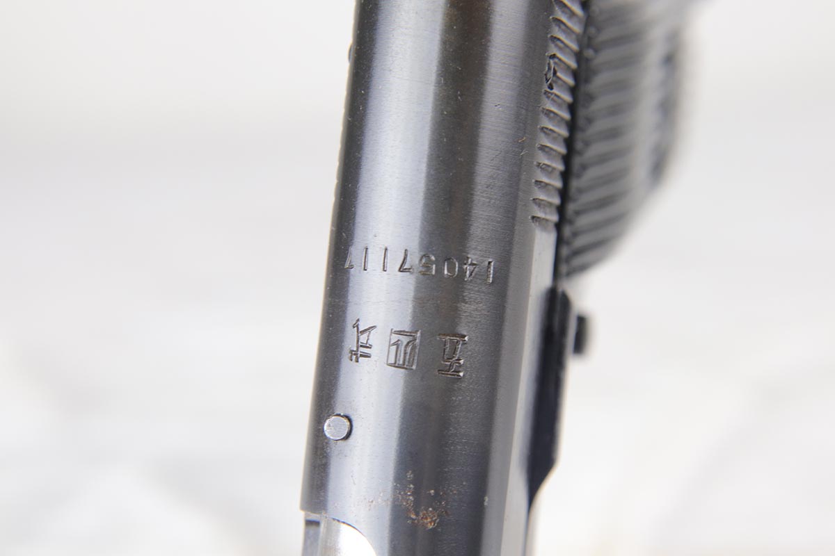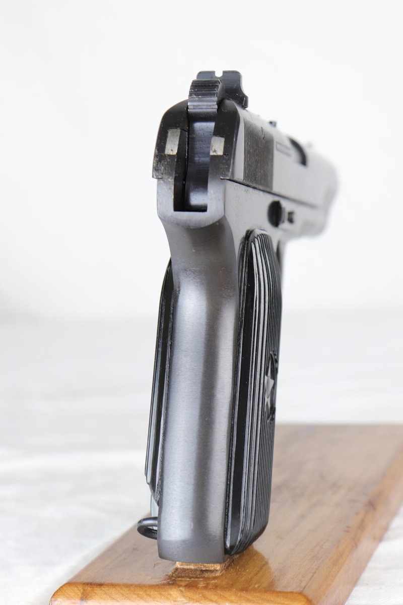 3/29/18 – This is a superb example of a Vietnam era Chinese copy of the Russian TT33 pistol. It is in 99% plus original condition with just a hint of handling wear. Unlike the majority of these guns, this one is dated 1967 and was probably brought back from Vietnam by one of the American servicemen, as it lacks any import marks. It is all matching except for two correct magazines and comes with an original Chinese made holster in excellent condition. Beautiful bore and minty grips. A great example of the Vietnam war bring-back.